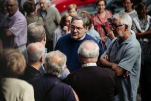 Hoy ha habido una vuelta más de tuerca y se han encontrado los feligreses con que las cerraduras han sido cambiadas y los nuevos sacerdotes han tomado posesión de la parroquia. Y junto al propio Martín Artola se han manifestado en la puerta. «Nos han ninguneado en todo momento, la parroquia la hacemos los feligreses, el trato está siendo nefasto», han comentado varios de los presentes, molestos con el traslado y más aún con lo que consideran una «degradación injusta» de Artola.