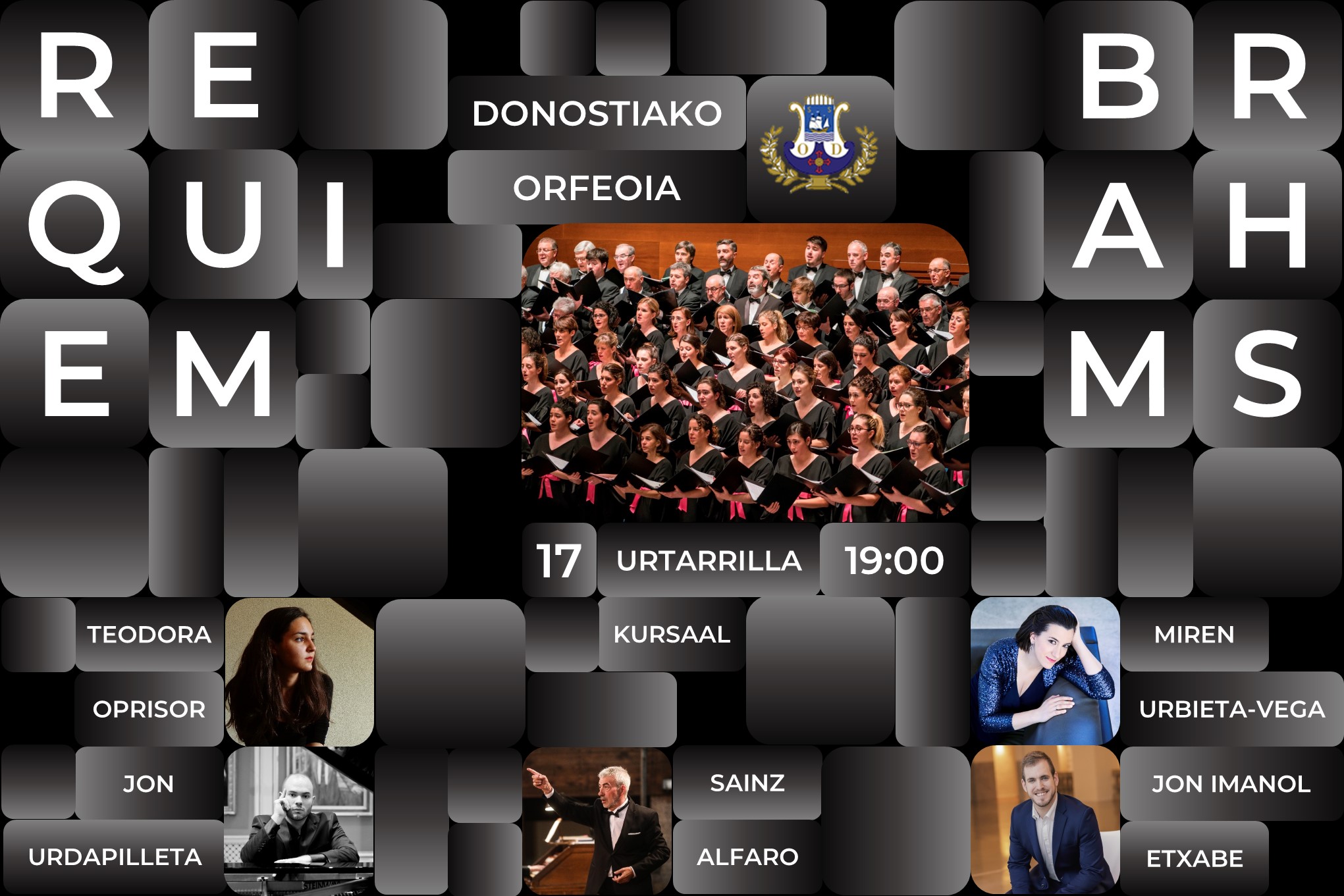 Para comenzar 2021 con fuerza, el Orfeón Donostiarra ha lanzado por primera vez un Ciclo de Conciertos Clásicos que tendrá lugar en el Kursaal de San Sebastián. Comenzará con Ein Deutches Requiem (Un réquiem alemán) de Johannes Brahms en versión de piano con dos pianistas. El concierto será este domingo a las 19 horas en el Kursaal. Participarán Miren Urbieta-Vega, soprano y Jon Imanol Etxabe, barítono, además de los pianistas Jon Urdapilleta y Teodora Oprisor con la dirección de Sainz Alfaro.