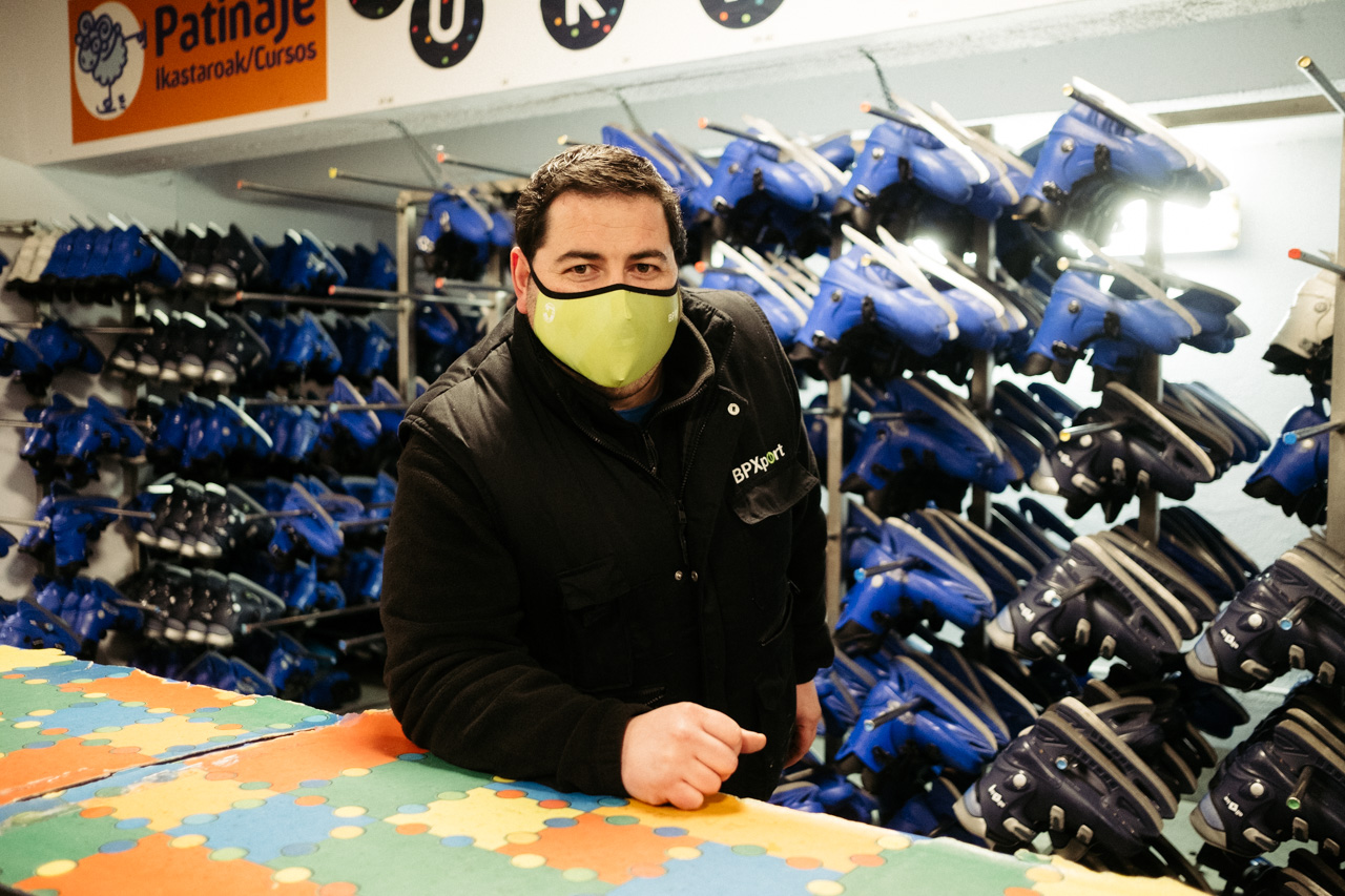 “Siempre hemos tenido un perfil bastante familiar pero como ahora mismo no hay apenas oferta de ocio está viniendo mucha gente joven”, explica Xabier Vázquez, que una vez alisada la pista sale al exterior a atender a DONOSTITIK. El director del Palacio de Hielo Txuri-Urdin, de la empresa BPXport, se enfrenta a una pandemia que apenas les deja margen de maniobra. “Nos hicimos una pregunta. ¿Cómo gestionamos esto? Al principio reducimos el aforo de 800-900 personas a 100. Luego lo hemos ampliado a 250, respetando siempre todas las medidas de seguridad. No se puede comer ni beber, hay que ir siempre con la mascarilla puesta y los niños también la tienen que llevar”, asegura.