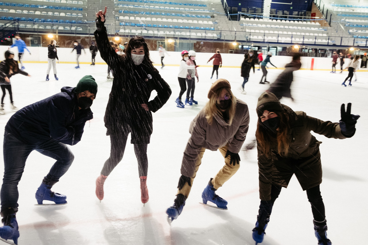 De repente la pista se vacía. La gente se queda mirando cómo un hombre subido a una vieja máquina pulidora alisa el hielo, que estaba empezando a acumular montoncitos irregulares por todas partes. Acompañado de expertos patinadores que se mueven a velocidad supersónica, la pista quedará como nueva en 5-10 minutos. Una cuadrilla de adolescentes aprovecha el descanso para revisar sus móviles. Tienen 17 años. Están mirando stories de Instagram, algunos vídeos que han hecho mientras patinaban. Se están divirtiendo.