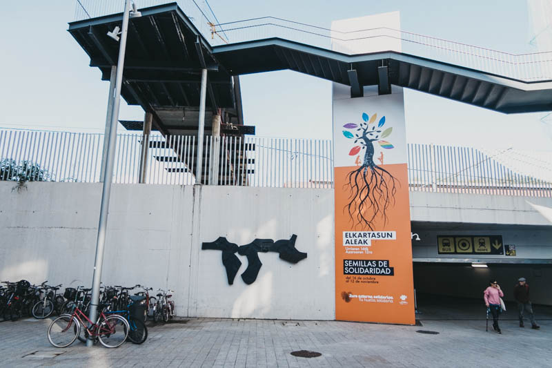 La ubicación de la exposición “Semillas de Solidaridad” en el pasadizo de Egia quiere reflejar que las asociaciones son las semillas que aportan su fruto a la sociedad. Las raíces no se ven, están bajo tierra creciendo y ampliándose, tienen que “romper” la tierra para salir al exterior, al aire, y poder desarrollarse.