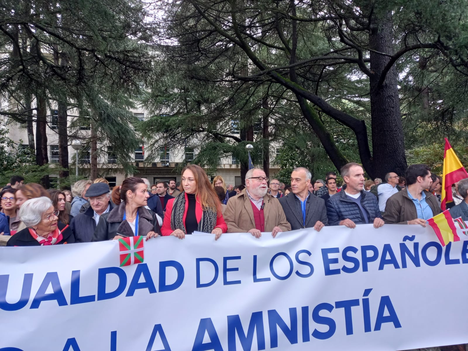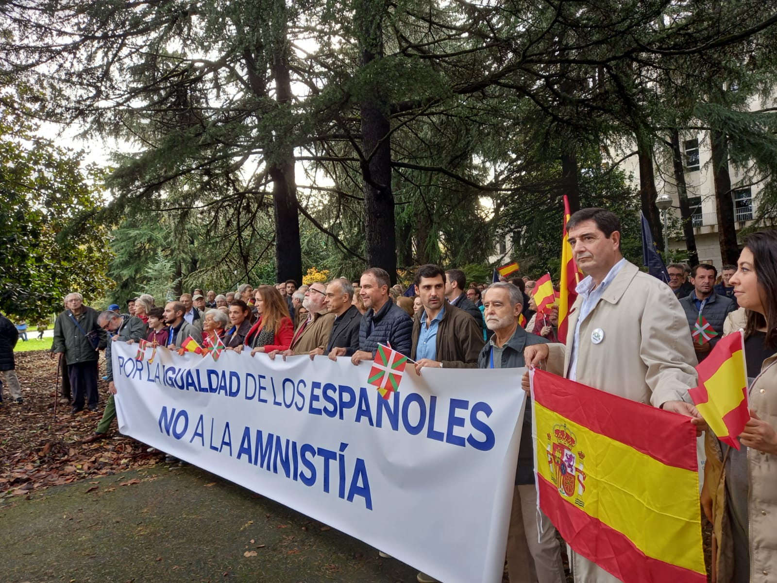 A la convocatoria del Partido Popular hoy, en Donostia, en contra de la amnistía pactada por el presidente del Gobierno en funciones Pedro Sánchez con Junts, se han sumado cerca de 300 personas, incluidos representantes de VOX en Gipuzkoa. Si bien había mucha presencia policial en Pío XII, no ha habido incidentes. Se han visto banderas españolas e ikurriñas y desde un par de coches han gritado «fachas» y han tocado la bocina mientras el filósofo Fernando Savater y la presidenta del PP gipuzkoano, Muriel Larrera, leían el manifiesto.