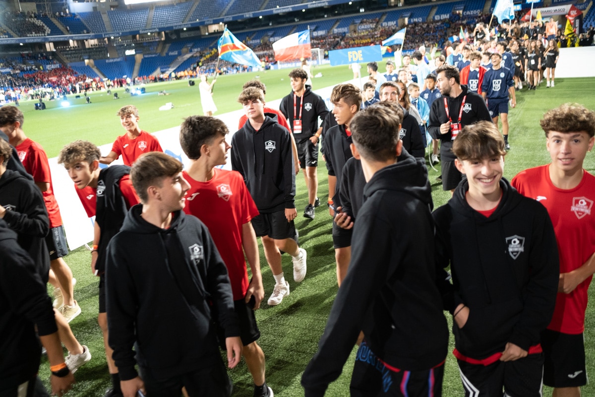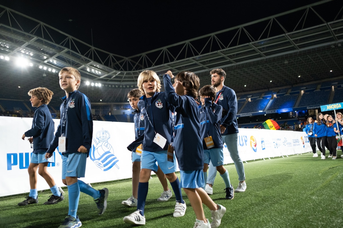 Este lunes por la noche el Reale Arena vibró con todos ellos y los clubes desfilaron felices y pertrechados con sus uniformes y símbolos en una inauguración muy especial: la Donosti Cup cumple 30 años «a tope», como decían desde un club local, dándole la espalda a la covid e inmersa en ese ambiente único que genera el deporte cuando está bien compartido.