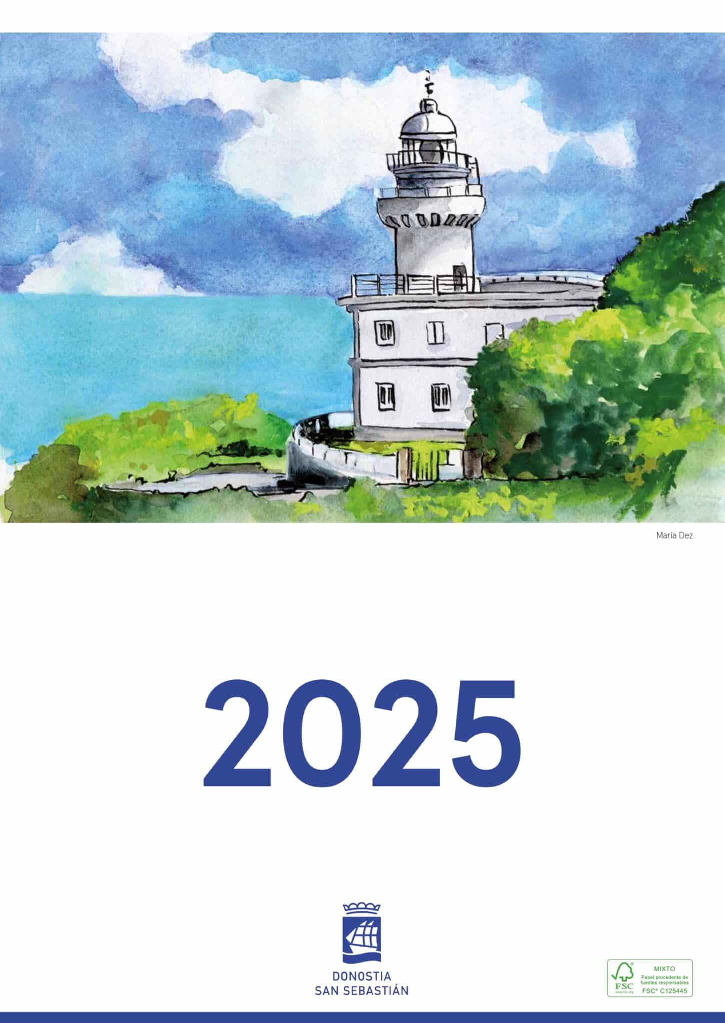Las 13 imágenes del calendario municipal de 2025 son ilustraciones de rincones de Donostia realizadas por María Dez, Nora Pilarte Galdona, Mikel Casal y Koloreka.