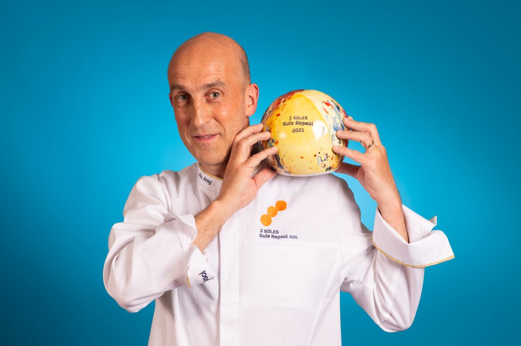 Aitor Arregi ha recibido «con ilusión y compromiso» el tercer sol para Elkano, donde ha perfeccionado la herencia de su padre, Pedro Arregi, quien en 1964 fundó una pequeña taberna que evolucionó hasta convertirse en uno de los mejores asadores de pescado gracias a aportaciones como poner sobre las brasas las piezas enteras y con piel.