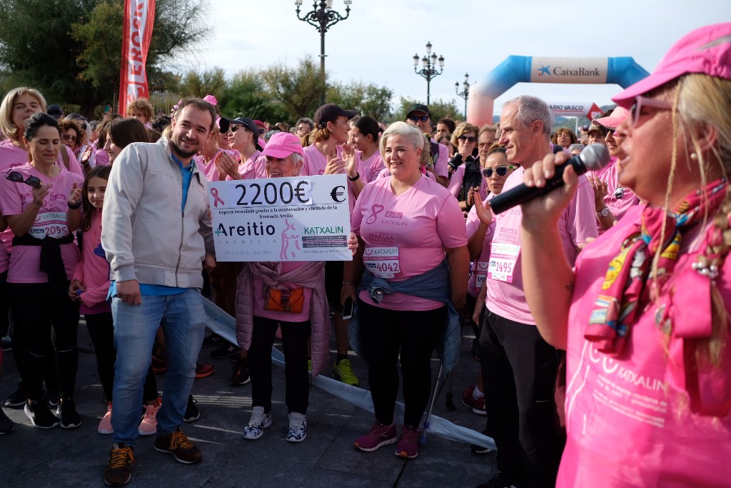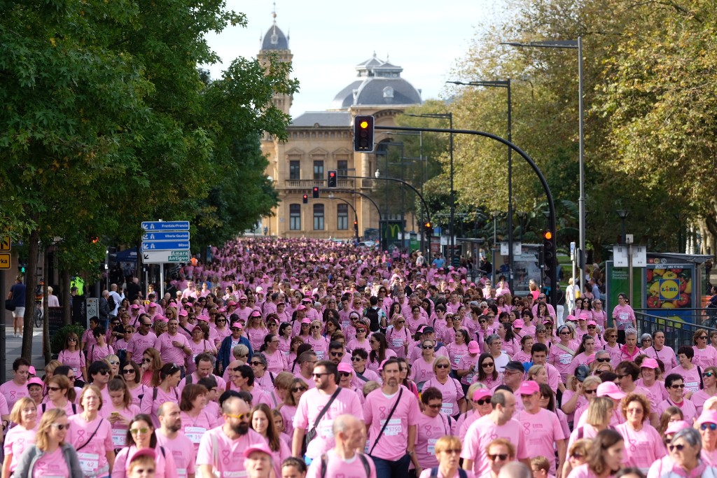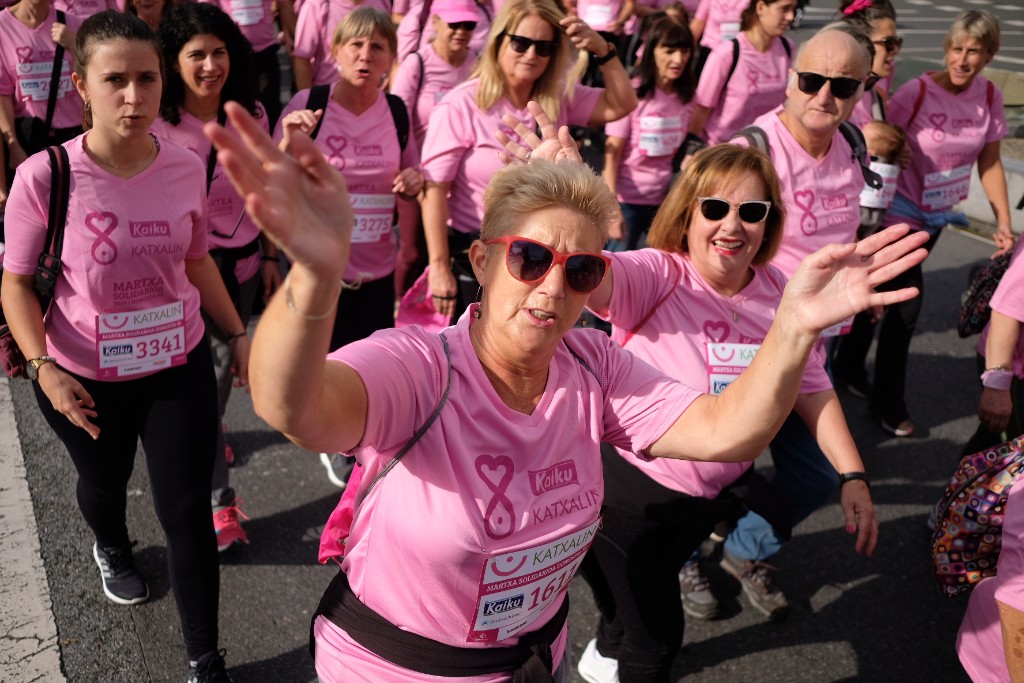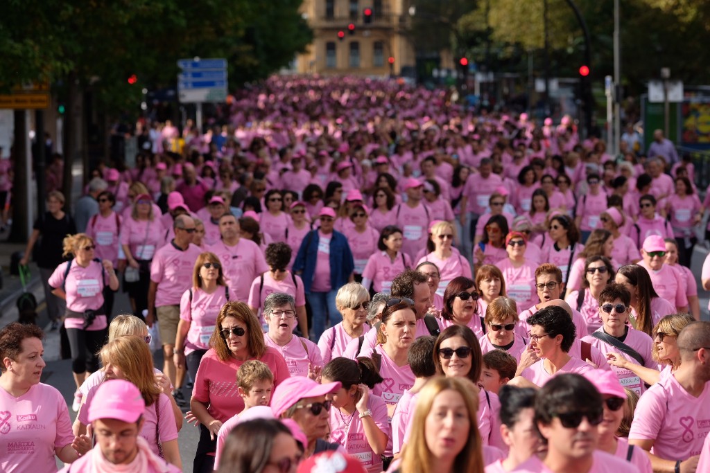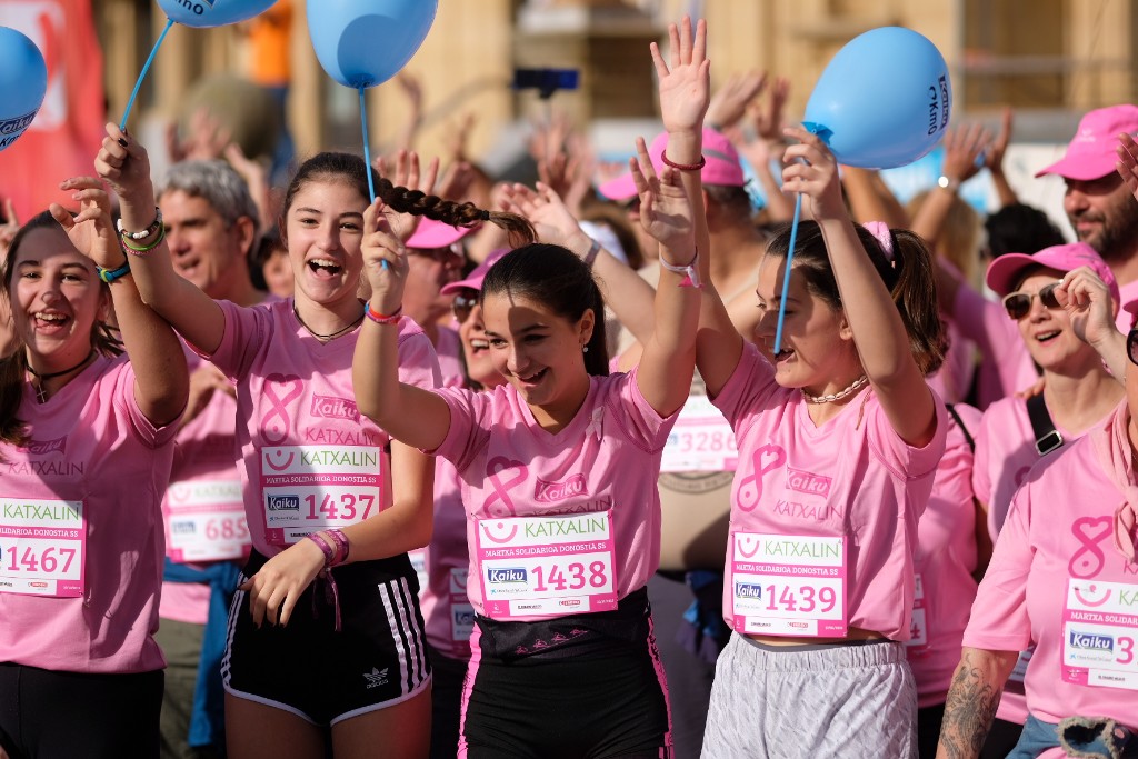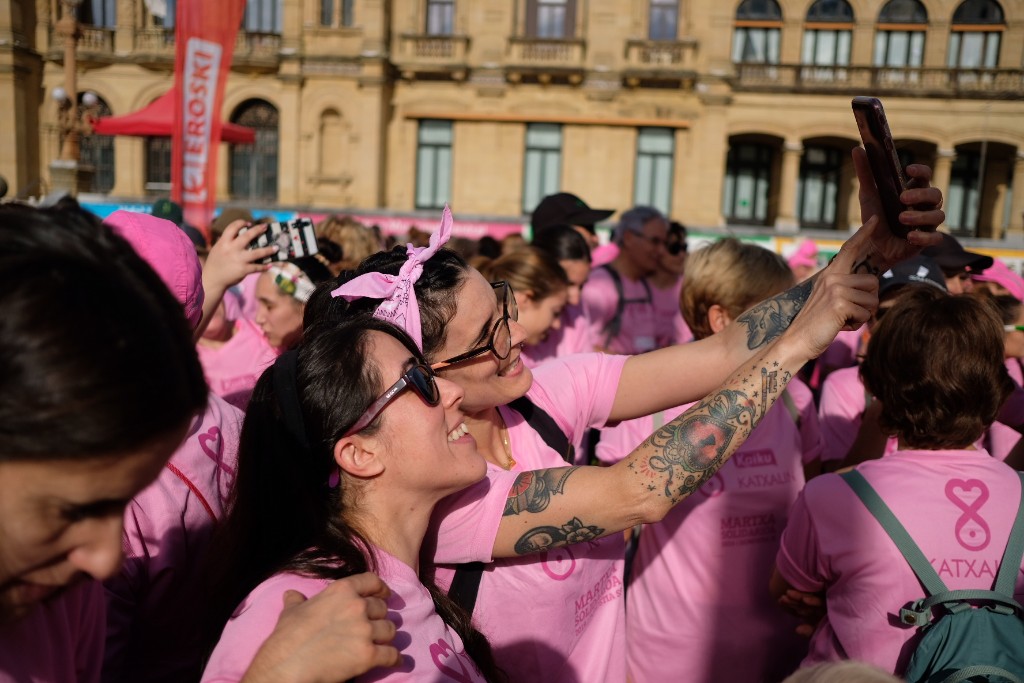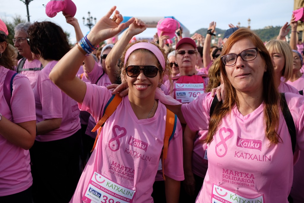 La asociación Katxalin quería una marcha masiva en Donostia y así ha sido. Han ayudado el tiempo y el ánimo de las afectadas y han sido claves sus familias y los donostiarras solidarios que colaboran por que el cáncer de mama sea cada vez más superable.