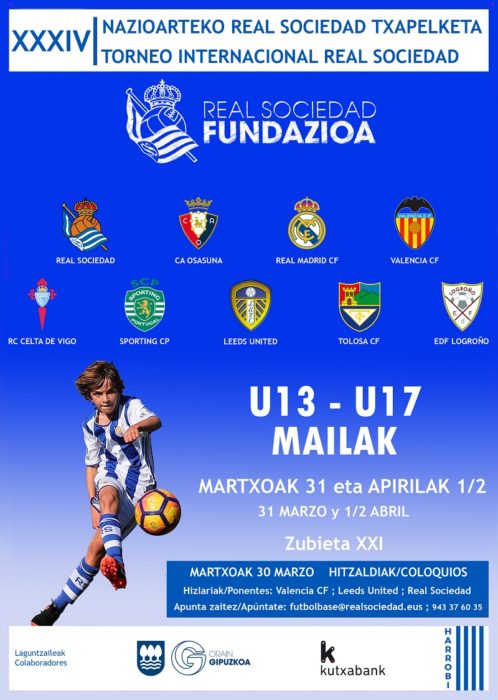 Faltan horas para el inicio del XXXIV Torneo Internacional de la Real Sociedad, uno de los grandes eventos del año en Zubieta. A partir de mañana sábado algunos de los clubes más importantes del panorama internacional y que más destacan por su trabajo con la cantera se reunirán en Zubieta para disputar el torneo. Los dos equipos de la Real Sociedad tomarán parte y competirán en las dos categorías sub-17 y sub-13. Durante el fin de semana se celebrarán las fases de grupos, mientras que el lunes tendrán lugar las finales.