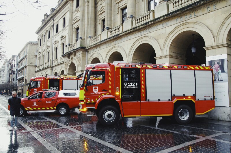 El Servicio de Prevención, Extinción de Incendios y Salvamento de la Diputación ha presentado los ocho nuevos vehículos adquiridos durante el ejercicio 2017 con una inversión de 870.006 euros. Por una parte se ha realizado la compra de 2 camiones autobomba de primera salida, próximamente operativos en los parques de Kosta (Zarautz) y Oria (Tolosa). Dichos vehículos son fundamentales en las intervenciones del Servicio, ya que como su propio nombre indica, son los primeros en salir y participan en las dos terceras partes de las 2.000 actuaciones que, aproximadamente, se realizan al año.