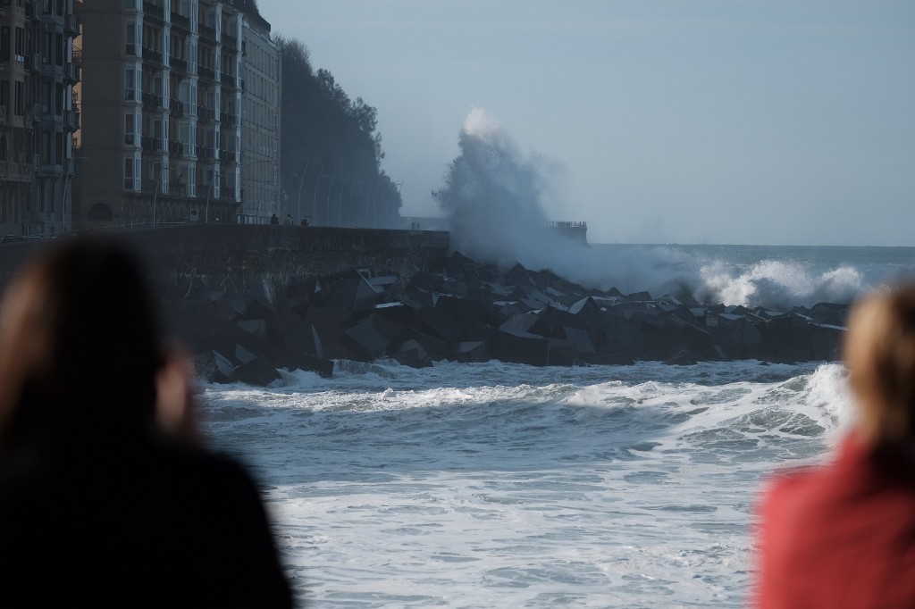 Ya ha terminado la Alerta Naranja prevista para este jueves por el impacto de olas en la costa y se mantendrá hasta las 24 horas el Aviso Amarillo por riesgo marítimo costero. En la boya de Donostia (situada a 12 millas de la costa) la altura de ola significante ha rondado los 6 metros. El temporal de mar se despide sin dejar desperfectos y con muy bonitas estampas.