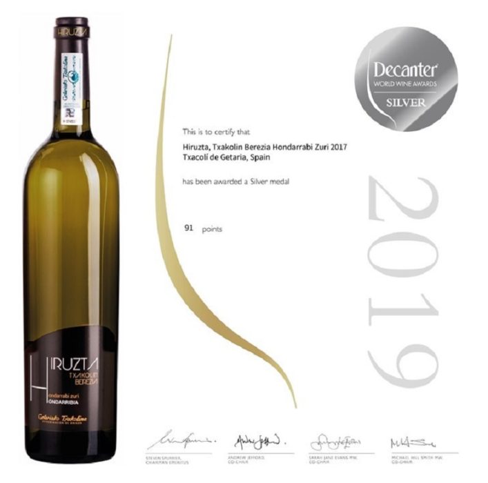 Hiruzta Berezia 2017 ha sido reconocido nuevamente en un concurso internacional. En esta ocasión ha obtenido la Medalla de Plata y 91 puntos del concurso Decanter (DWWA), el concurso de vinos más grande y prestigioso del mundo según informa la bodega en un nota de prensa. Este reconocimiento se une al Bacchus de Oro que Hiruzta Berezia 2017 obtuvo a principios de año.