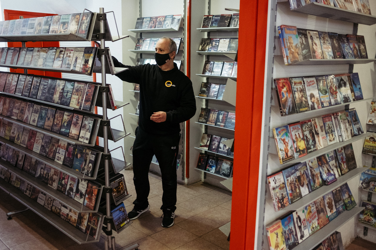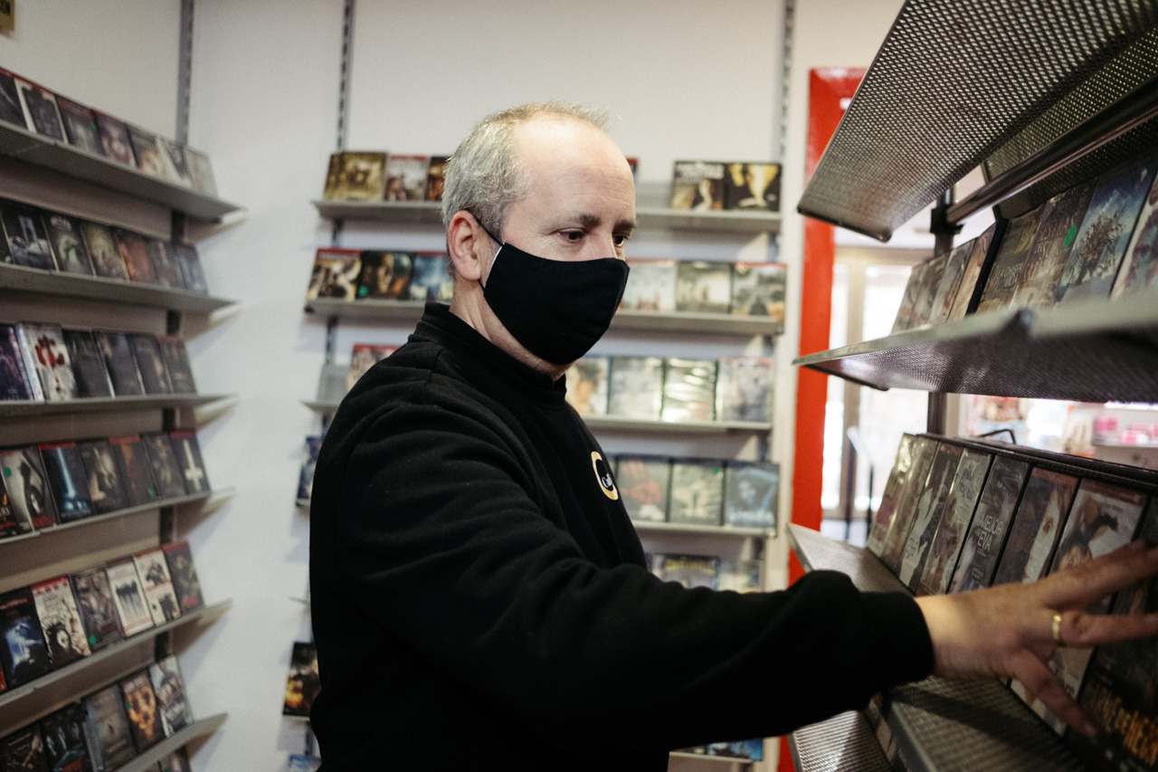 Las estanterías reservadas a las chucherías fueron ganando terreno y el cine cedió más y más espacio. Con la pandemia el negocio, muy debilitado, ha terminado por derrumbarse. “Echas cálculos y ves que me estoy gastando más en adquirir películas que lo que saco alquilándolas. Como mucho, me quedo a la par”, explica Iñigo, que lleva puesta una camiseta negra del café Waffle de la Zurriola, su otro negocio. “Durante el confinamiento mucha gente se ha suscrito a las plataformas de cine y, claro, frente a la comodidad de estar en casa poco podemos hacer. Es lo que tiene”. Y tomó una decisión que no tiene vuelta atrás: desde verano no compra cine. Solo vende. Está liquidando las existencias del videoclub.