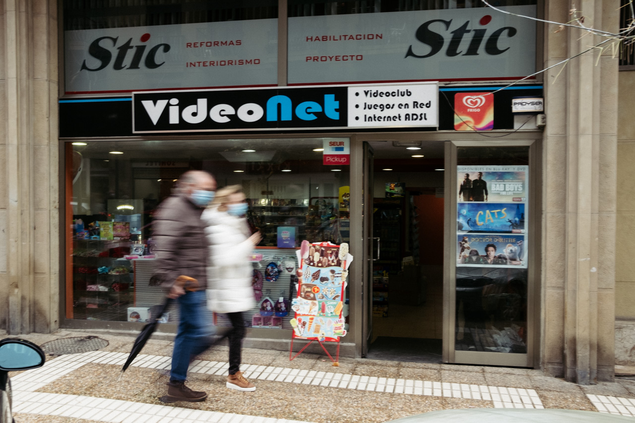 Hace dos años se convirtió en un punto de recogida de SEUR. Definitivamente, los dulces y los envíos por mensajería se quedan; el videoclub agoniza, cuenta ya sus últimos meses, si las ventas se multiplican serán semanas. Extinguido EuskalBideo en 2017 y, si exceptuamos la Casa del Duende de Intxaurrondo, con un cajero 24 horas en su exterior, ya no habrá otro negocio igual en toda la ciudad. Un repartidor entra a la tienda. De la carretilla desliza una montaña de cajas y paquetes que termina apilada a la altura del mostrador.