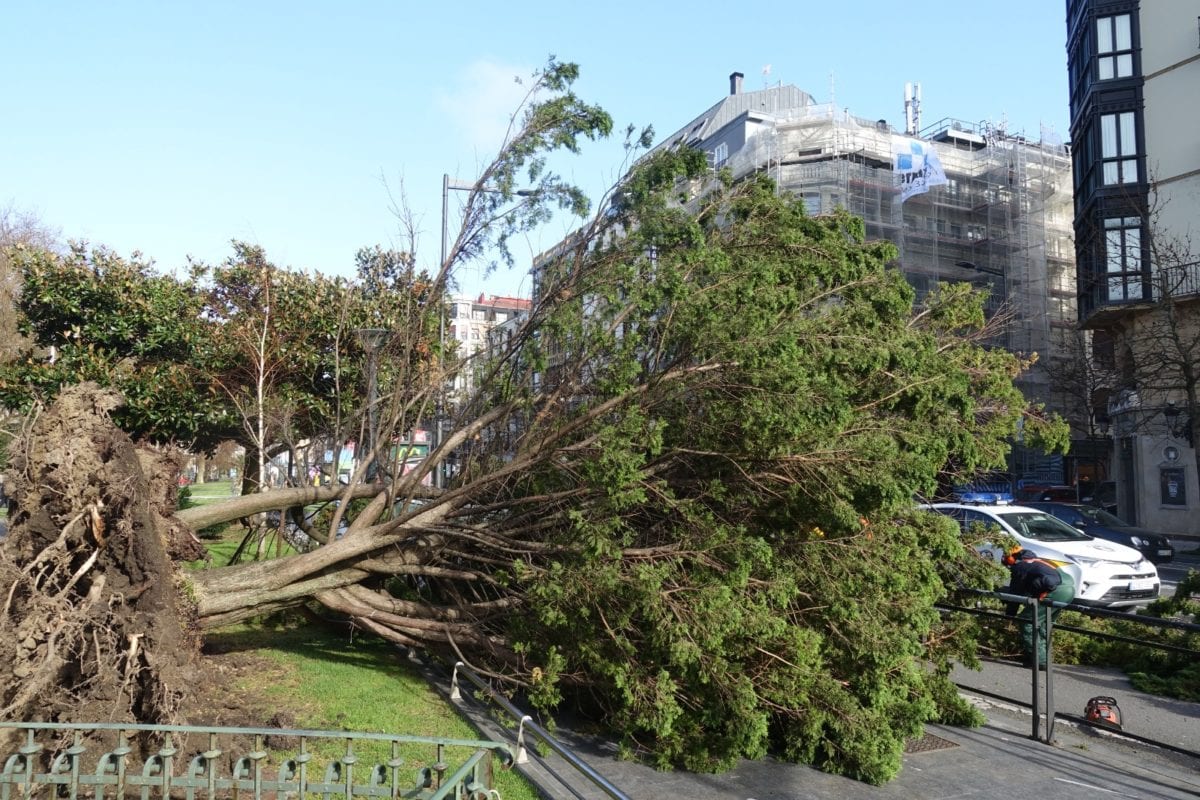 Las mayoría de las llamadas ha respondido a la presencia de contenedores en la calzada, a una veintena de árboles o ramas caídos o con riesgo de hacerlo (el árbol caído en Carlos I es un ejemplo) y a cristales rotos de marquesinas. También se ha roto la cristalera del bar Kellys de Gros y un objeto movido por el viento