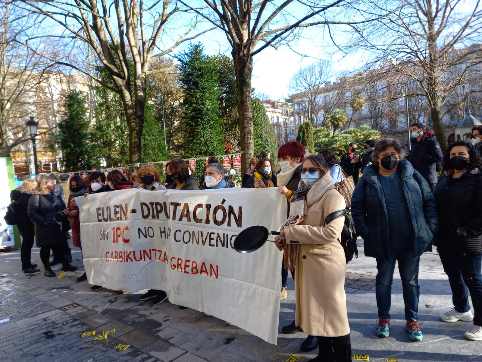 Ane Alberdi, de ELA, presente en la concentración de la plaza Gipuzkoa, ha explicado que la negociación con Eulen comenzó en mayo y está bloqueada.