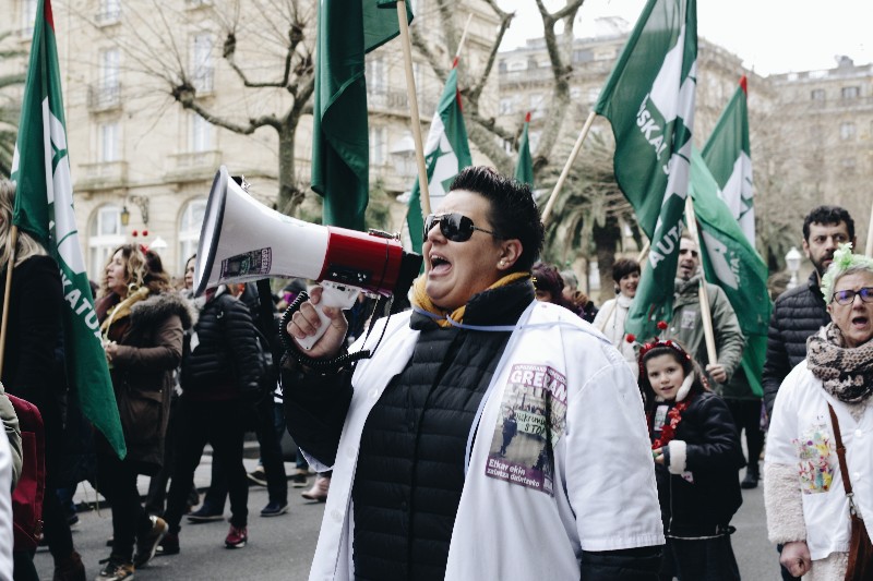 «Las trabajadoras del sector queremos denunciar el papel que esta jugando la Diputación de Gipuzkoa», que es «la financiadora en más de un 90 % del sector». A su entender, «está dando total cobertura a las patronales».