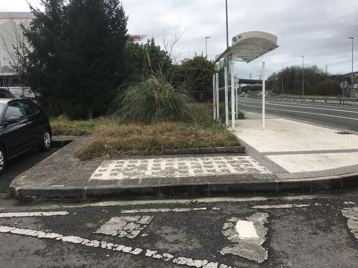 «La acera existente en la parada de autobús no dispone del rebaje al que obligan las normas vigentes en materia de accesibilidad, lo que obliga a bajar la rampa del vehículo sobre la calzada, con la consiguiente inclinación que pone en riesgo la integridad y seguridad de las personas usuarias de silla de ruedas», denuncia la entidad.