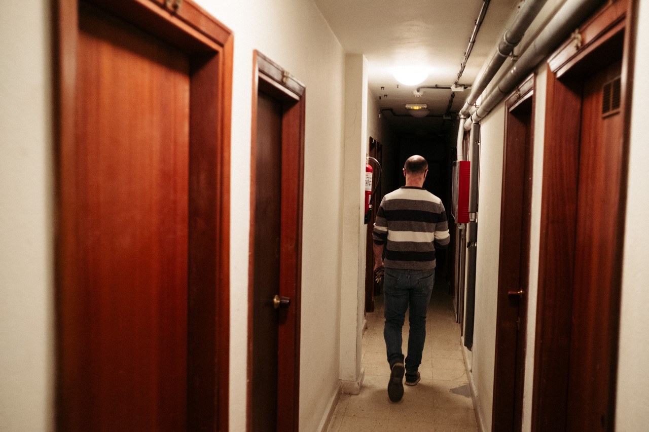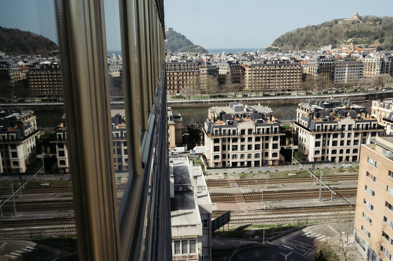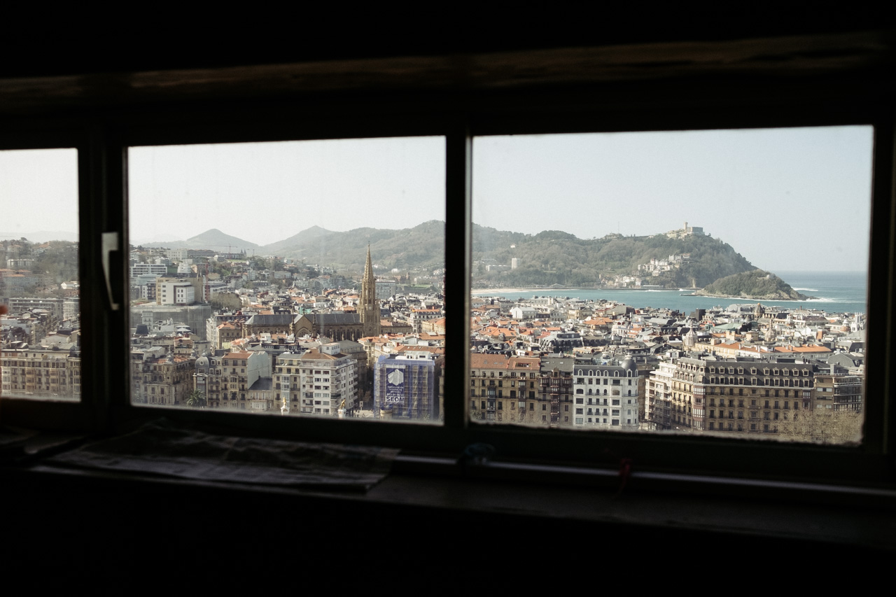El ascensor se detiene en la planta 17. Ahí se queda. Unas cuantas escaleras conducen hasta un enjambre de trasteros, ya en el piso 18, en el que se cuela sin permiso el silbido del viento. Un pasillo oscuro, estrecho y largo recuerda inevitablemente al hotel Overlook de Stanley Kubrick en El resplandor. Mújica abre el suyo, justo al final. Y de nuevo unas ventanitas muestran una ciudad exultante volcada sobre el mar. “Son los mejores trasteros de San Sebastián”, dice.