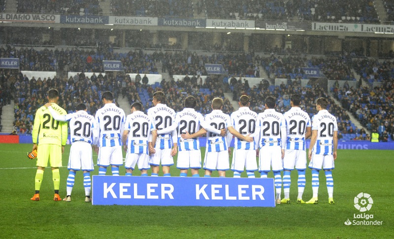 Los socios de la grada denominada Aitor Zabaleta, presente en el nuevo Anoeta, también han homenajeado a Aitor durante el partido contra el Real Valladolid.