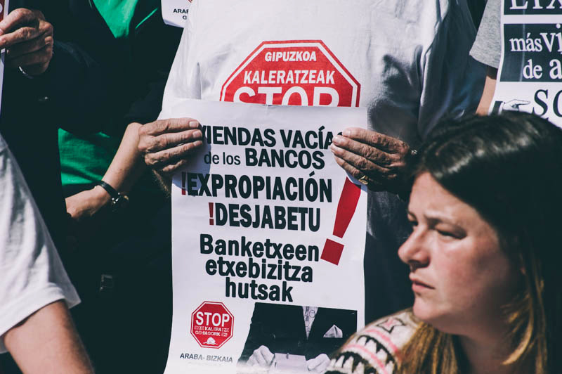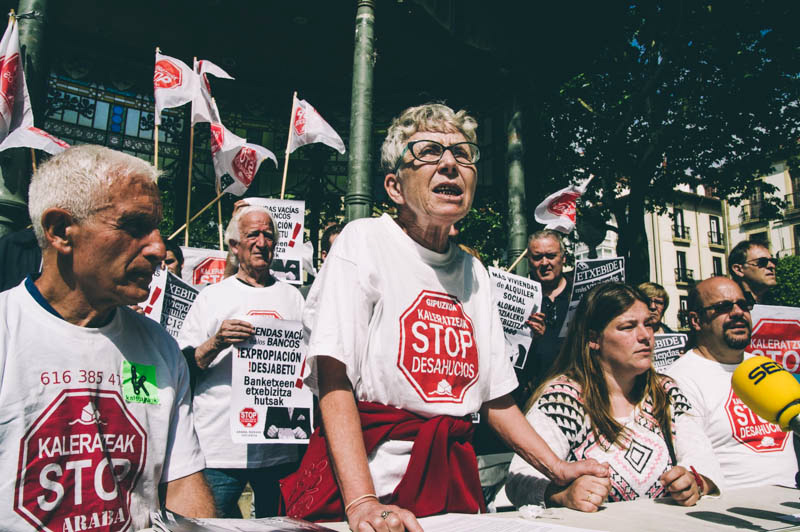 Rosa García, la representante de la plataforma, se ha mostrado muy crítica con Etxebide, se ha referido las viviendas vacías como fruto de los desahucios de los bancos y ha abogado por gravar las casas deshabitadas y reformar la fiscalidad entre otras medidas.