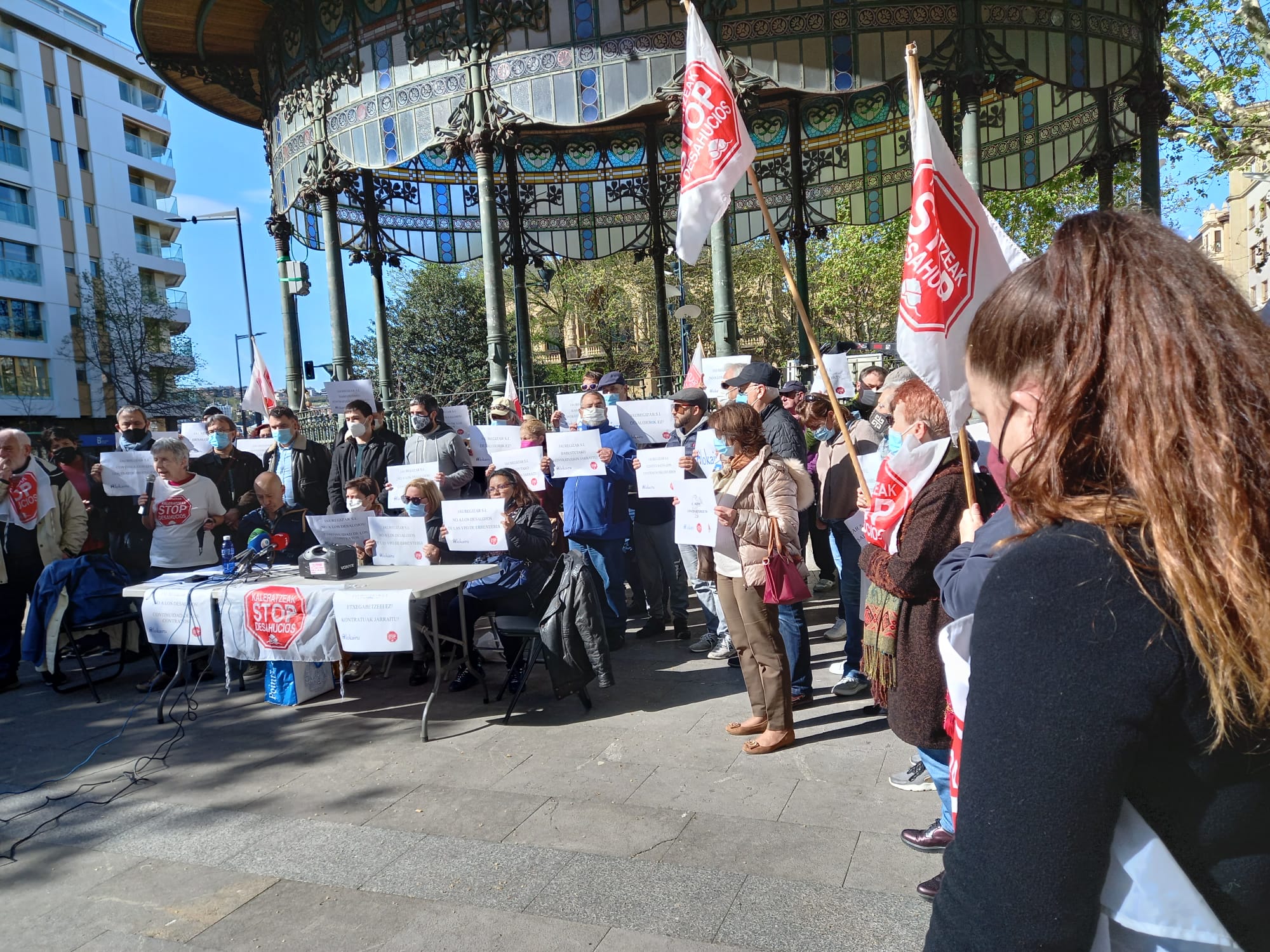 Un nuevo conflicto por la vivienda estalla en Gipuzkoa, en esta ocasión en Errenteria, y esta mañana durante una concentración en el Boulevard donostiarra se ha ilustrado perfectamente la situación: por un lado los 40 inquilinos del Paseo Arramendi a los que se les terminará el 16 de abril el arrendamiento protegido con que han contado durante quince años. Por otro lado la empresa Jaureguizar, que compró al Ayuntamiento de Errenteria el suelo en 2002 y que ha cumplido con las obligaciones estipuladas hasta ahora. Y por último… la Administración, que es hacia donde miran los anteriores. Y es que tanto la empresa como los inquilinos aspiran a que el Gobierno vasco se haga con estas viviendas protegidas.