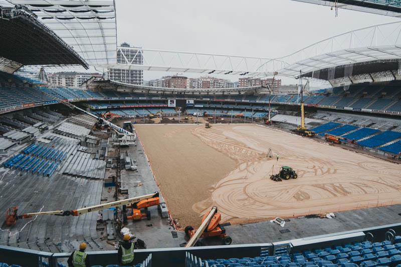 Los plazos se cumplen y el 15 de septiembre el campo, todavía a medias, albergará el partido entre la Real Sociedad y el Fútbol Club Barcelona. Habrá 28.000 plazas de las 42.000 que tendrá finalmente el estadio cuando culmine la remodelacion.