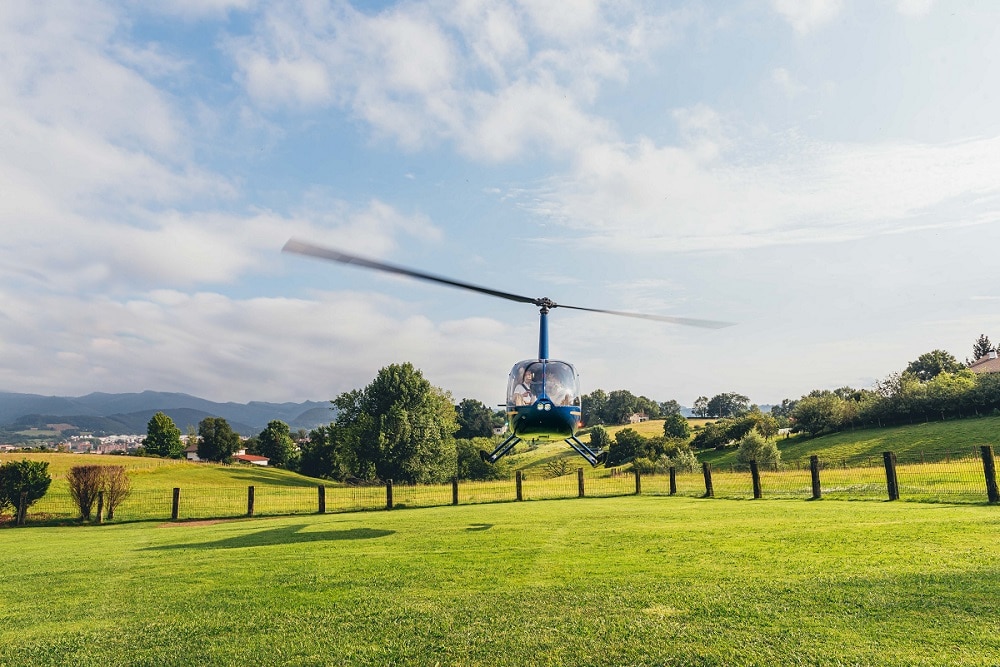 El helicóptero utilizado, operado por Basque Helicopters, es un modelo Robinson 44 con capacidad para un piloto y tres pasajeros. Con un alcance de 560 km, la aeronave puede volar sin escalas por todo el norte de España, el sur de Francia y Andorra, pudiendo aterrizar en aeropuertos, fincas privadas, y en numerosos restaurantes y bodegas.
