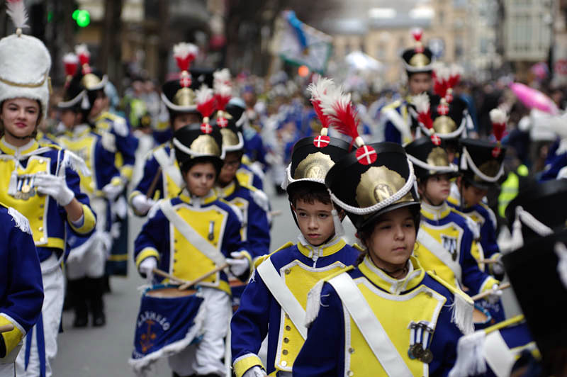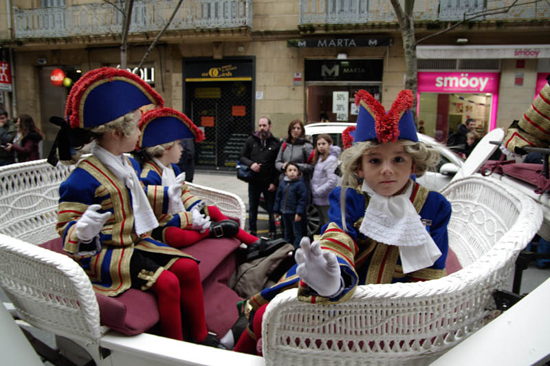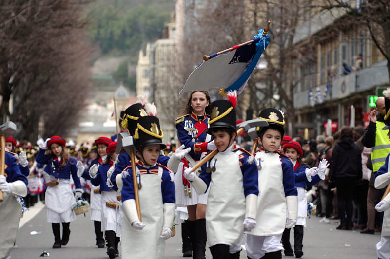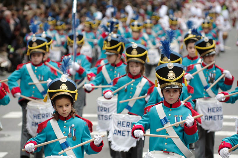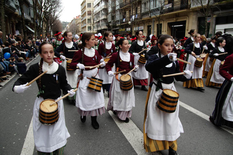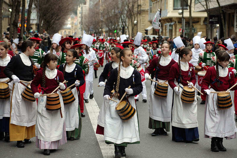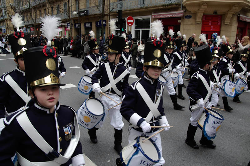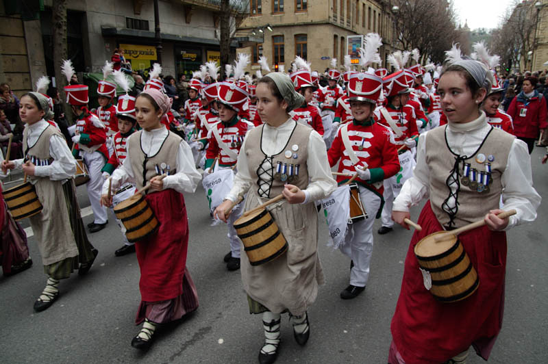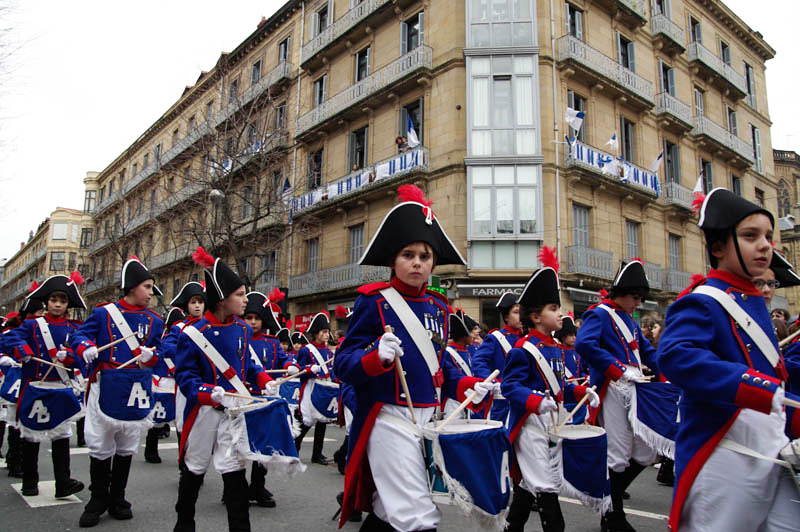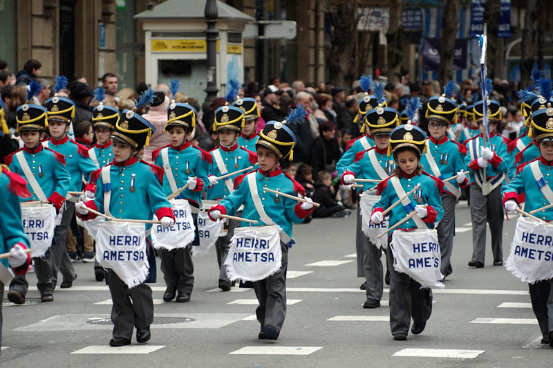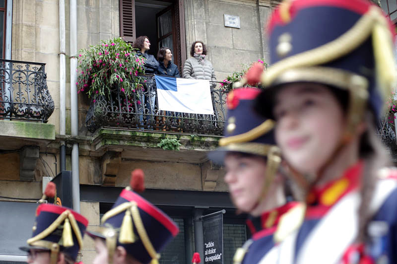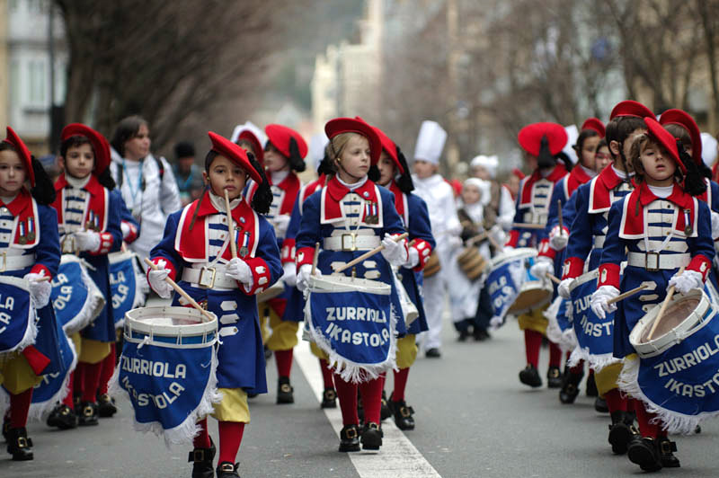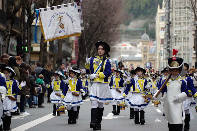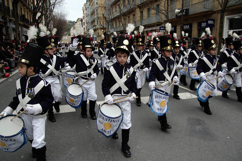 Cinco mil pequeños donostiarras han desfilado en sus compañías, cada cual con su colegio, desde las doce del mediodía. Con puntualidad. El Santo se ha portado y no ha querido aguar la fiesta. Distinto va a ser con la Arriada.