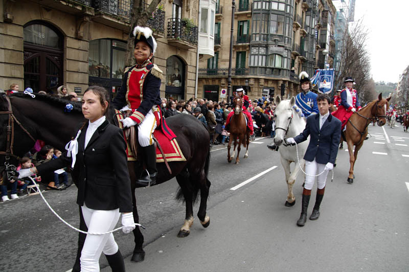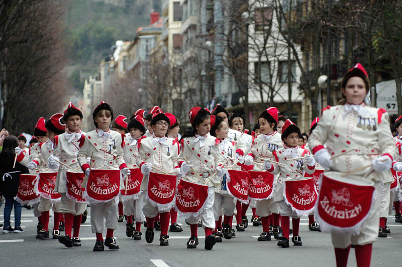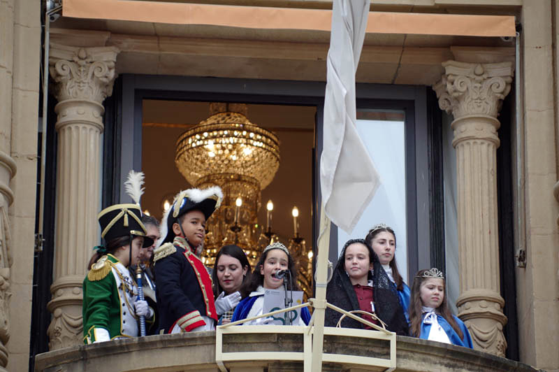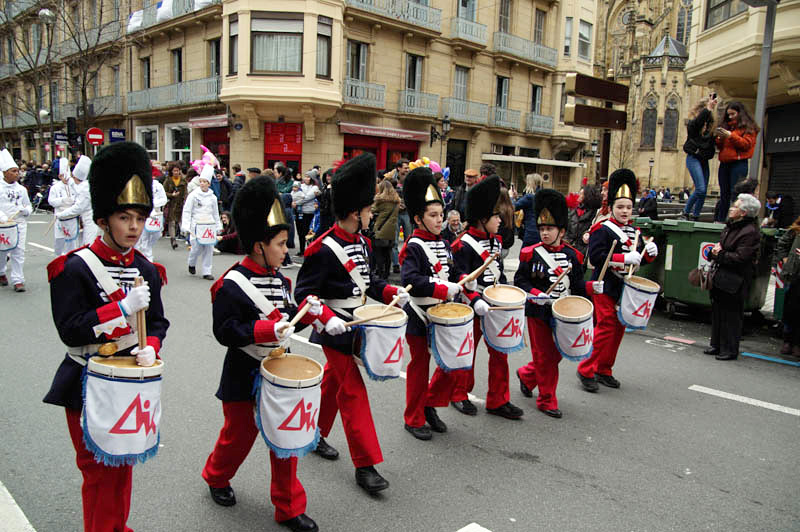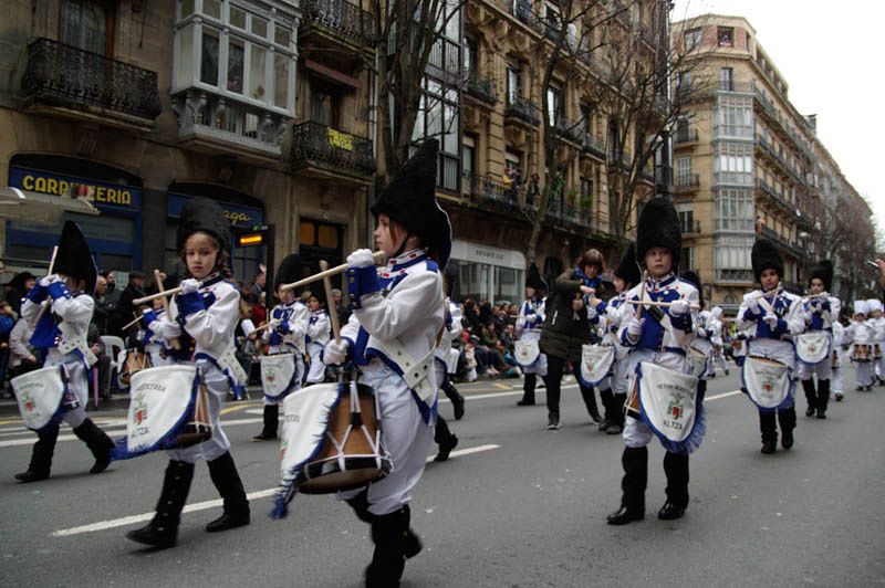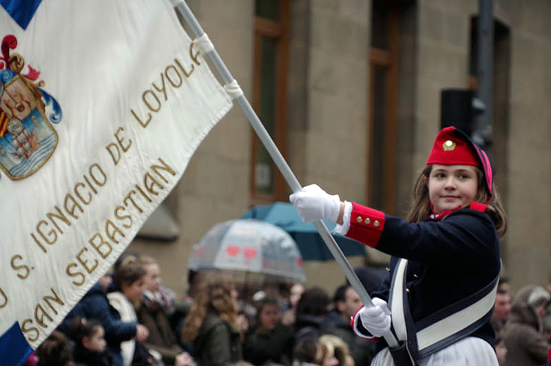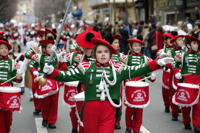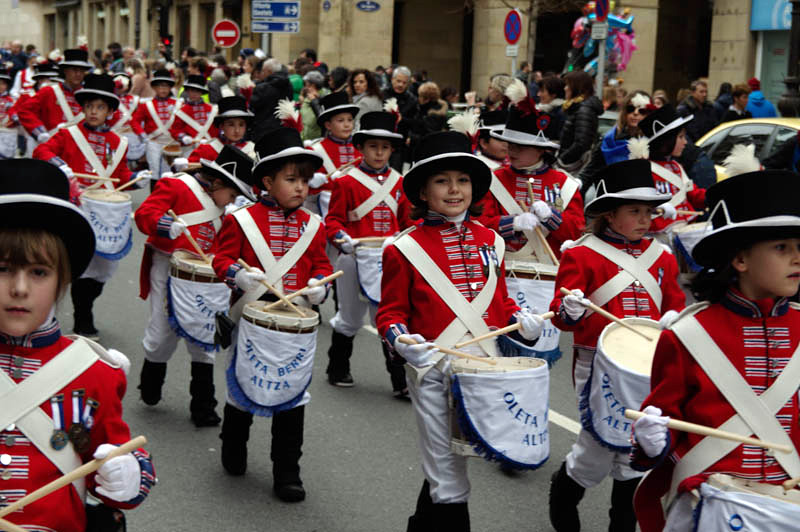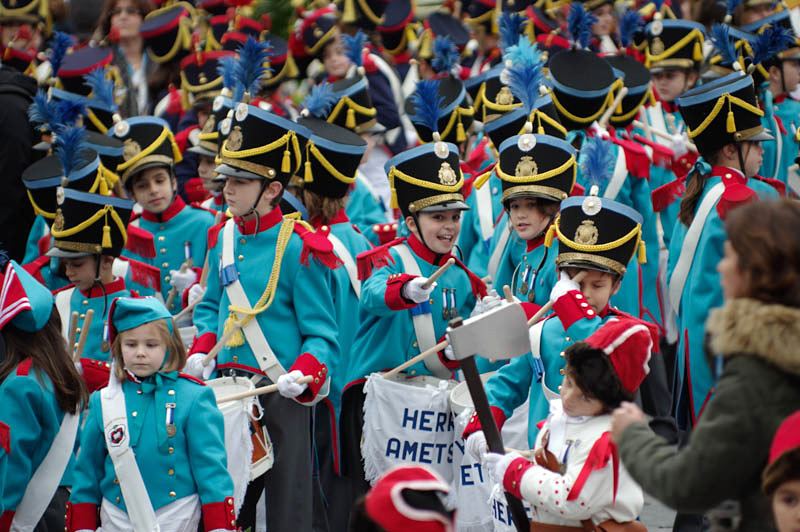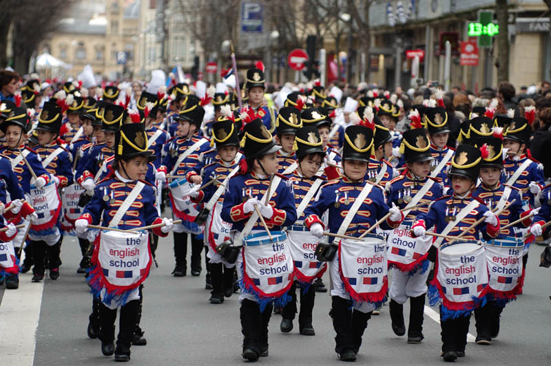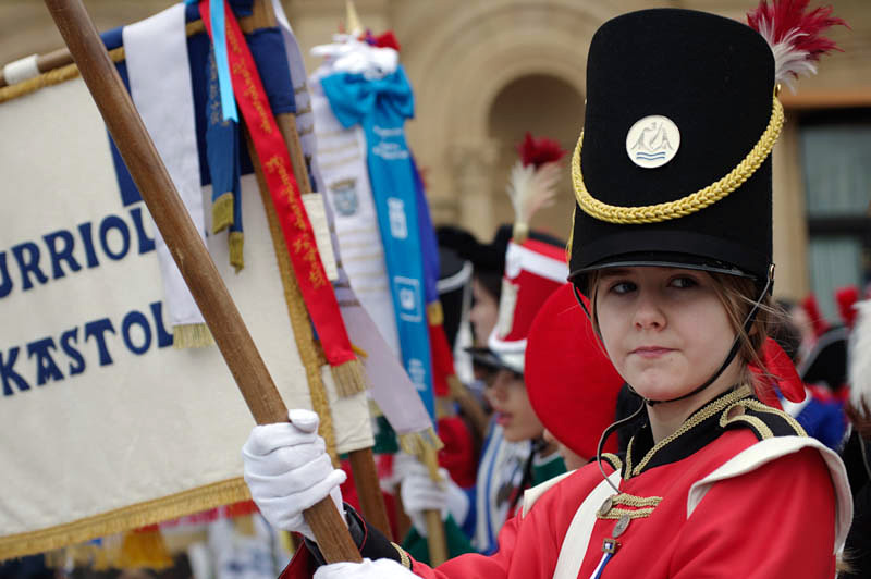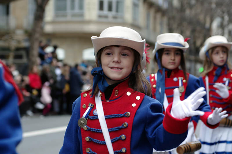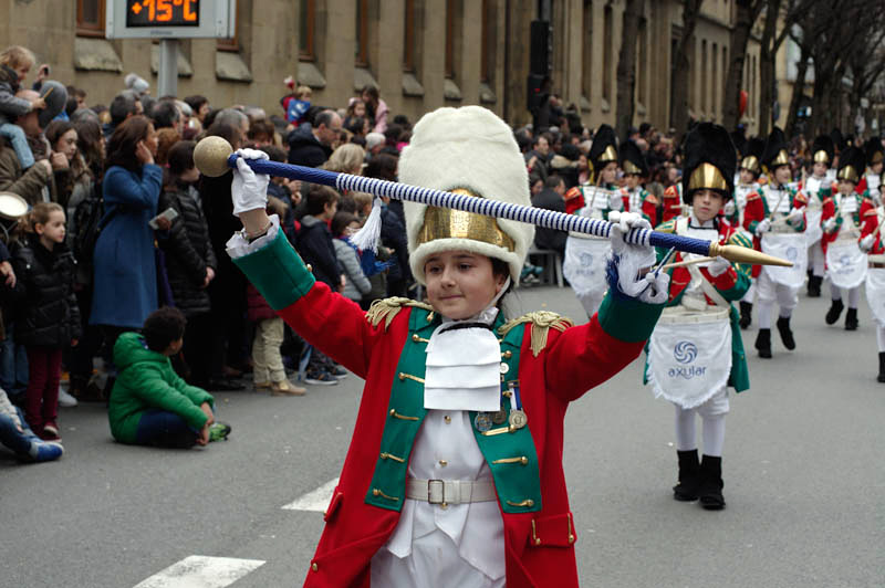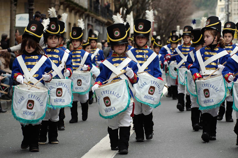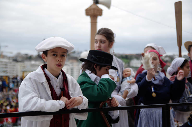 Cinco mil pequeños donostiarras han desfilado en sus compañías, cada cual con su colegio, desde las doce del mediodía. Con puntualidad. El Santo se ha portado y no ha querido aguar la fiesta. Distinto va a ser con la Arriada.