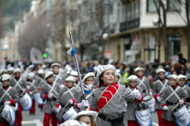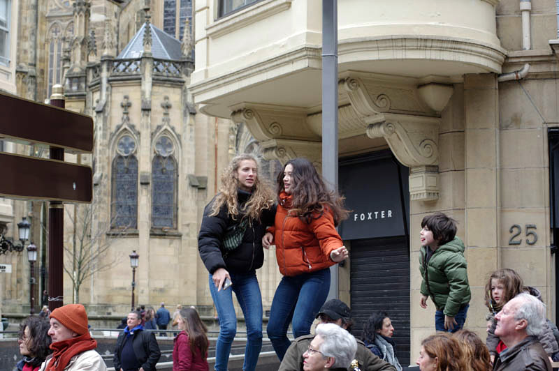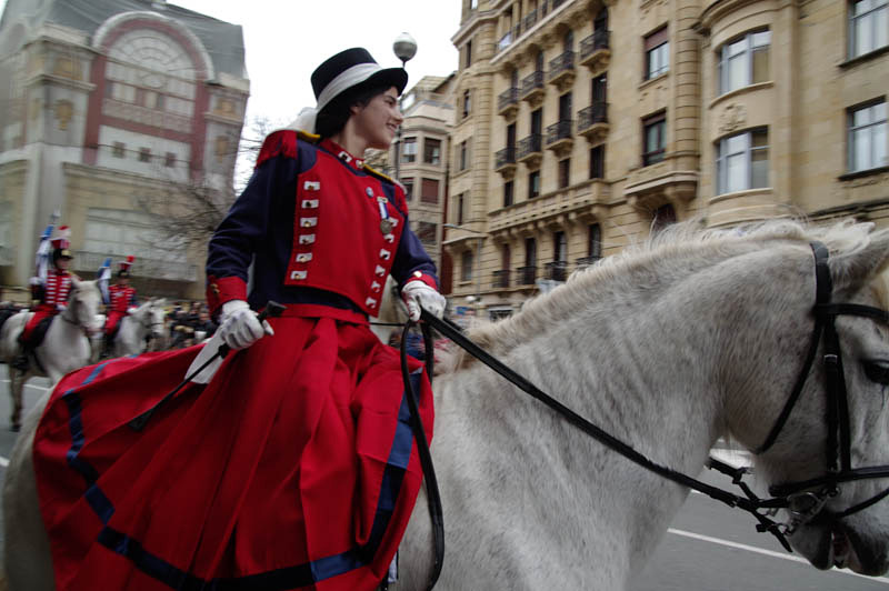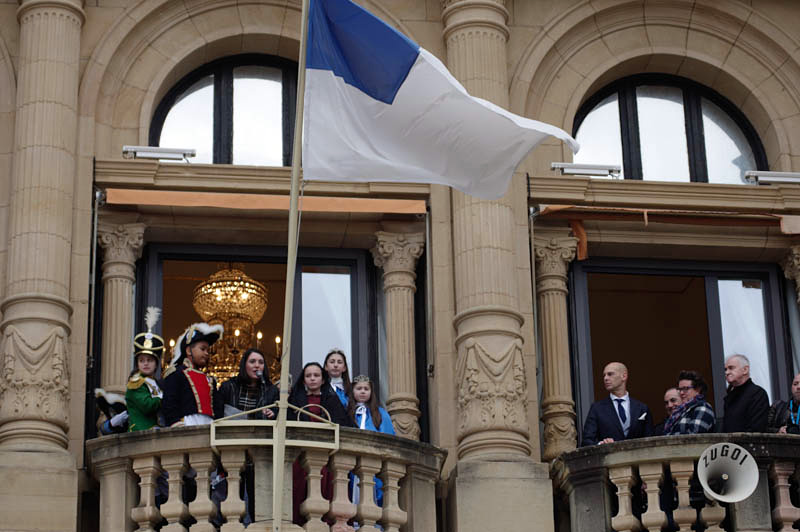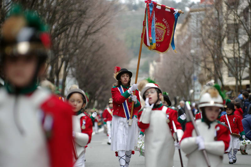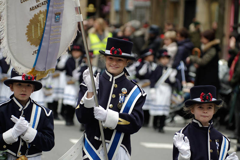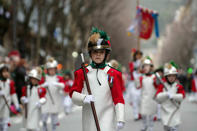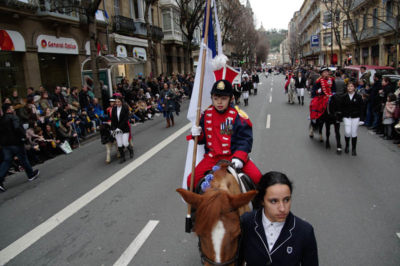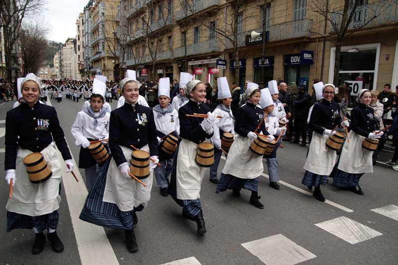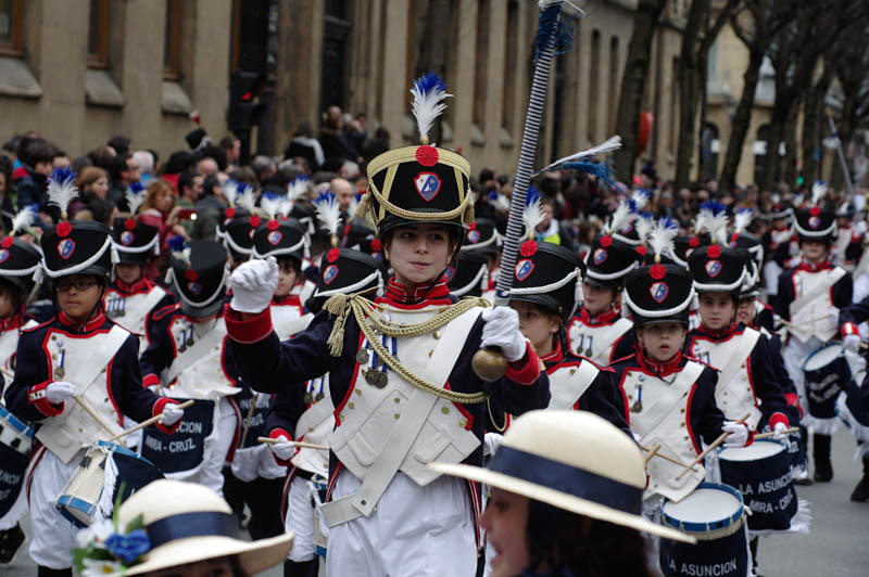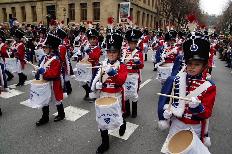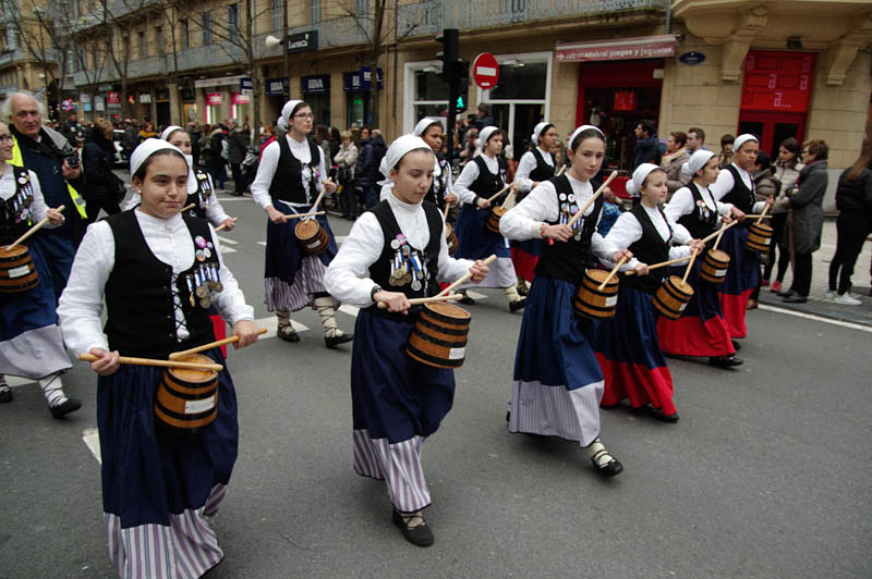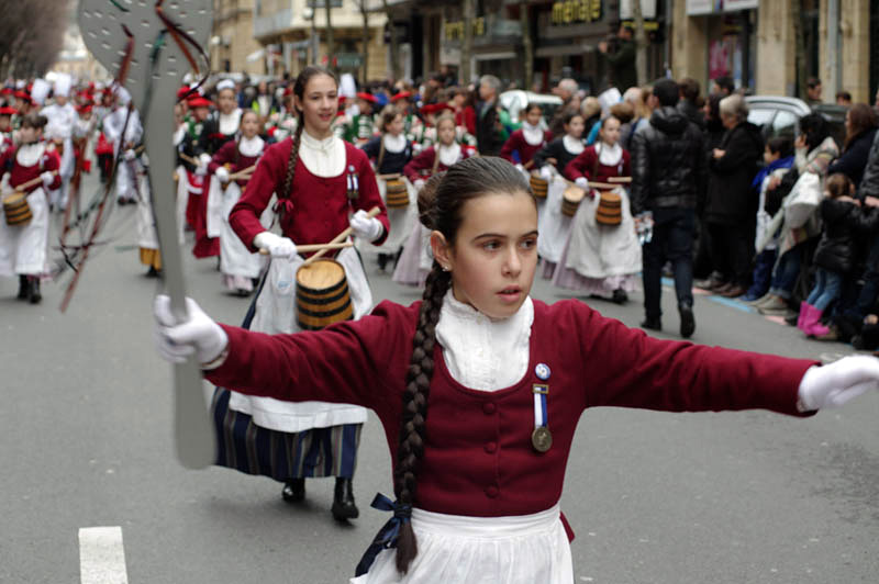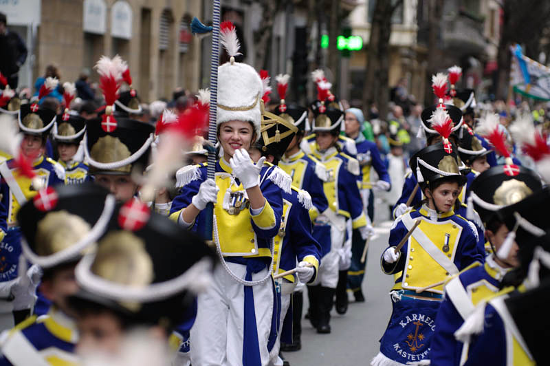 Cinco mil pequeños donostiarras han desfilado en sus compañías, cada cual con su colegio, desde las doce del mediodía. Con puntualidad. El Santo se ha portado y no ha querido aguar la fiesta. Distinto va a ser con la Arriada.