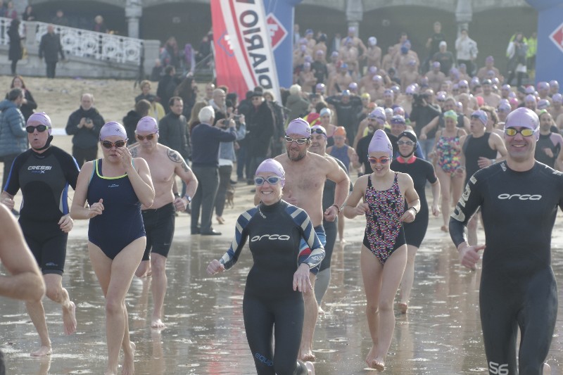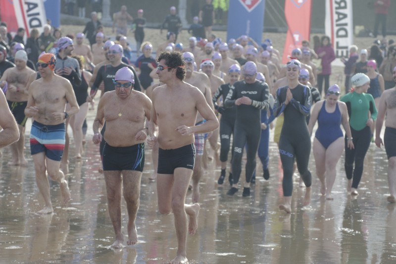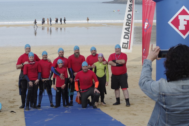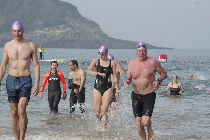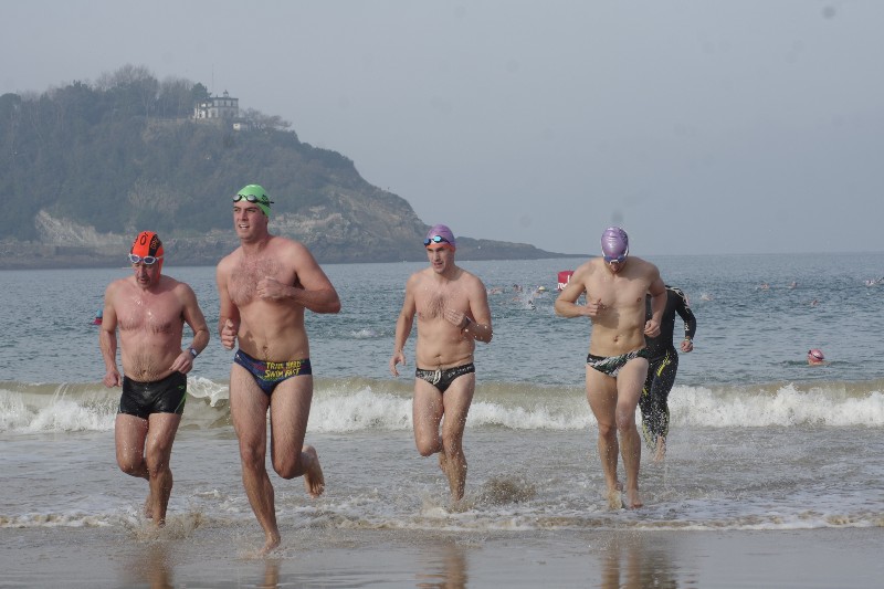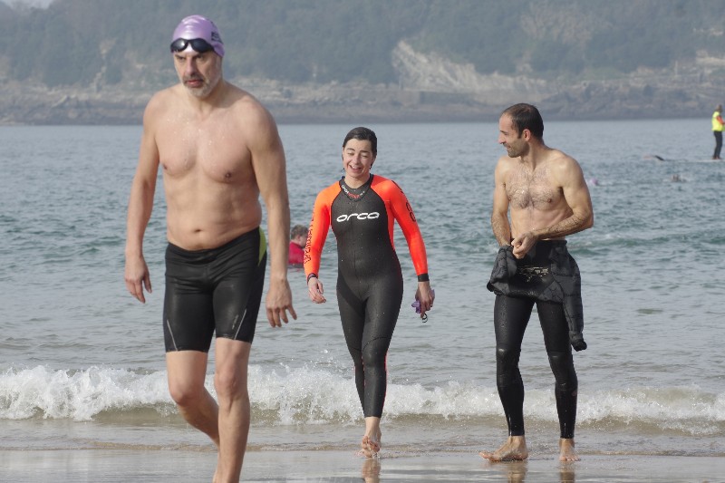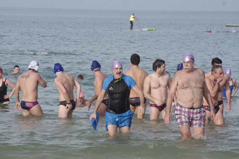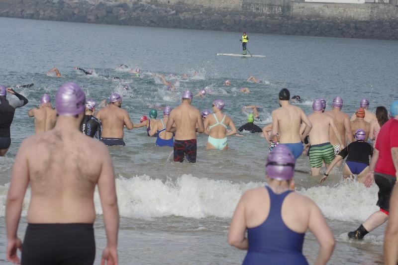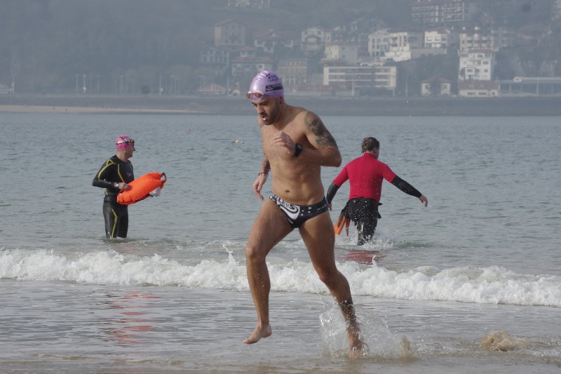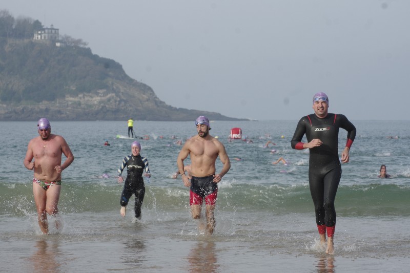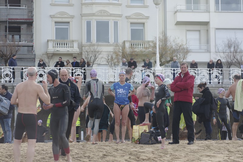 Los más valientes y también los más fieles a una cita que se repite y suma adeptos se han bañado hoy en la costa donostiarra como corresponde y con motivo del Kontxapuzón del CD Fortuna, que se ha celebrado este mediodía, Día de Navidad, en una jornada con luz pero fresca.