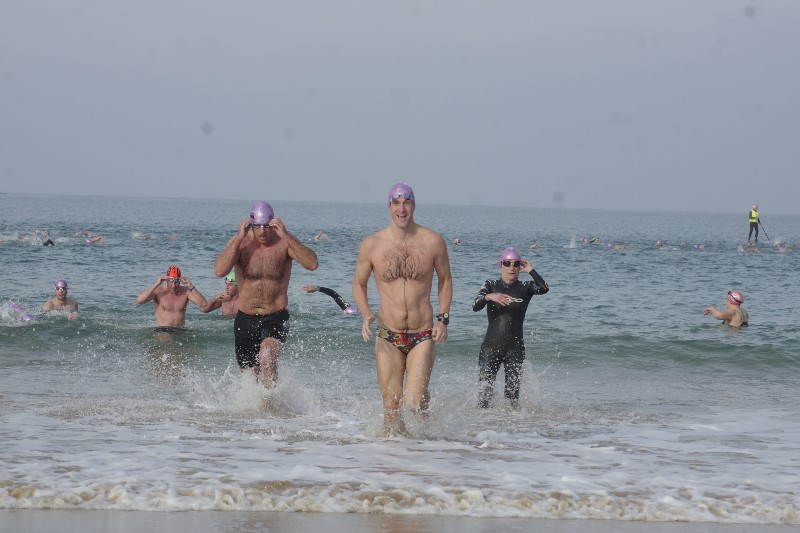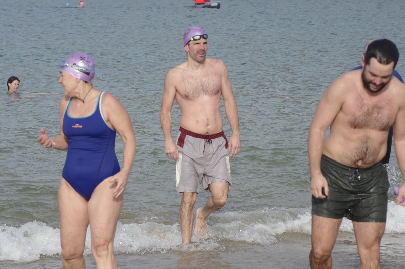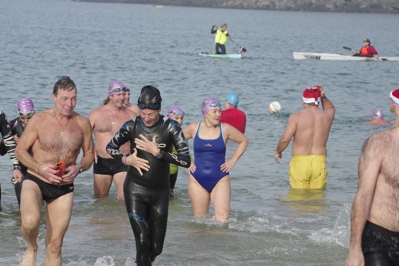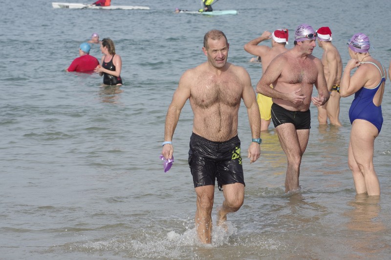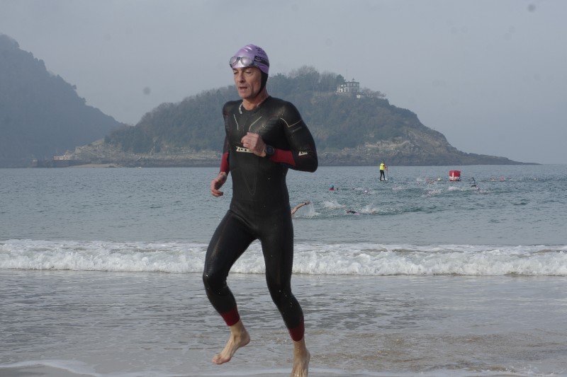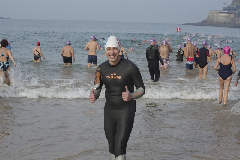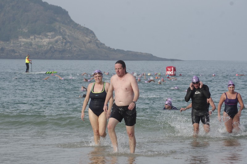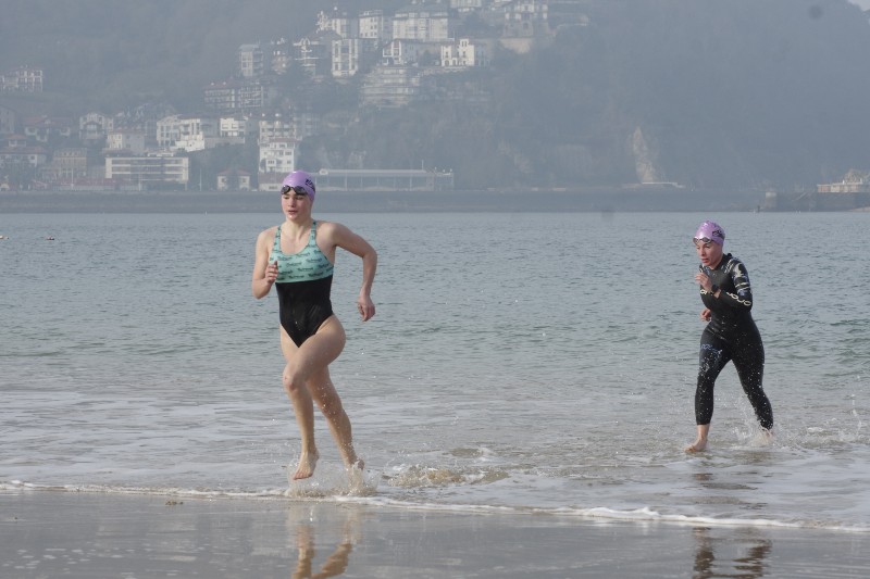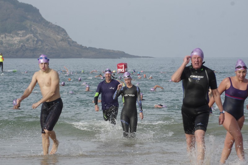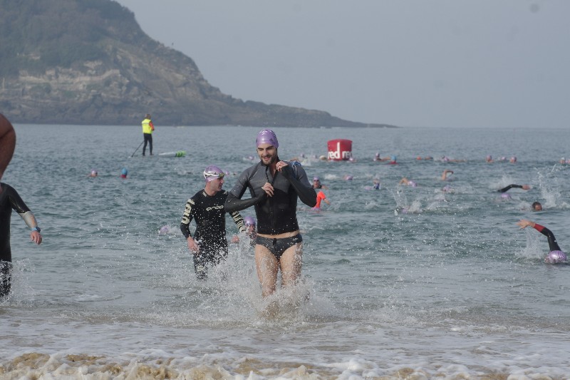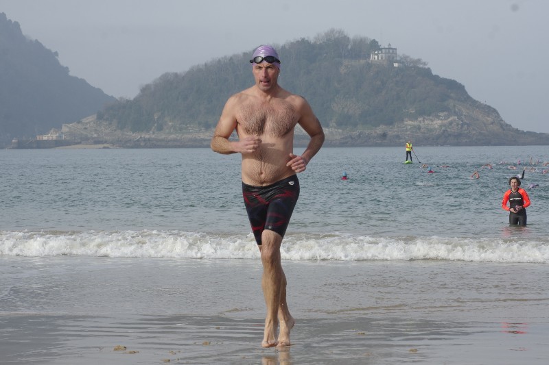Los más valientes y también los más fieles a una cita que se repite y suma adeptos se han bañado hoy en la costa donostiarra como corresponde y con motivo del Kontxapuzón del CD Fortuna, que se ha celebrado este mediodía, Día de Navidad, en una jornada con luz pero fresca.