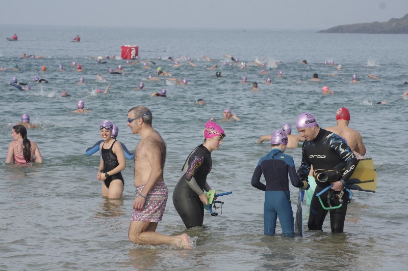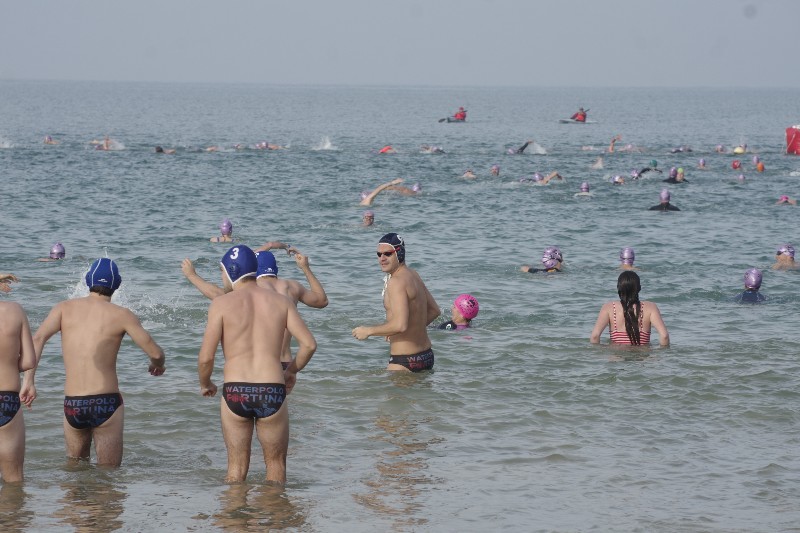 La sección de Waterpolo puede darse por satisfecha porque en esta duodécima edición el ambiente ha sido jovial y los 400 metros de mar a algunos se les han hecho hasta cortos.