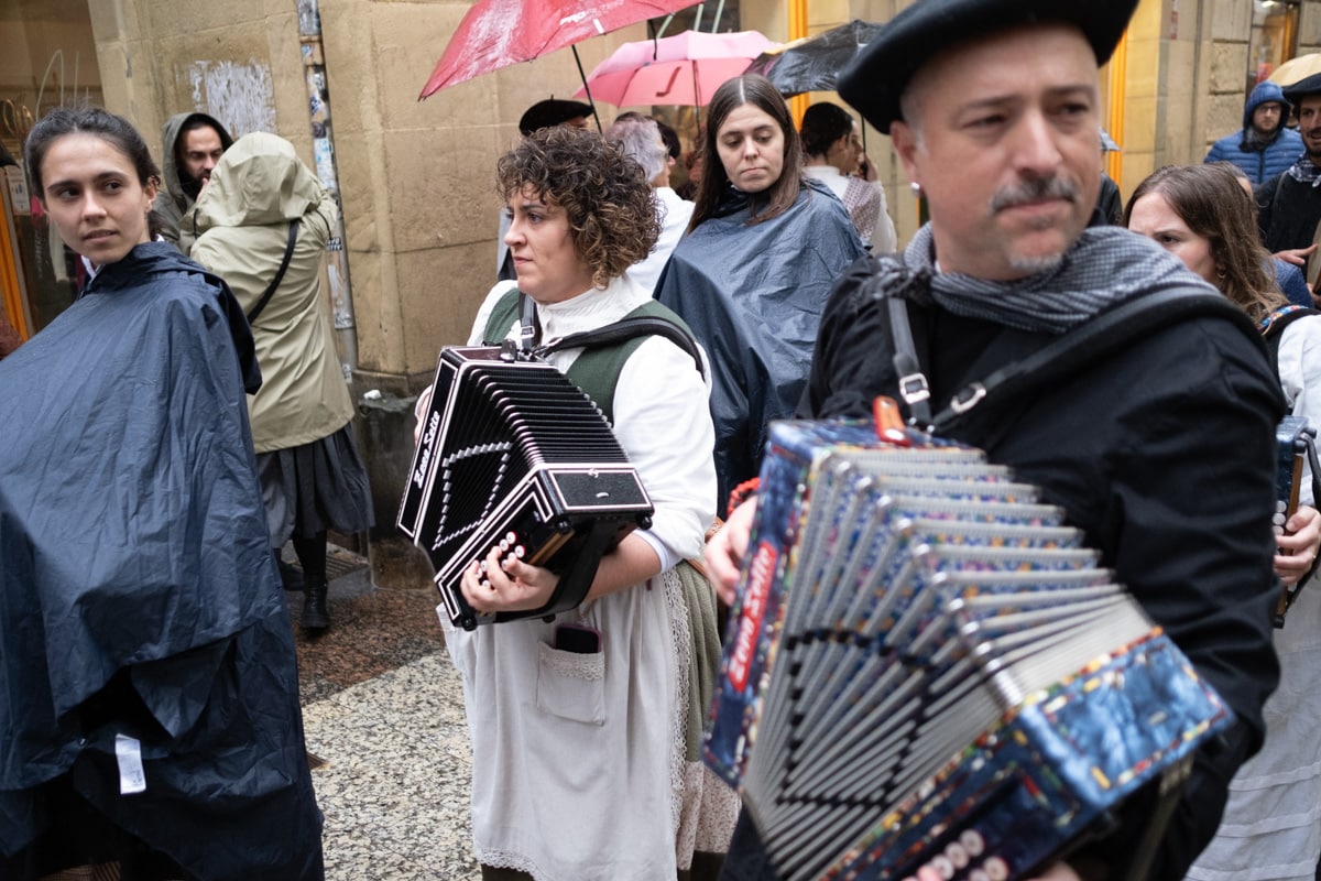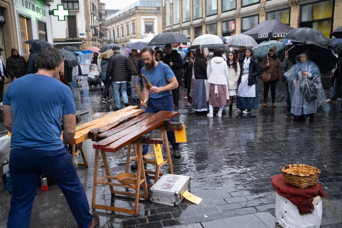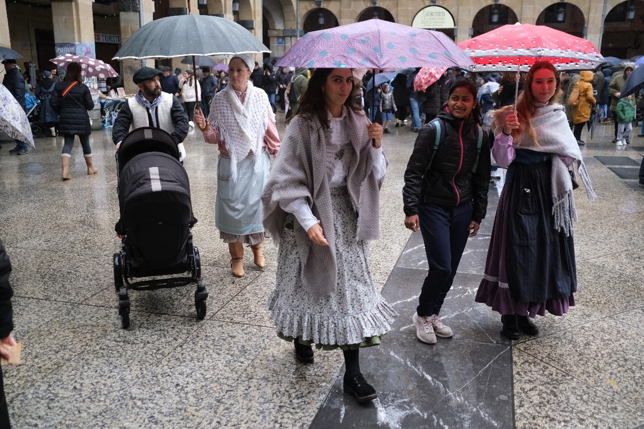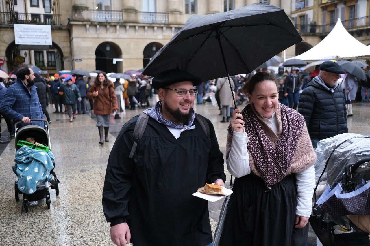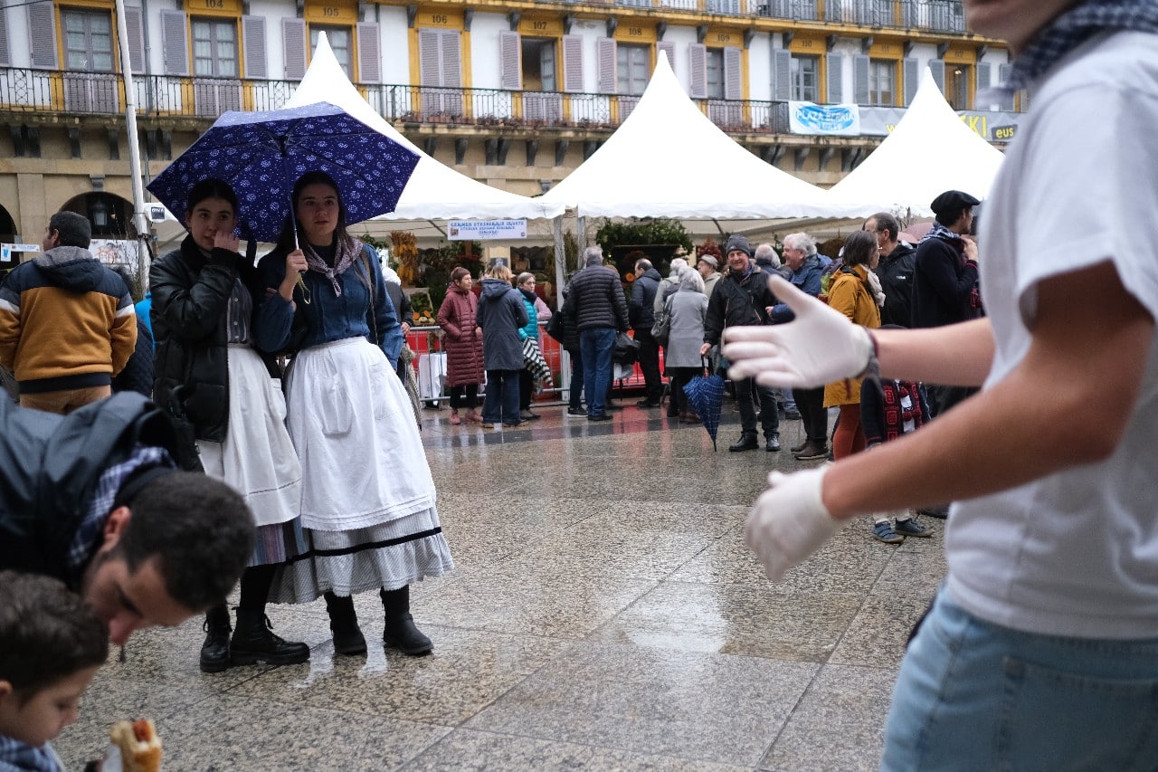 Desde primera hora del jueves comenzó a llenarse Donostia de baserritarras con motivo de Santo Tomás. ¡Lástima de lluvia! Con todo la ciudadanía disfrutó del talo y la txistorra. Y más allá del suceso que se saldó con dos heridos, la jornada transcurrió como la seda.