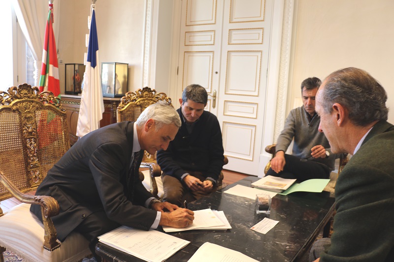 El concejal de Urbanismo Sostenible, el socialista Enrique Ramos, y el presidente de la Sociedad Estatal de Infraestructuras y Equipamientos Penitenciarios, Andreu Roca, han firmado esta tarde la transmisión de la parcela de equipamiento comunitario ubicada en el ámbito ZO.08 Eskuzaitzeta, donde se construirá la nueva cárcel de Zubieta. Por la venta de la parcela, la Sociedad Estatal de Infraestructuras y Equipamientos Penitenciarios S.A ha abonado al Ayuntamiento la cantidad de 2.087.250 euros, IVA incluido. La parcela tiene una superficie de 284.255 metros cuadrados.