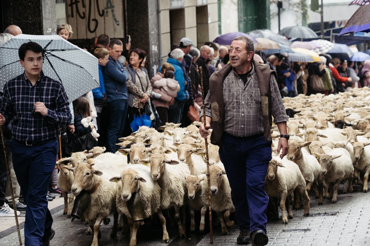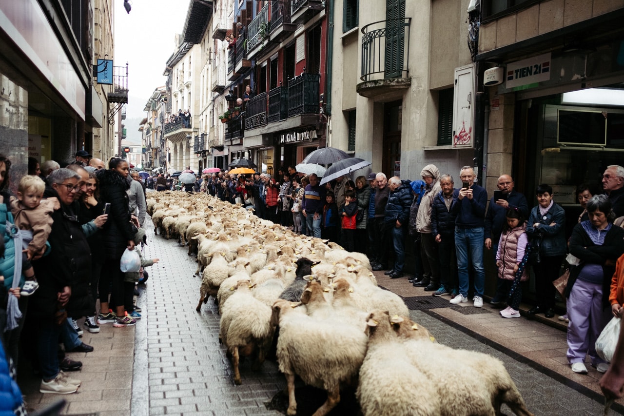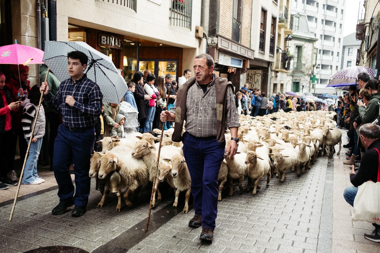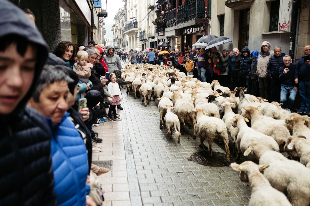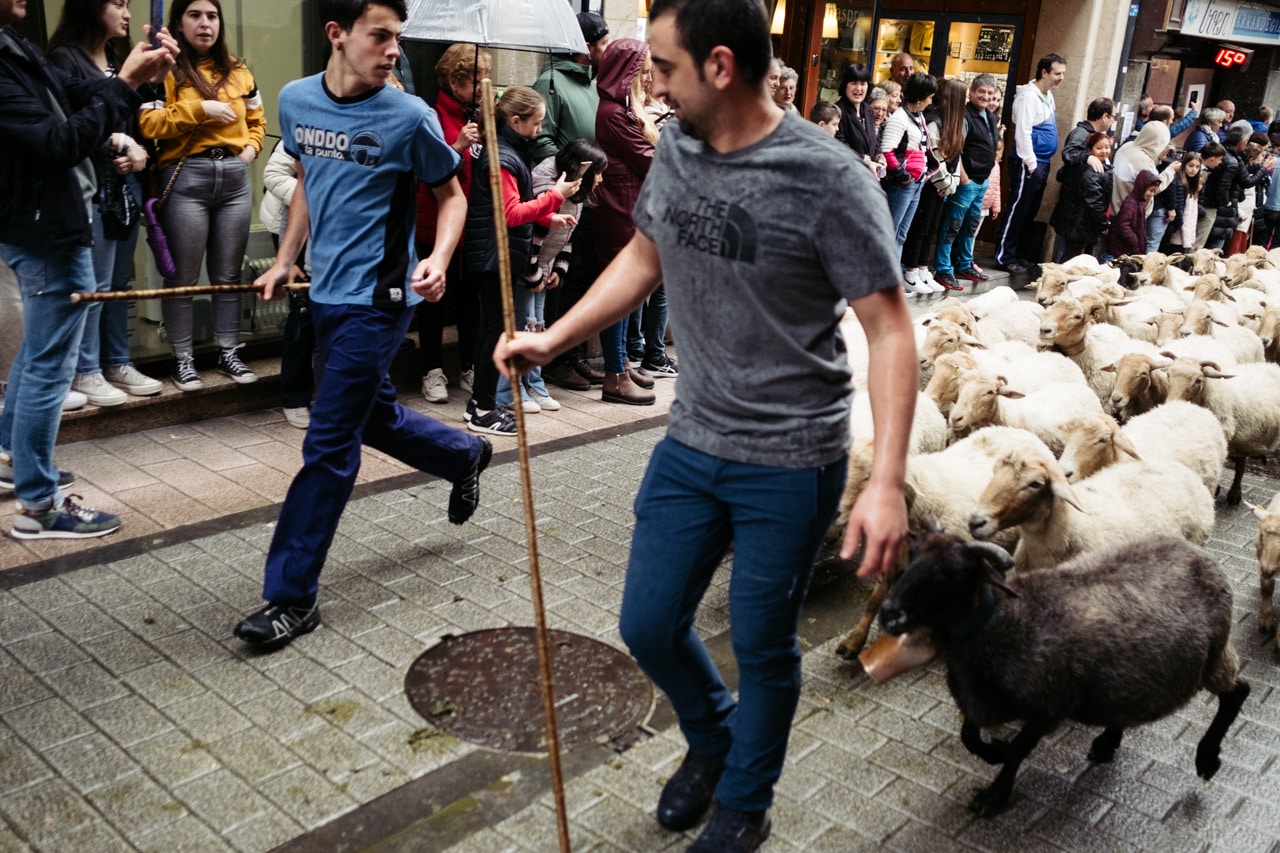 La lluvia ha molestado al público, es verdad, pero hoy Ordizia ha celebrado fiel a la tradición su Artzain Eguna y 2.000 ovejas, propiedad de cinco pastores, han pasado por el casco antiguo de la localidad gipuzkoana en recuerdo de la trashumancia.