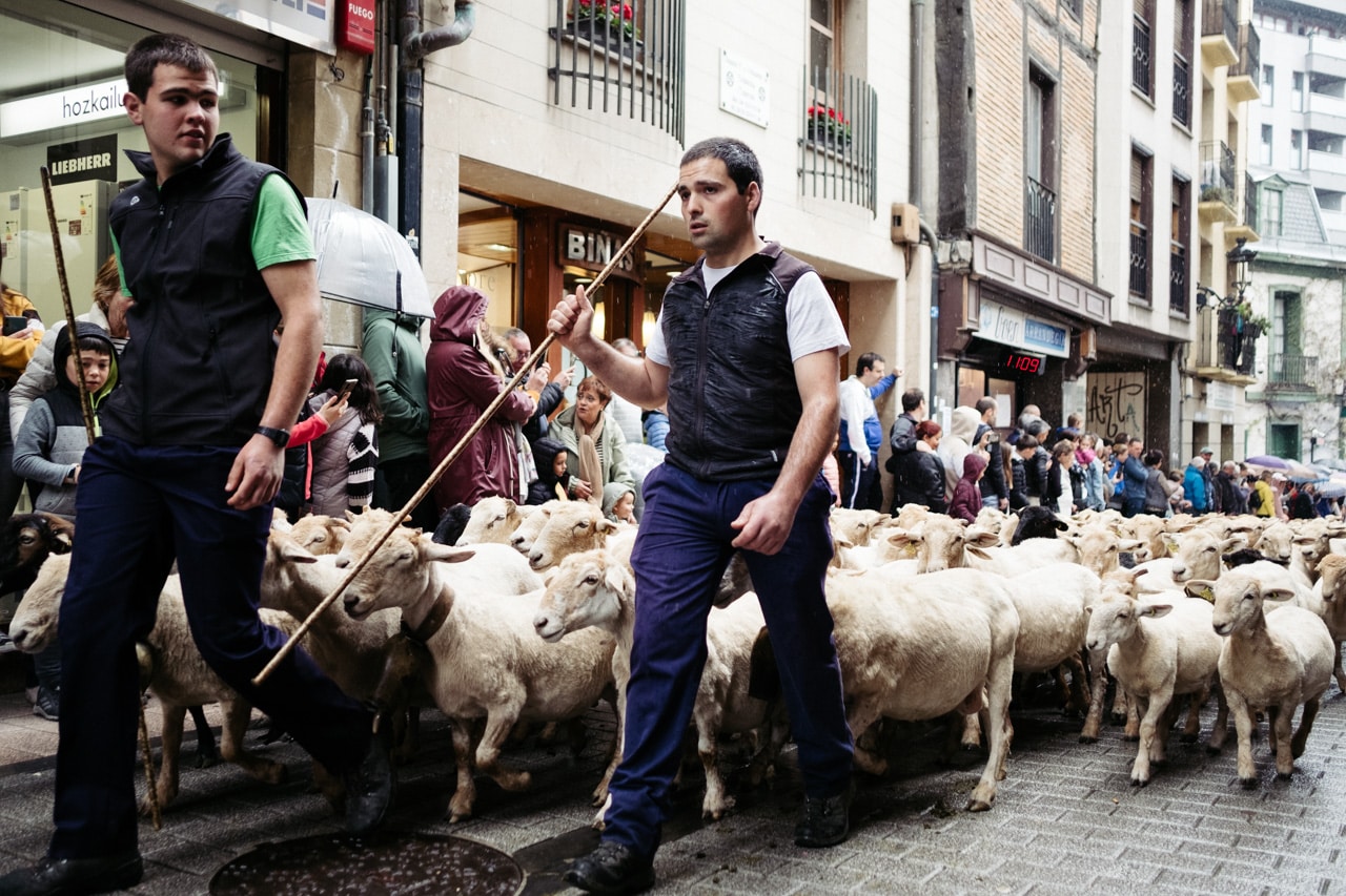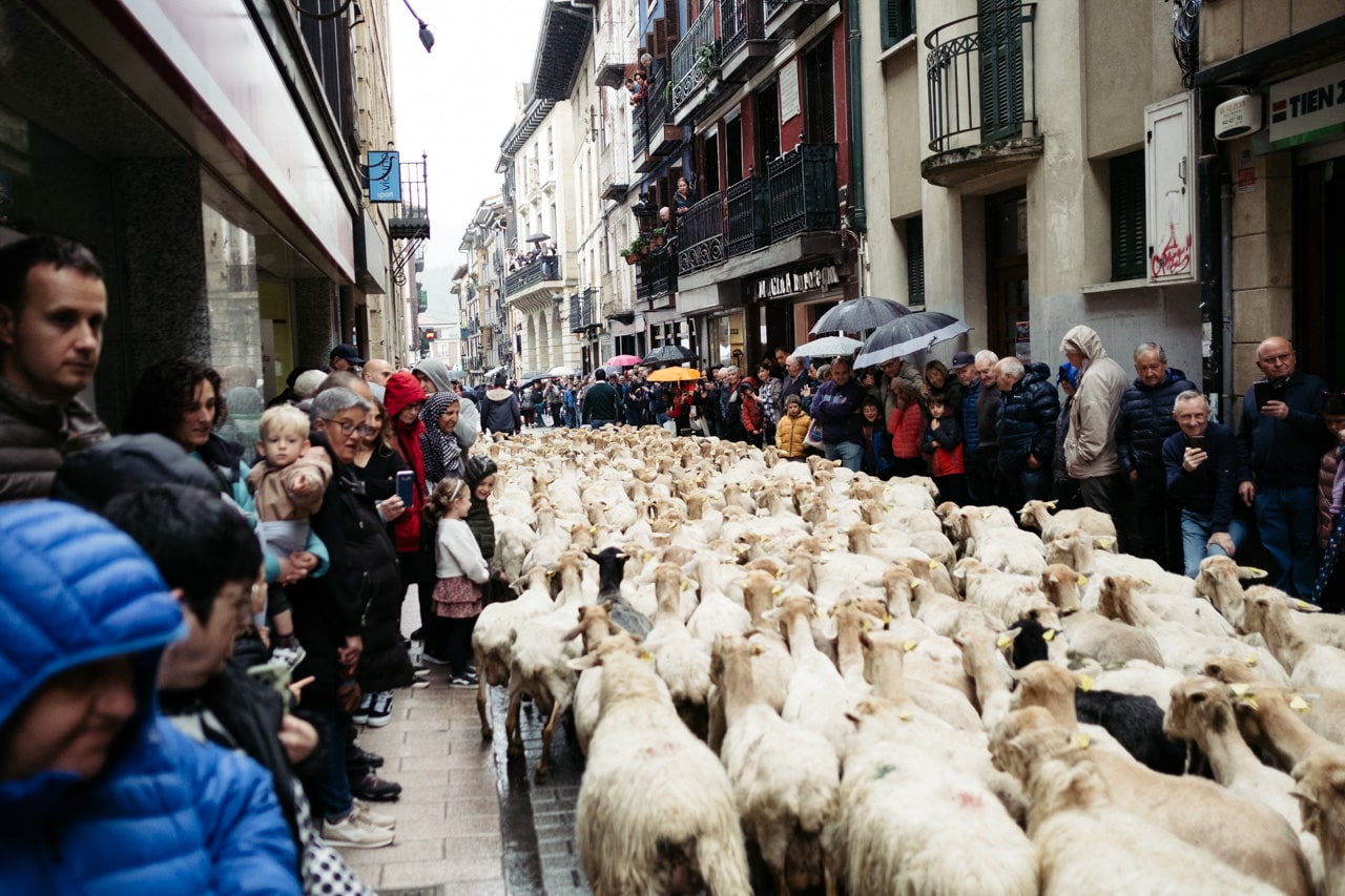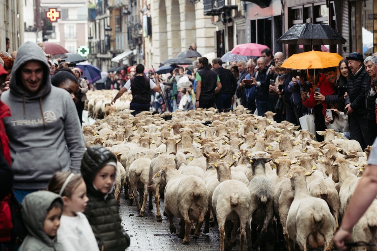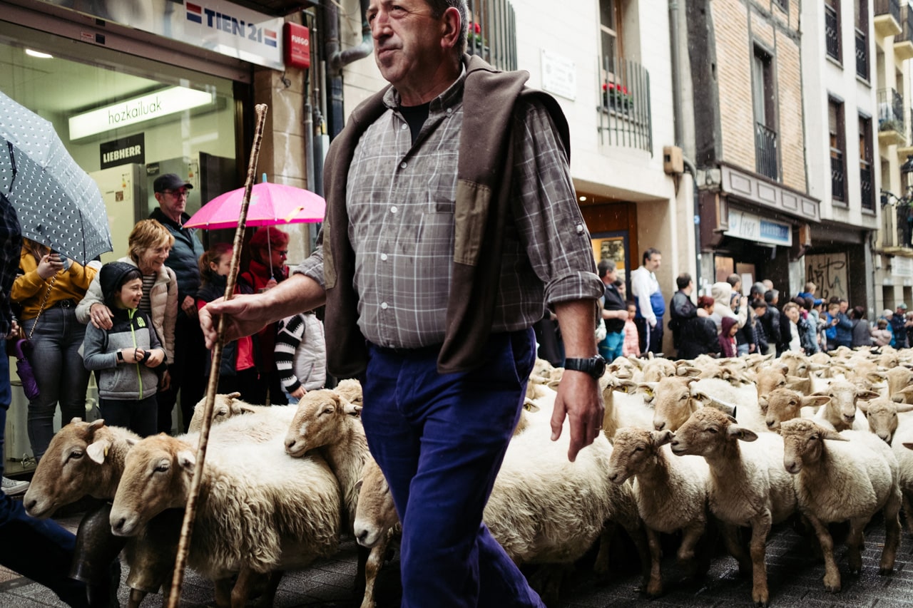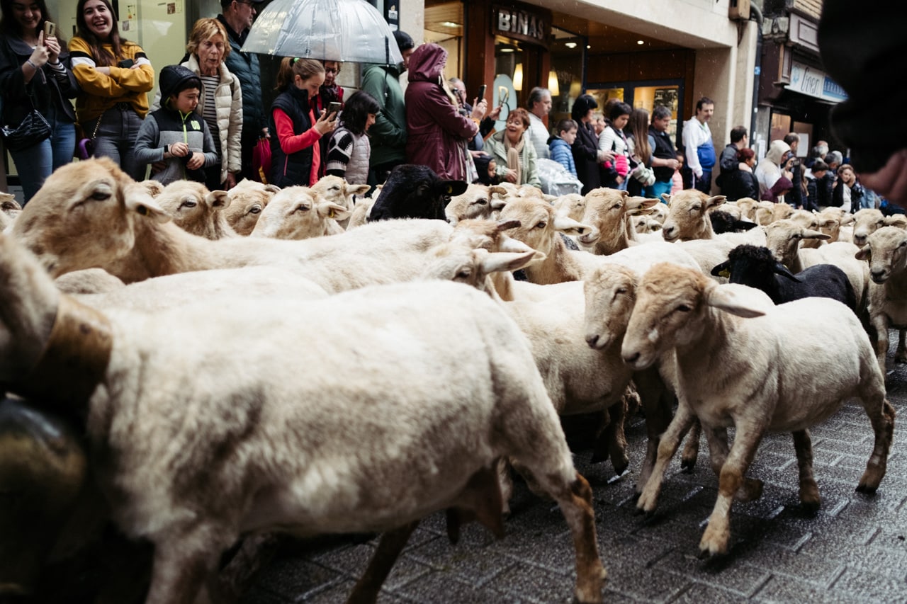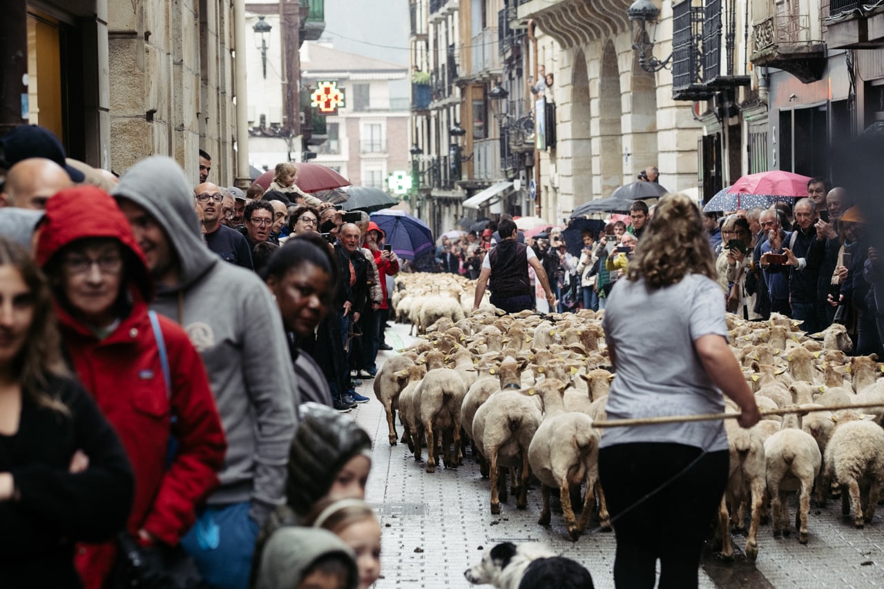 La lluvia ha molestado al público, es verdad, pero hoy Ordizia ha celebrado fiel a la tradición su Artzain Eguna y 2.000 ovejas, propiedad de cinco pastores, han pasado por el casco antiguo de la localidad gipuzkoana en recuerdo de la trashumancia.