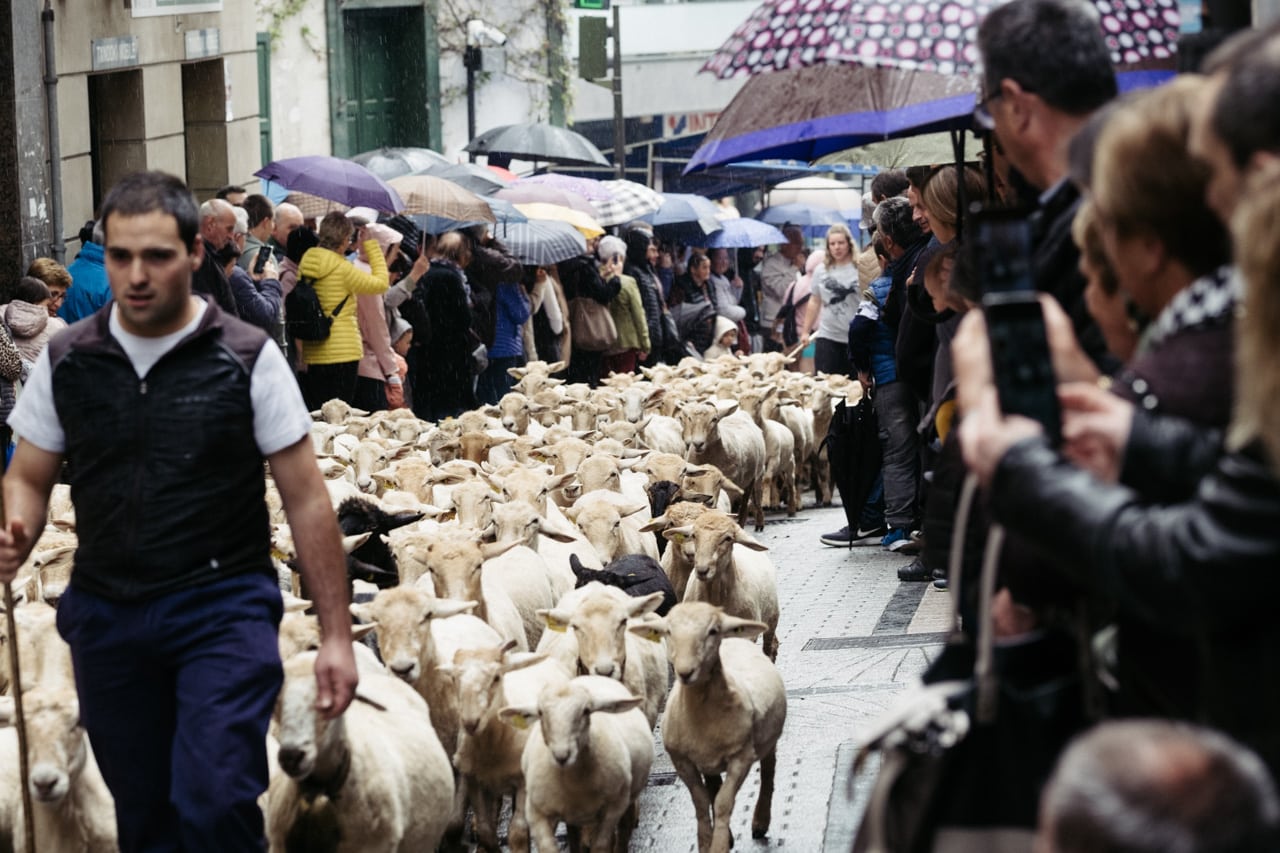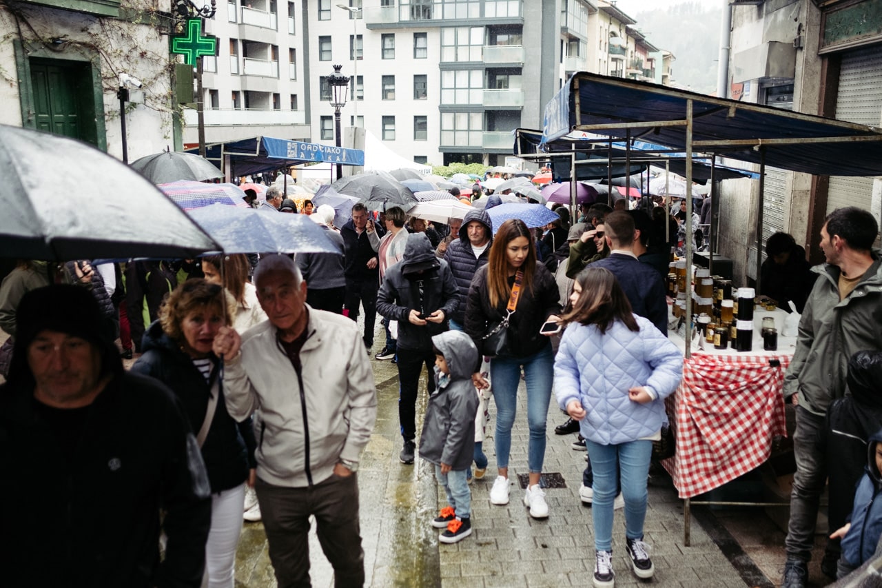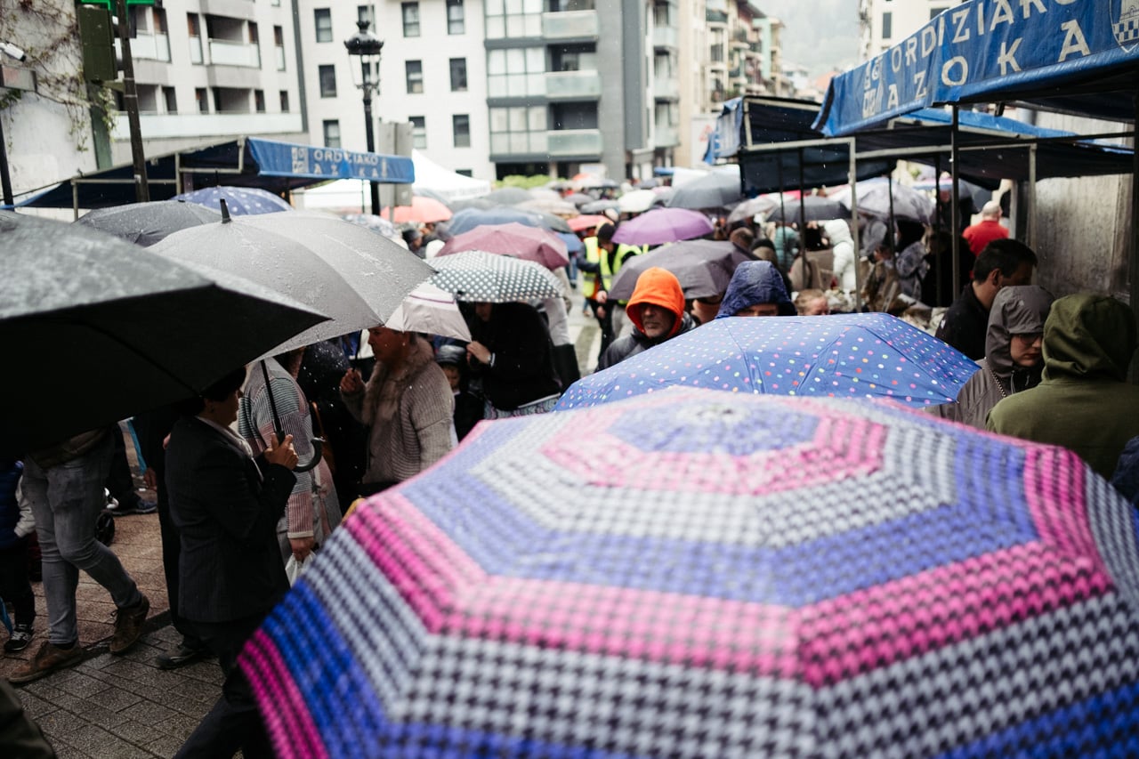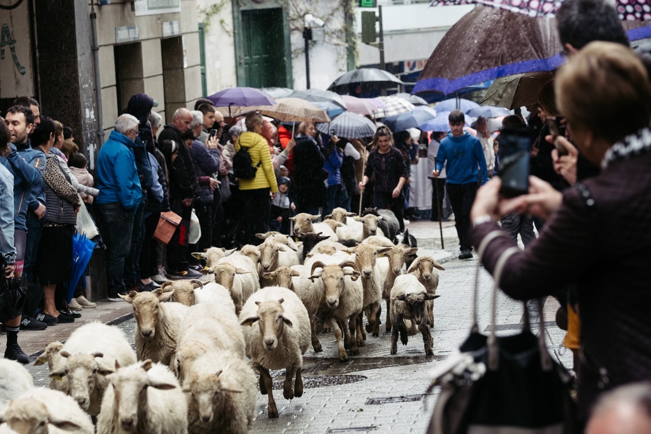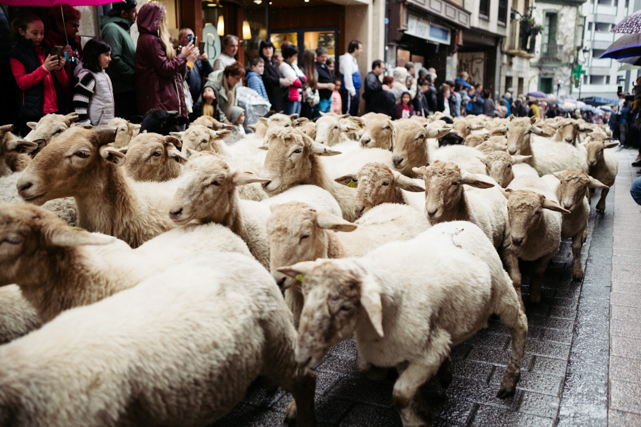 La lluvia ha molestado al público, es verdad, pero hoy Ordizia ha celebrado fiel a la tradición su Artzain Eguna y 2.000 ovejas, propiedad de cinco pastores, han pasado por el casco antiguo de la localidad gipuzkoana en recuerdo de la trashumancia.