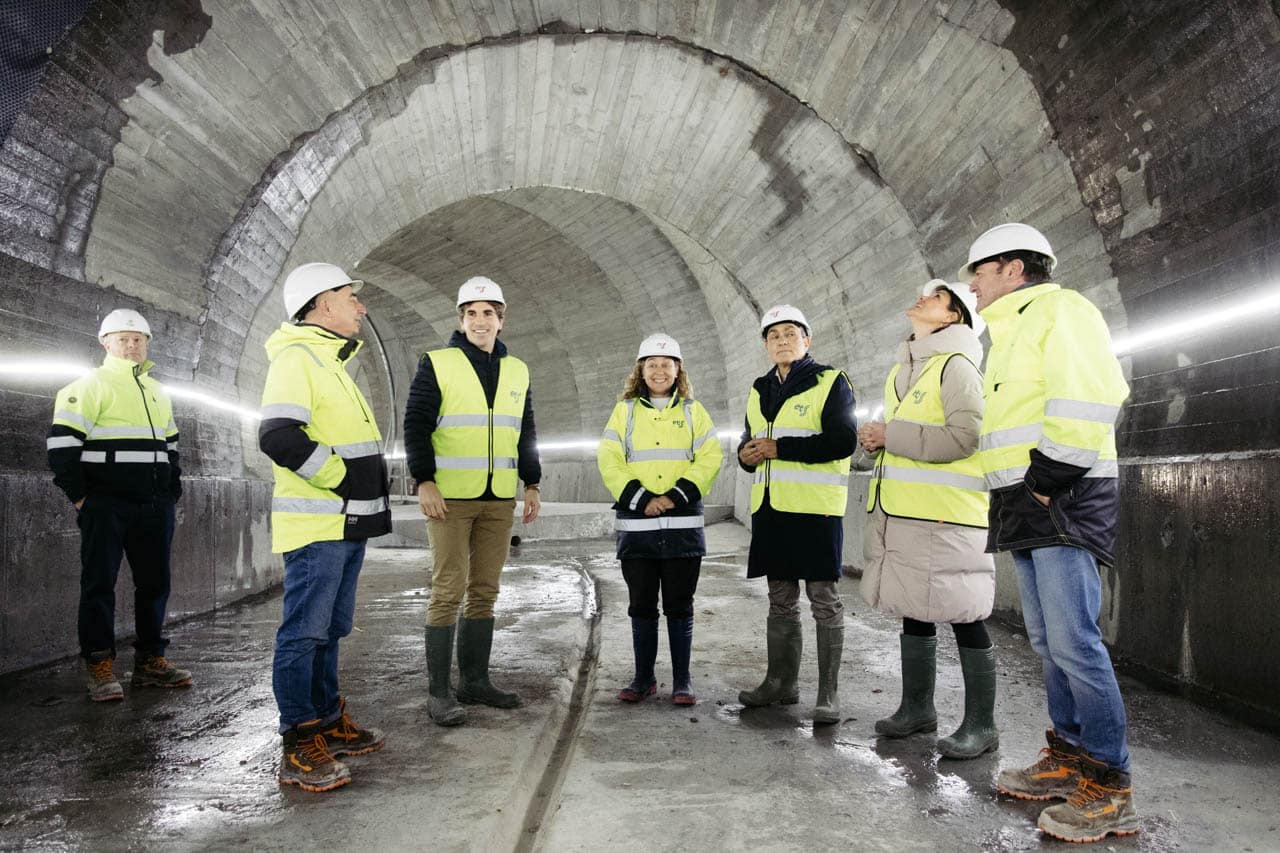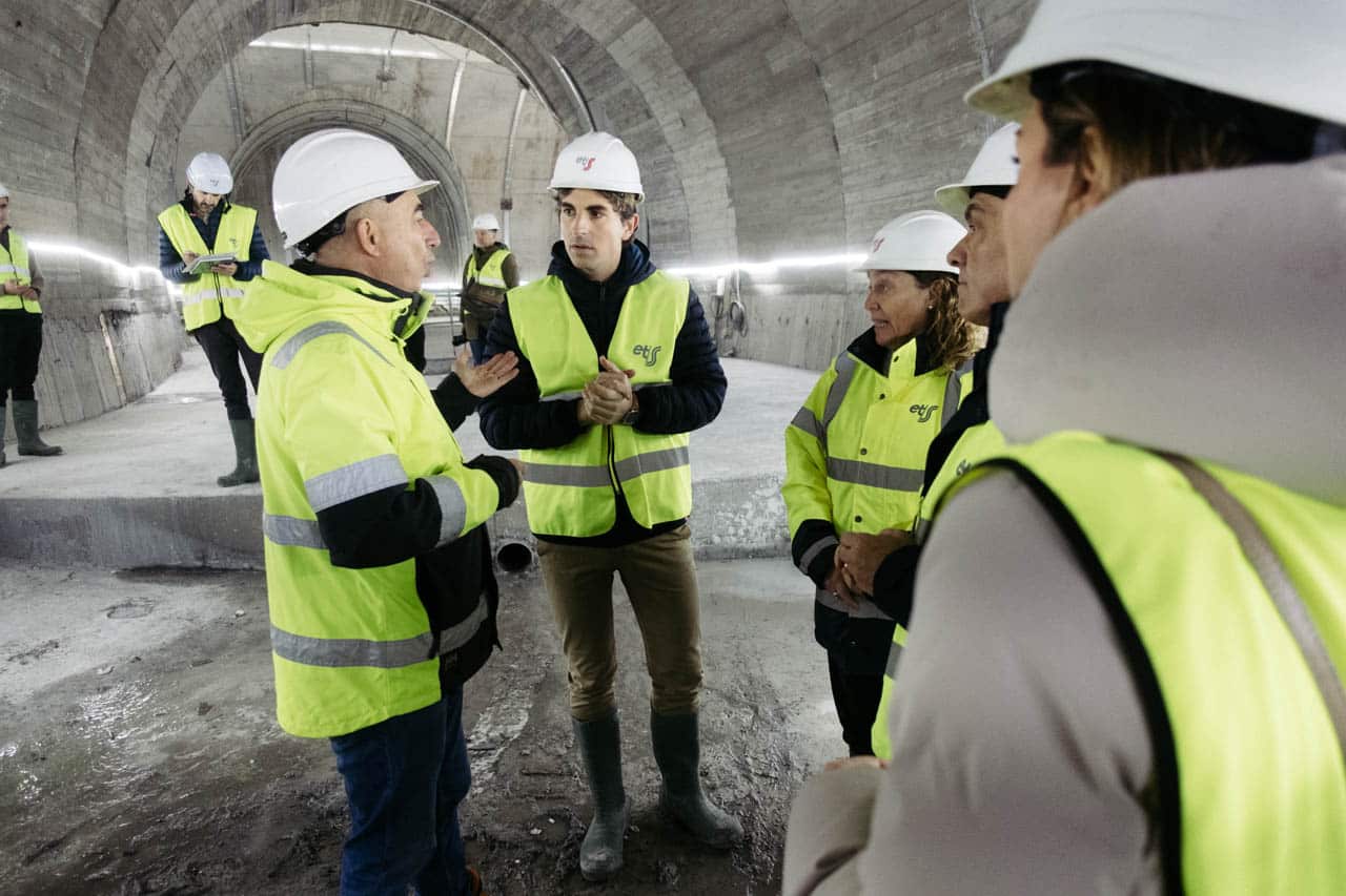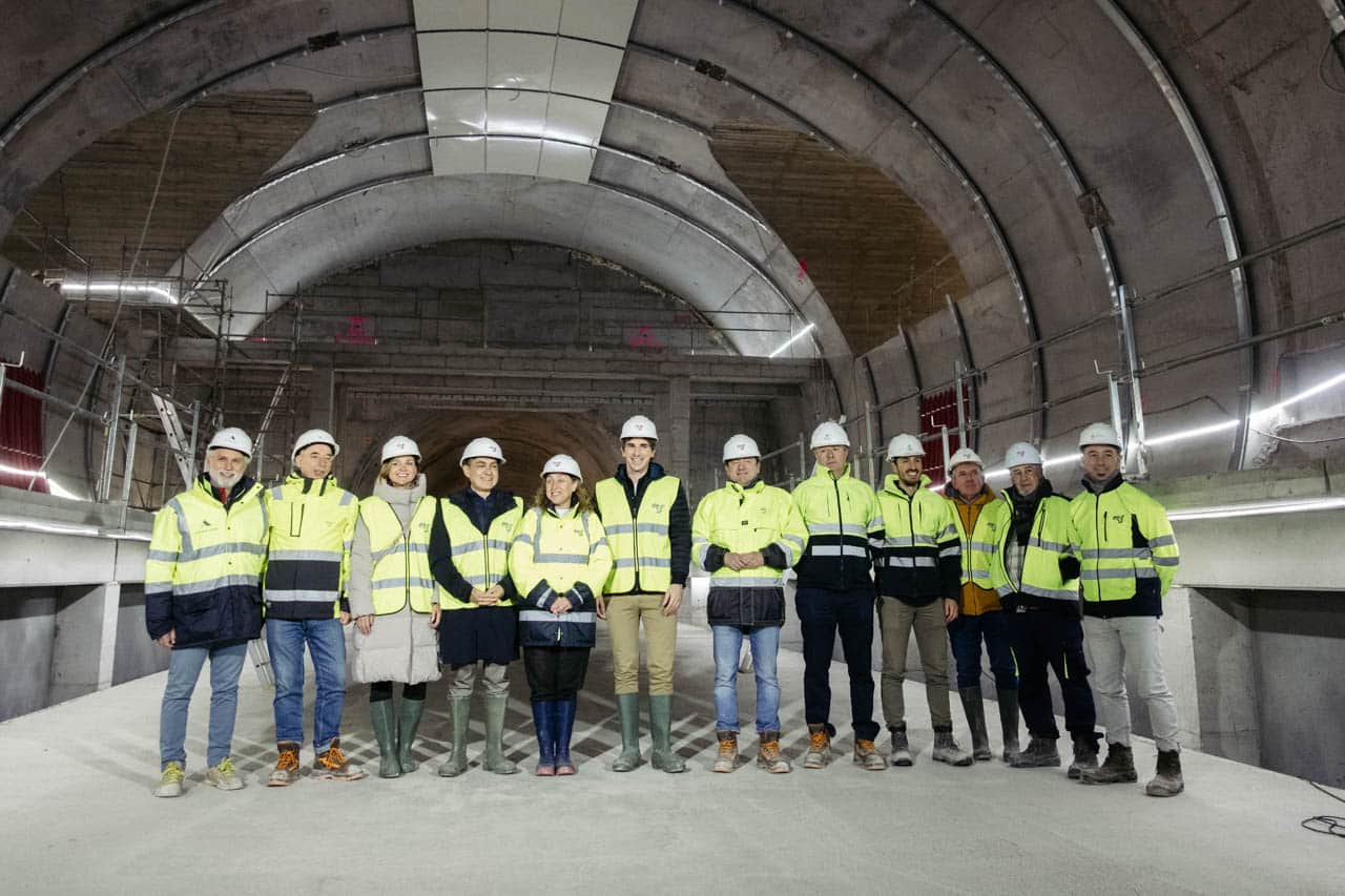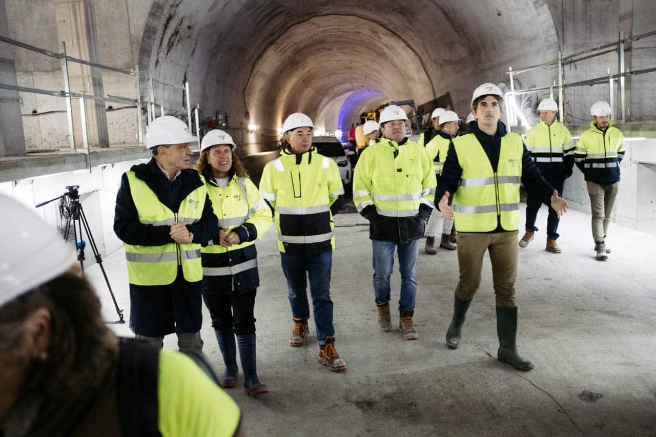 Con la caverna prácticamente abierta -casi como una sección de una infografía-, es posible apreciar las distintas partes que componen una estación en construcción. Desde uno de los andenes ya ejecutados, la comitiva ha podido observar los huecos destinados a canalizar el agua filtrada, las ventilaciones bajo andén y las comunicaciones e instalaciones propias de una infraestructura ferroviaria.