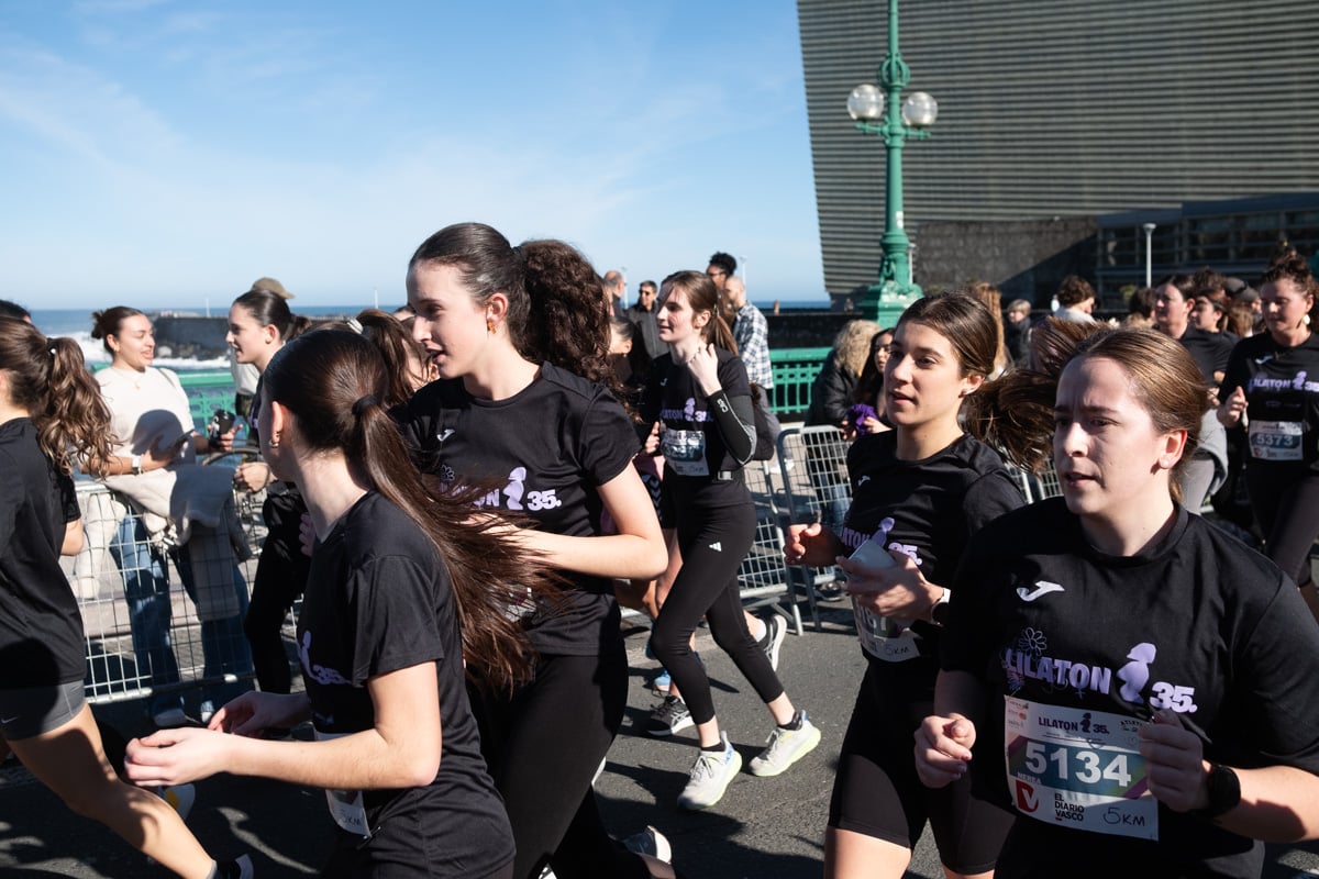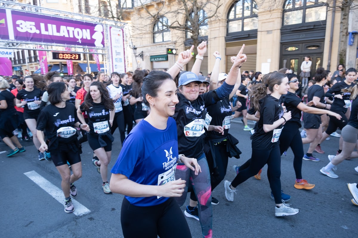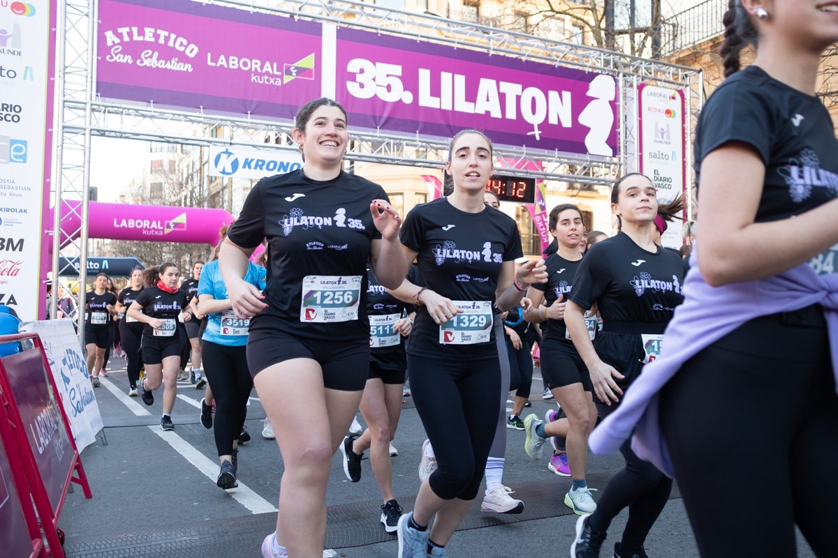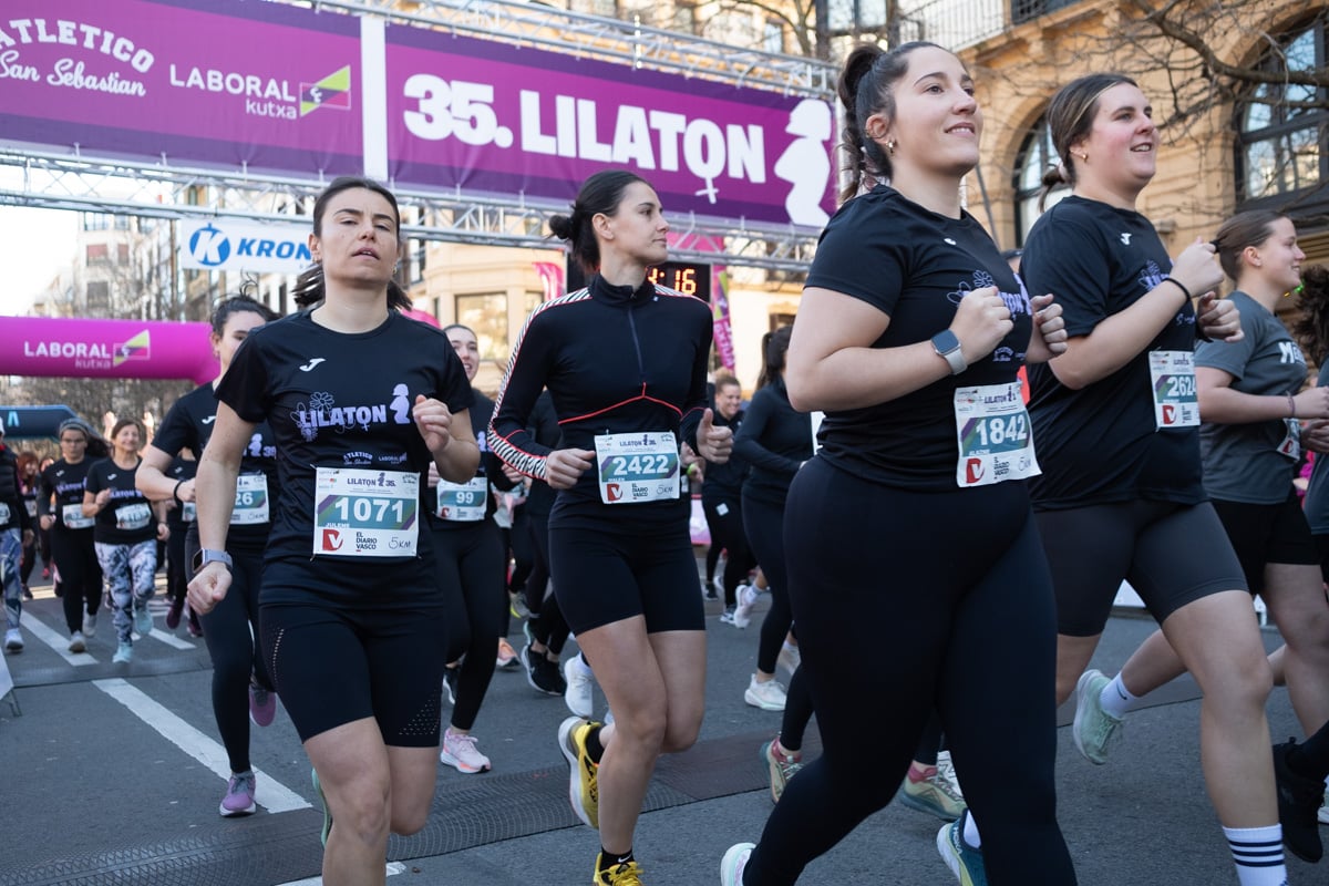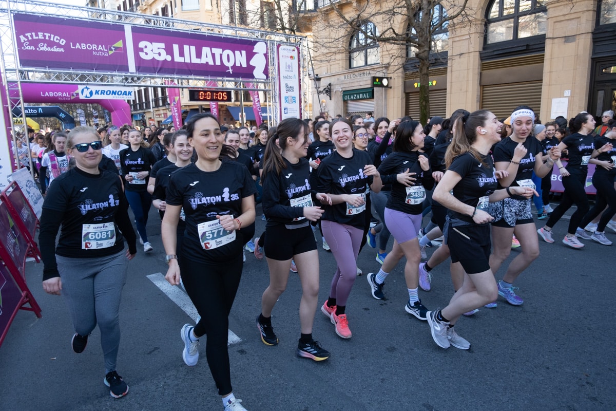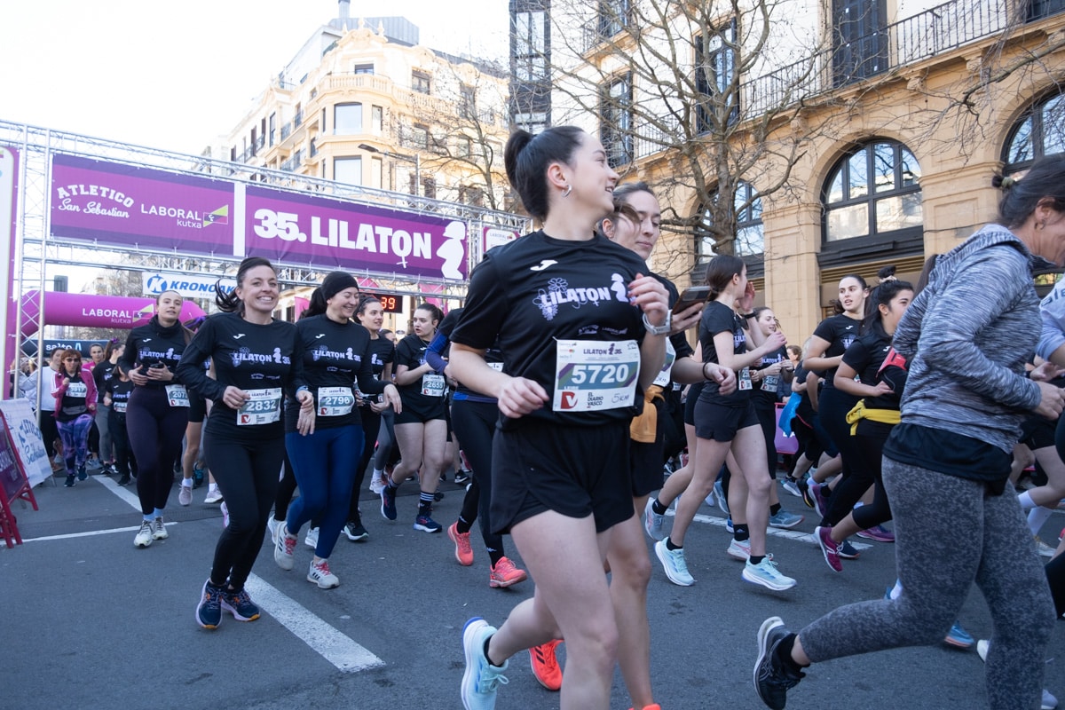 Ambientazo en una edición más, y van 35, de la Lilatón, la carrera femenina y feminista de 5 kilómetros del Club Deportivo Atlético de San Sebastian. Carrera solidaria, también, ya que un euro de cada inscripción será donado a la Asociación Contra el Cáncer de Gipuzkoa. La cita, en la que se habían inscrito 6.200 mujeres, ha comenzado con una sesión de zumba y terminará con el Lilapote.