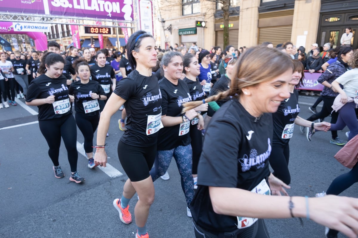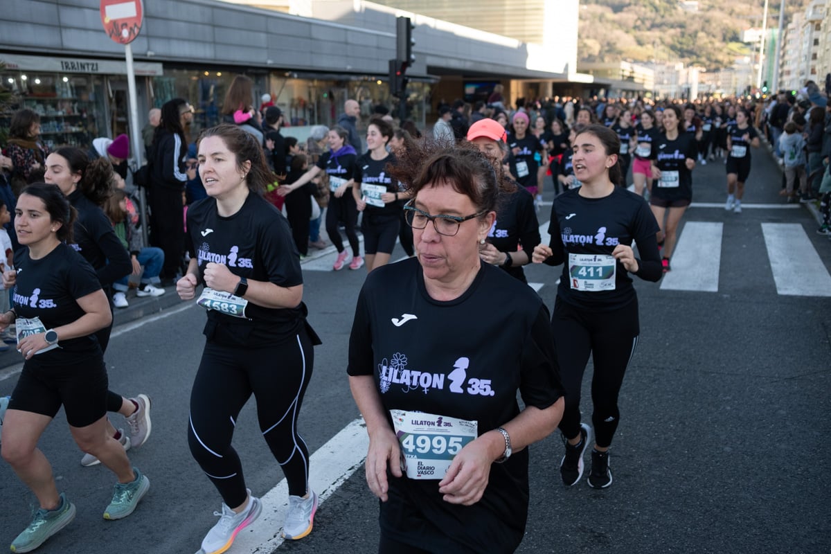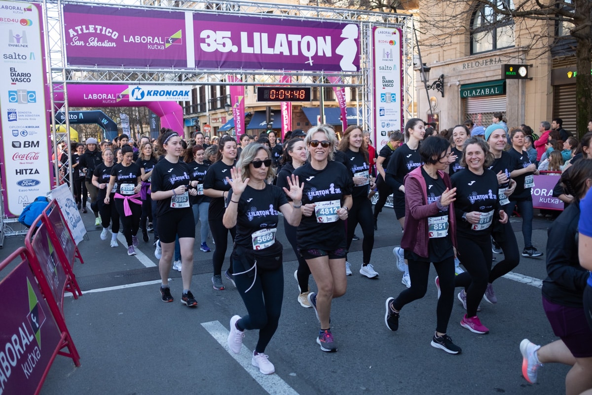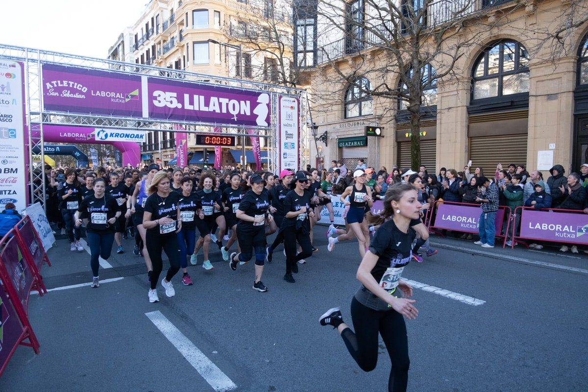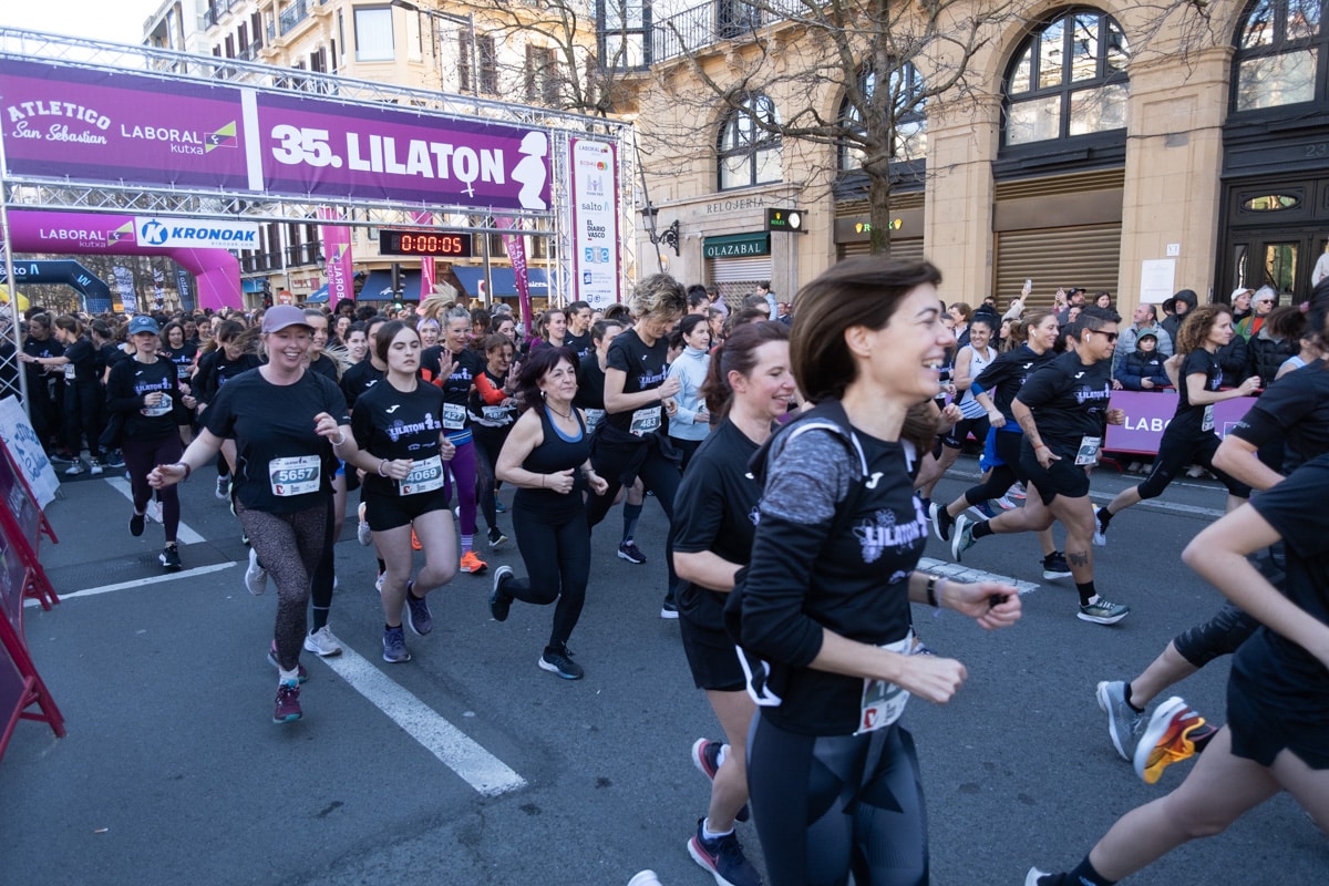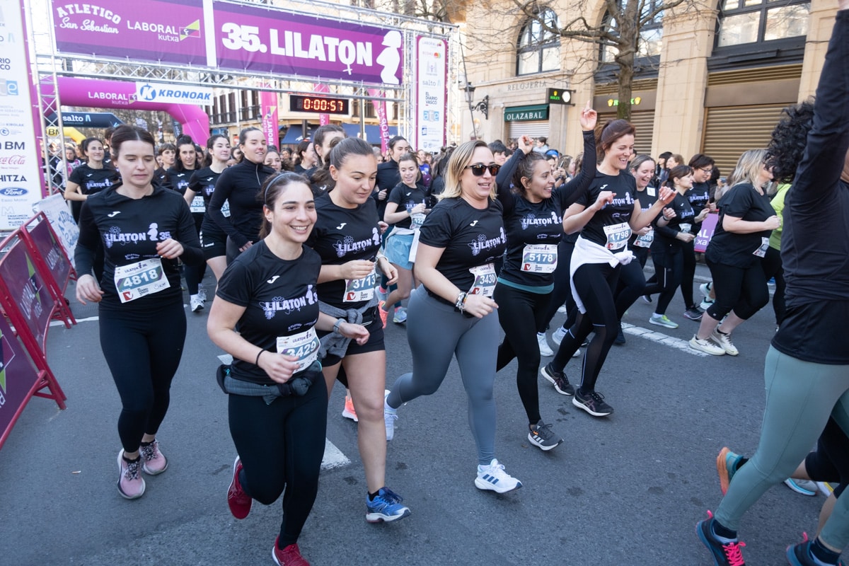 Ambientazo en una edición más, y van 35, de la Lilatón, la carrera femenina y feminista de 5 kilómetros del Club Deportivo Atlético de San Sebastian. Carrera solidaria, también, ya que un euro de cada inscripción será donado a la Asociación Contra el Cáncer de Gipuzkoa. La cita, en la que se habían inscrito 6.200 mujeres, ha comenzado con una sesión de zumba y terminará con el Lilapote.