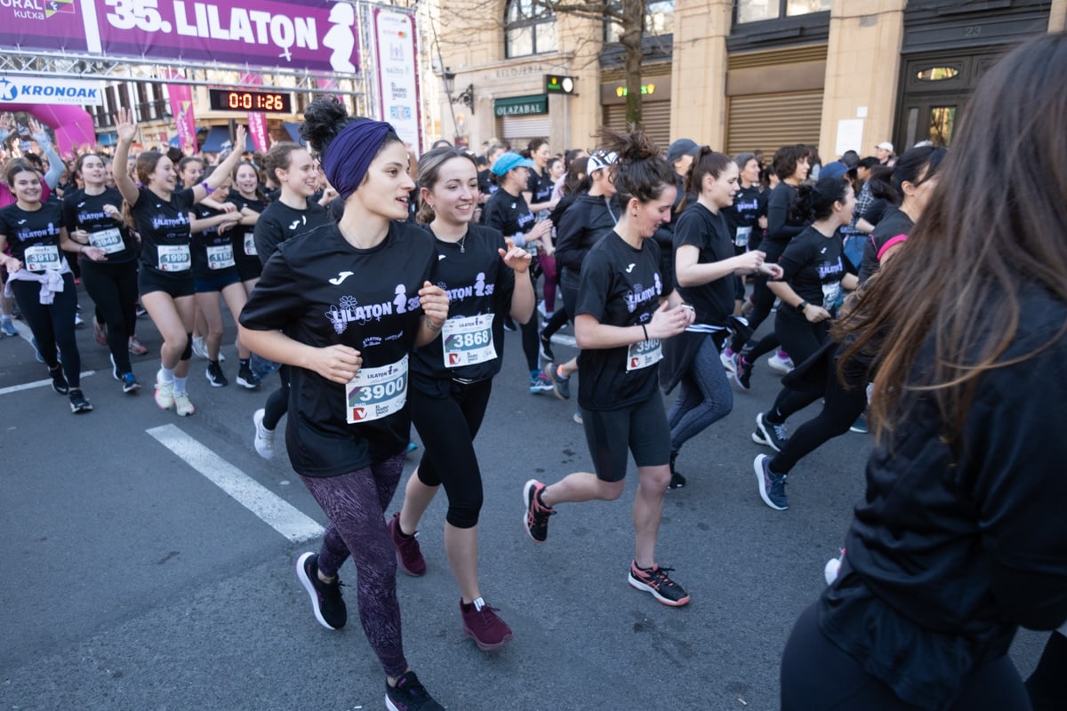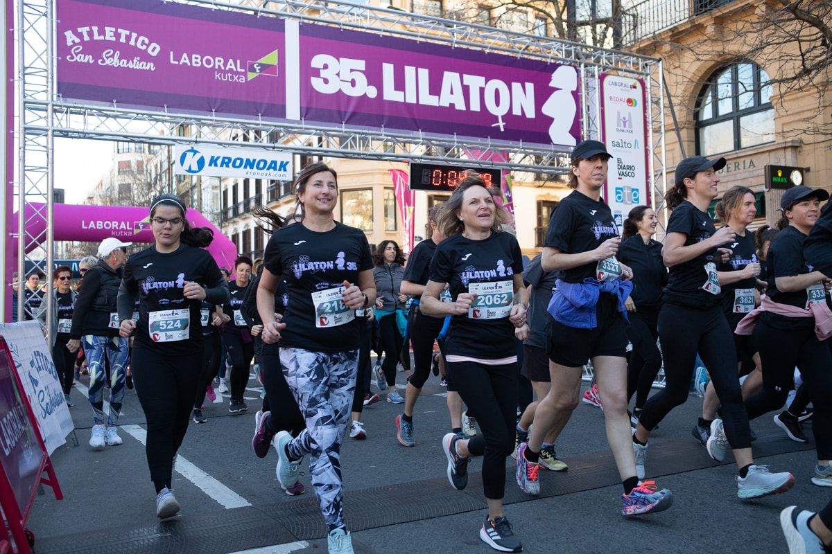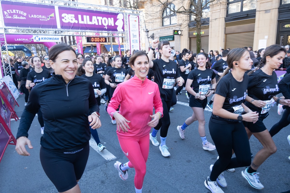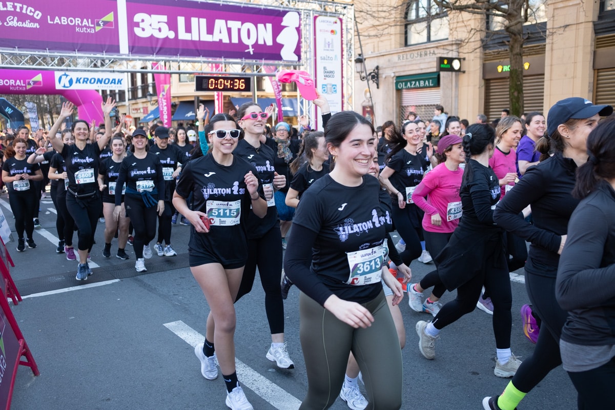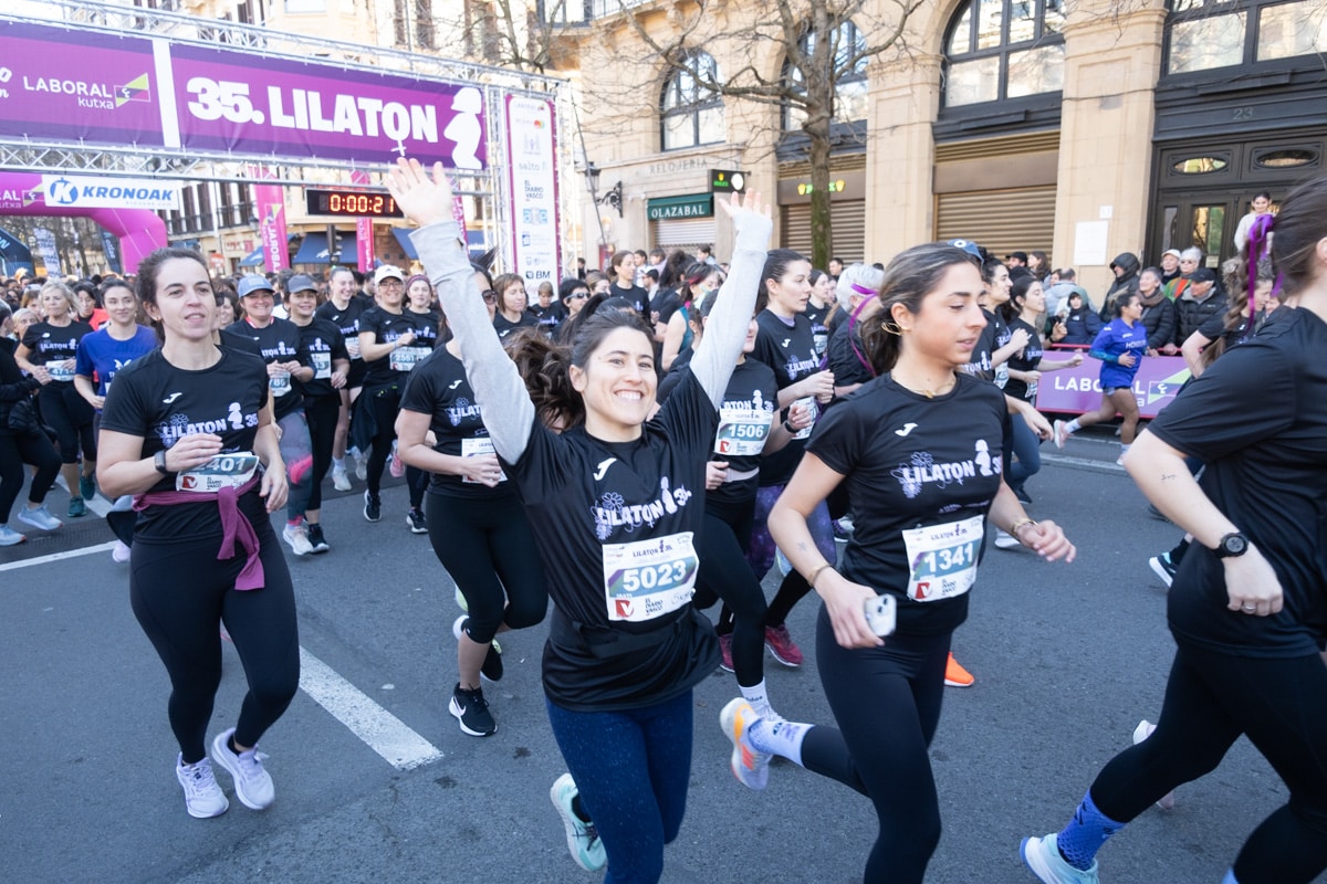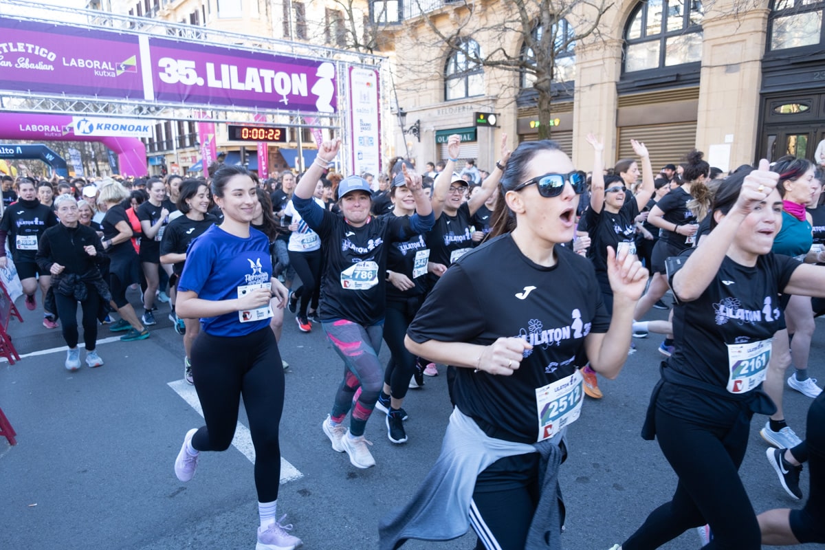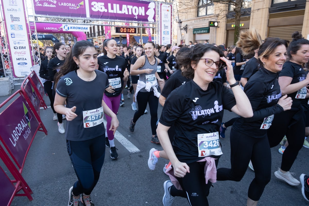 Ambientazo en una edición más, y van 35, de la Lilatón, la carrera femenina y feminista de 5 kilómetros del Club Deportivo Atlético de San Sebastian. Carrera solidaria, también, ya que un euro de cada inscripción será donado a la Asociación Contra el Cáncer de Gipuzkoa. La cita, en la que se habían inscrito 6.200 mujeres, ha comenzado con una sesión de zumba y terminará con el Lilapote.