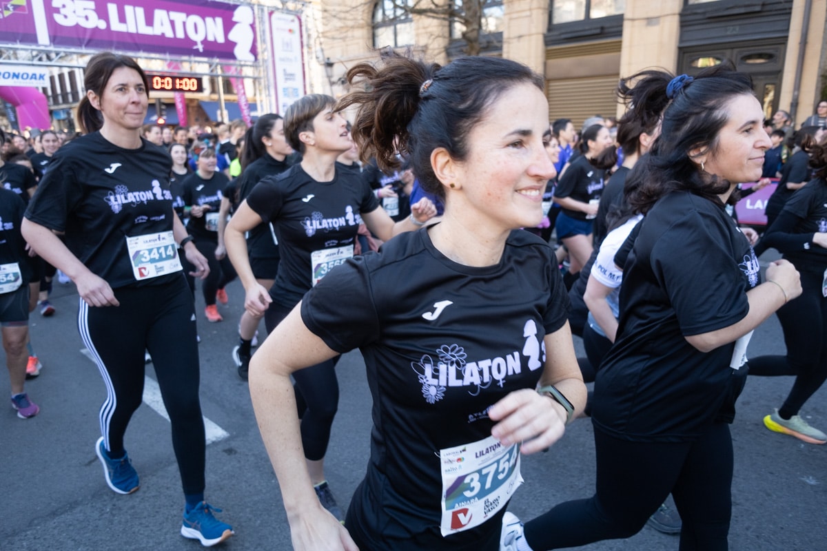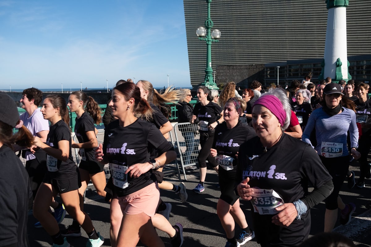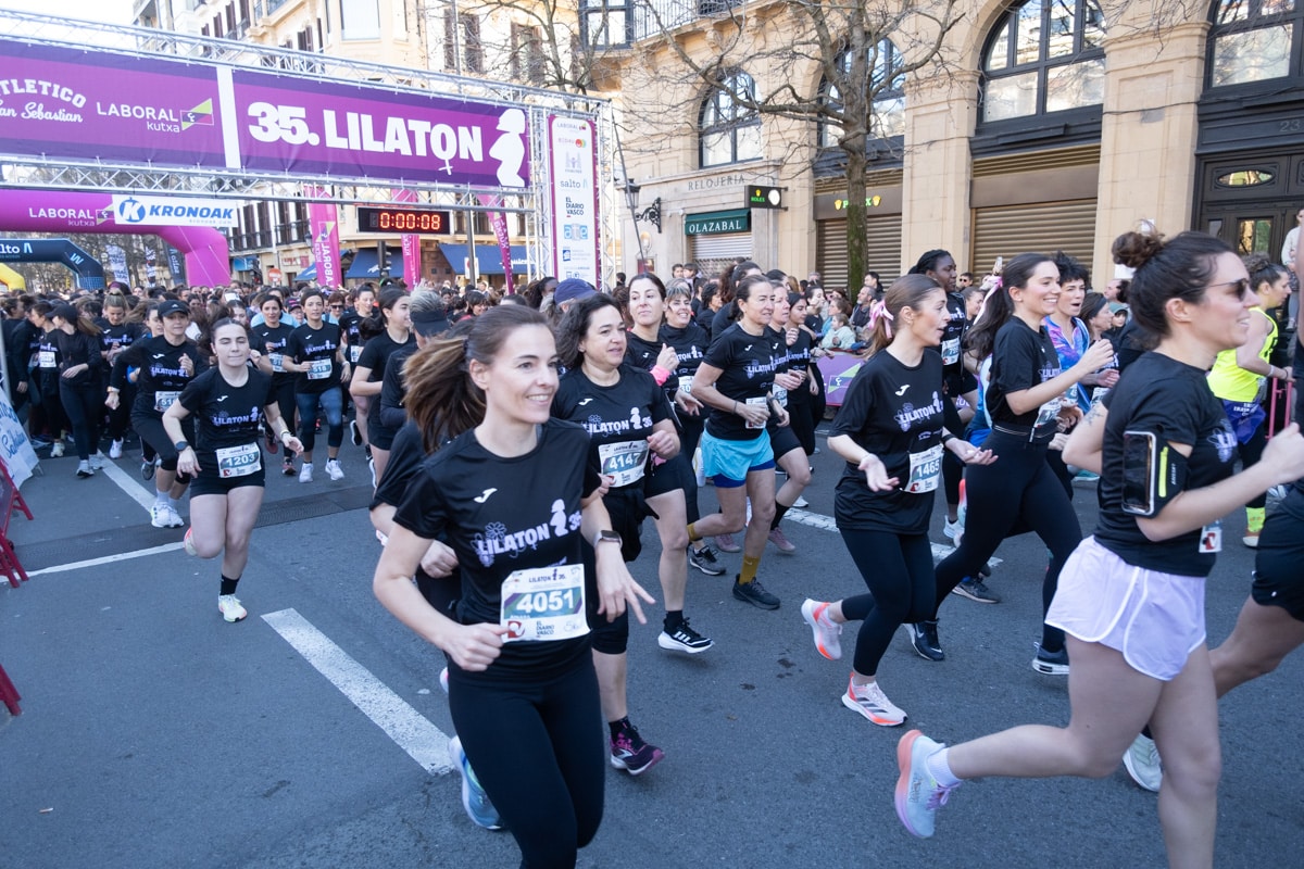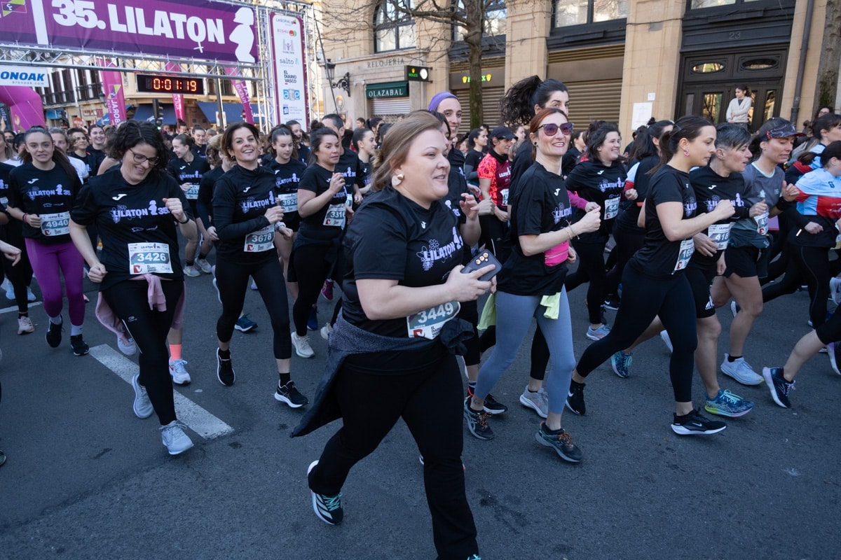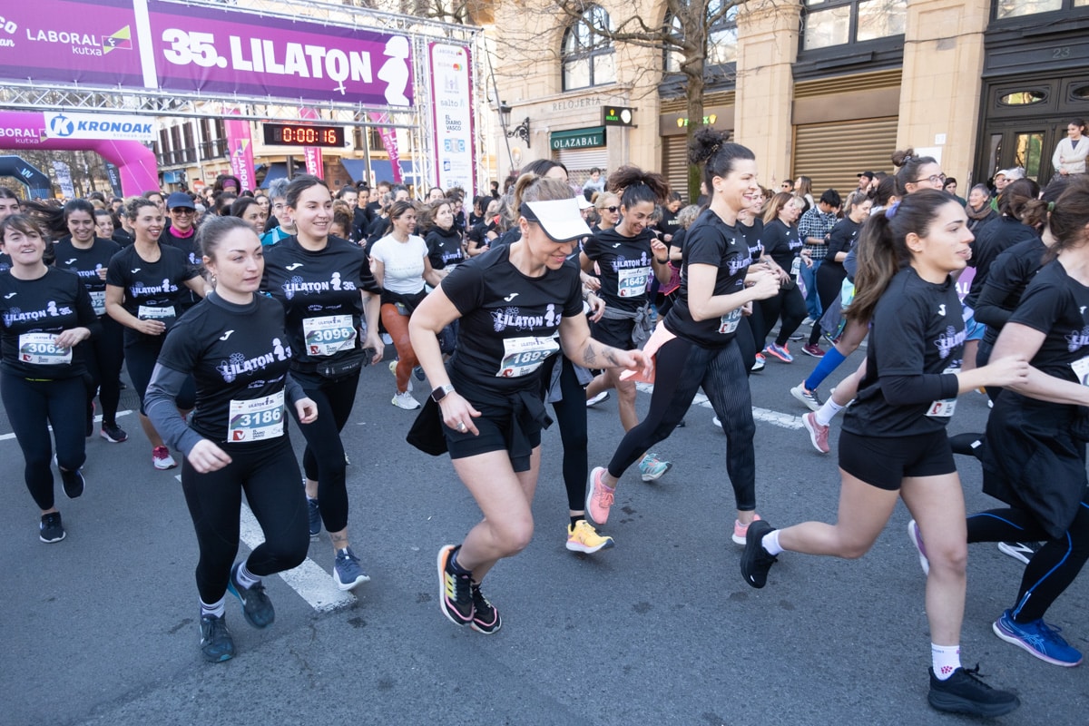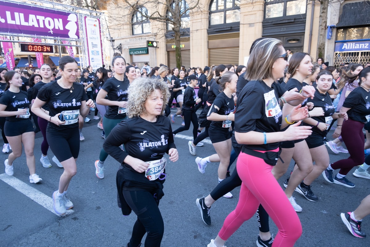 Ambientazo en una edición más, y van 35, de la Lilatón, la carrera femenina y feminista de 5 kilómetros del Club Deportivo Atlético de San Sebastian. Carrera solidaria, también, ya que un euro de cada inscripción será donado a la Asociación Contra el Cáncer de Gipuzkoa. La cita, en la que se habían inscrito 6.200 mujeres, ha comenzado con una sesión de zumba y terminará con el Lilapote.
