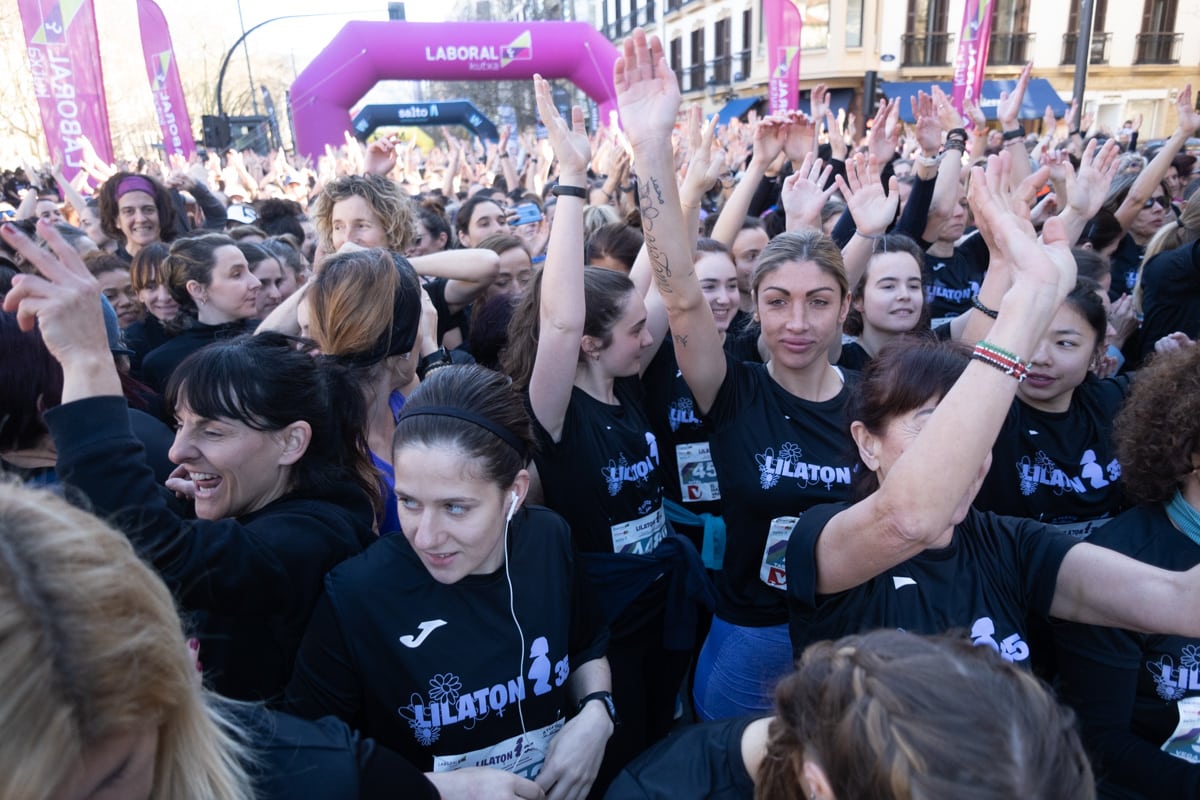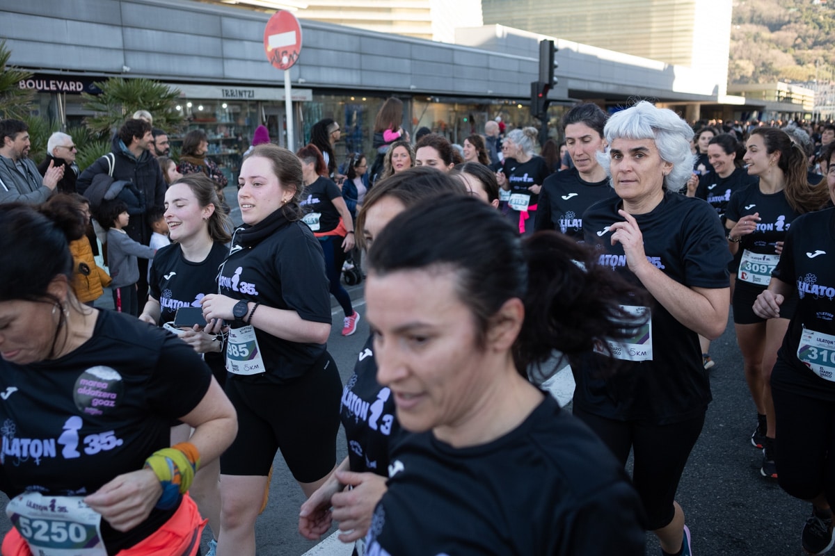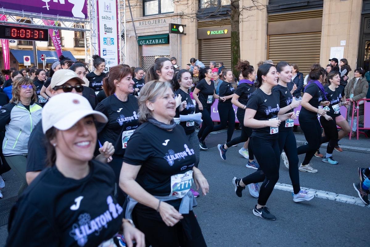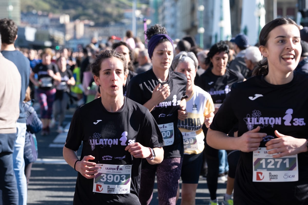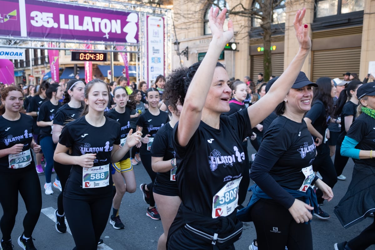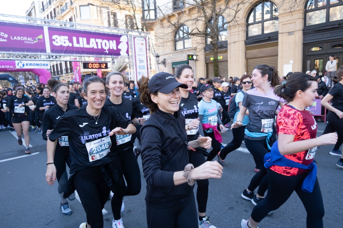 Ambientazo en una edición más, y van 35, de la Lilatón, la carrera femenina y feminista de 5 kilómetros del Club Deportivo Atlético de San Sebastian. Carrera solidaria, también, ya que un euro de cada inscripción será donado a la Asociación Contra el Cáncer de Gipuzkoa. La cita, en la que se habían inscrito 6.200 mujeres, ha comenzado con una sesión de zumba y terminará con el Lilapote.