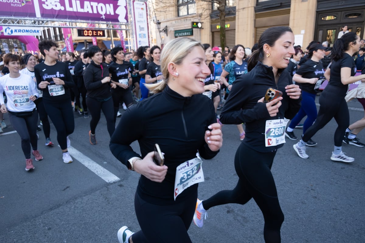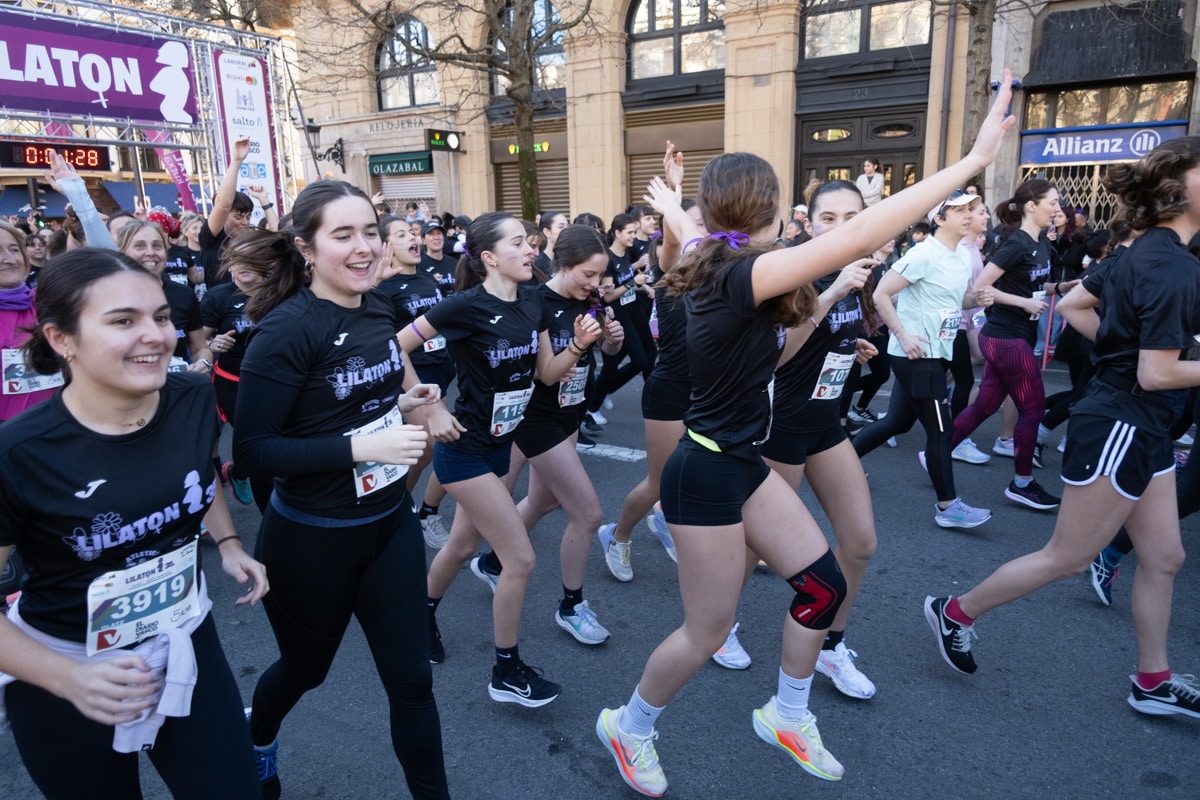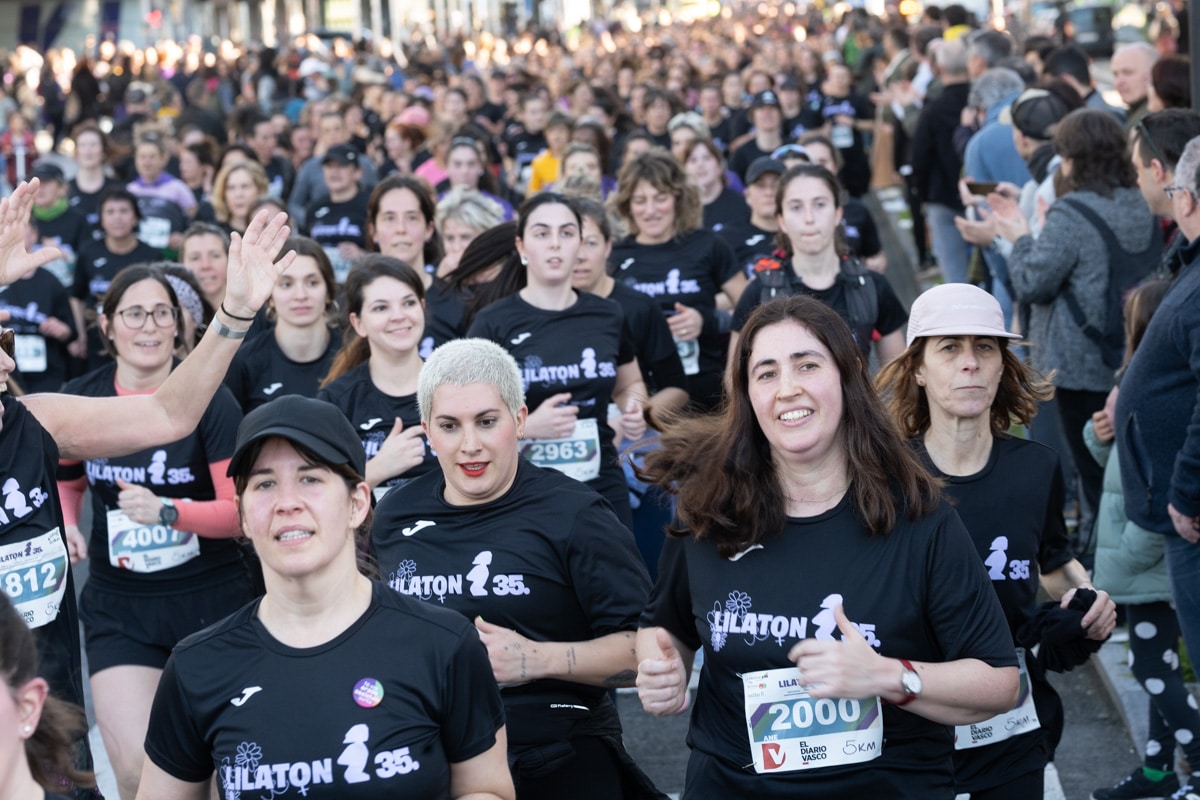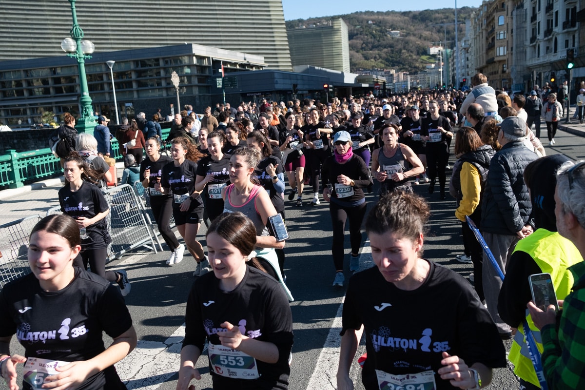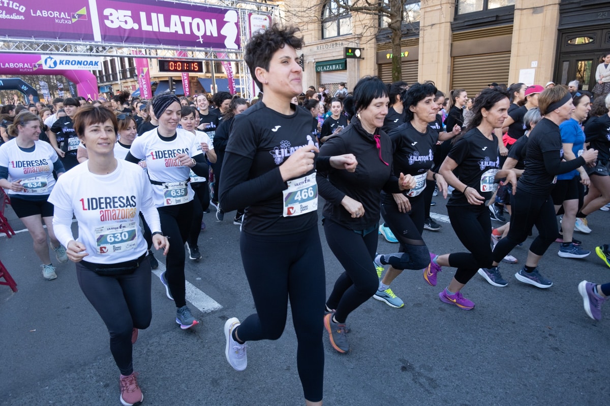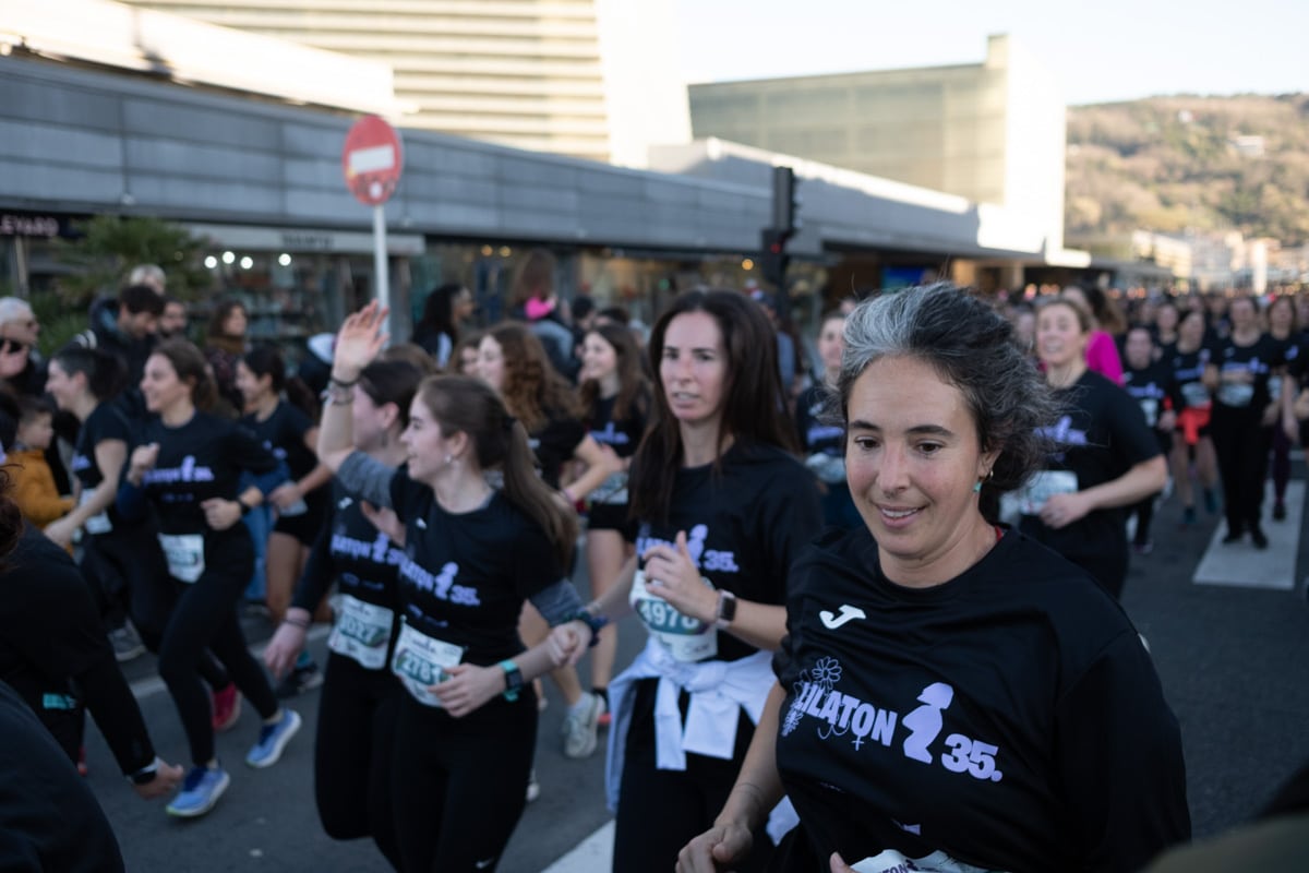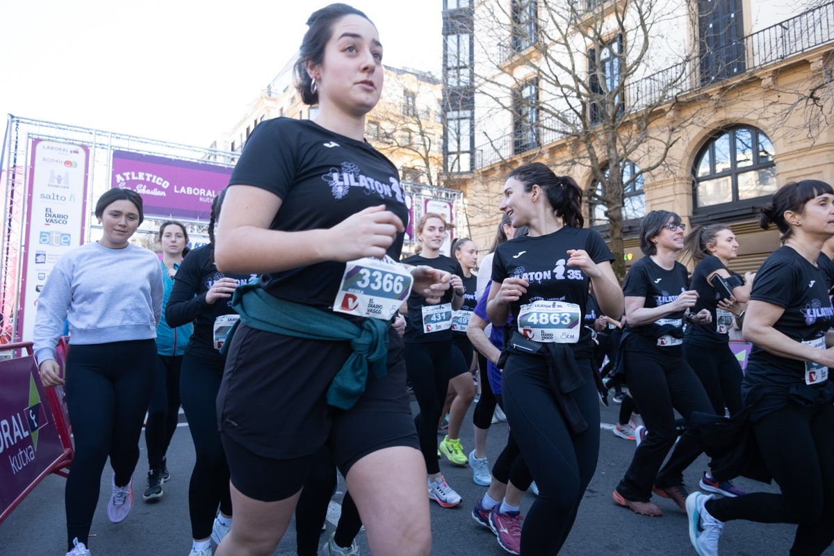 Ambientazo en una edición más, y van 35, de la Lilatón, la carrera femenina y feminista de 5 kilómetros del Club Deportivo Atlético de San Sebastian. Carrera solidaria, también, ya que un euro de cada inscripción será donado a la Asociación Contra el Cáncer de Gipuzkoa. La cita, en la que se habían inscrito 6.200 mujeres, ha comenzado con una sesión de zumba y terminará con el Lilapote.