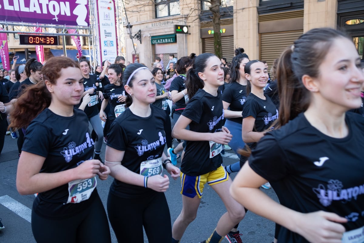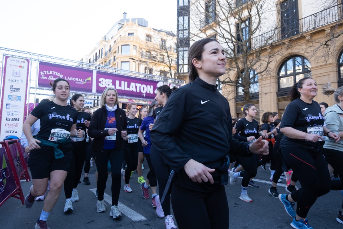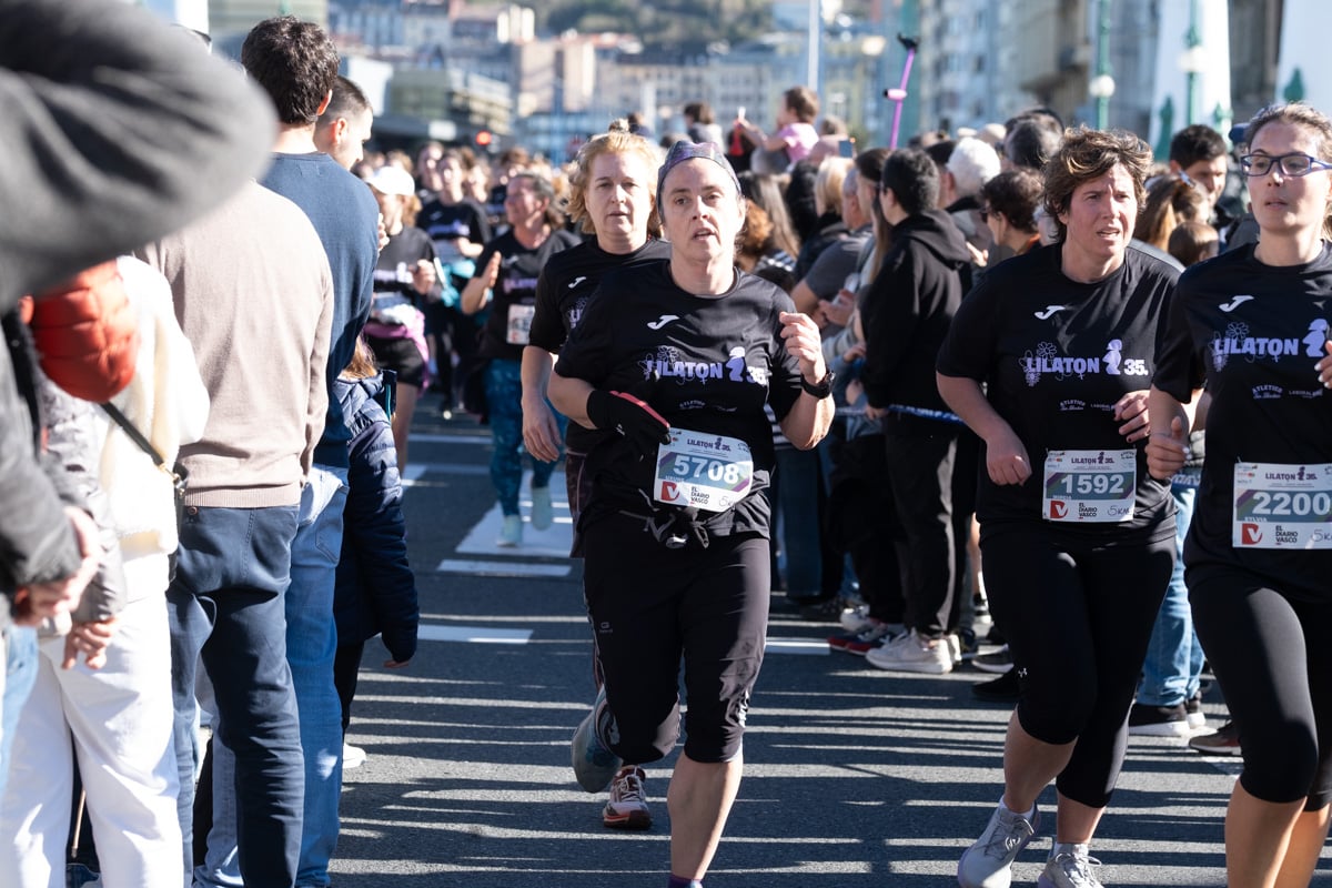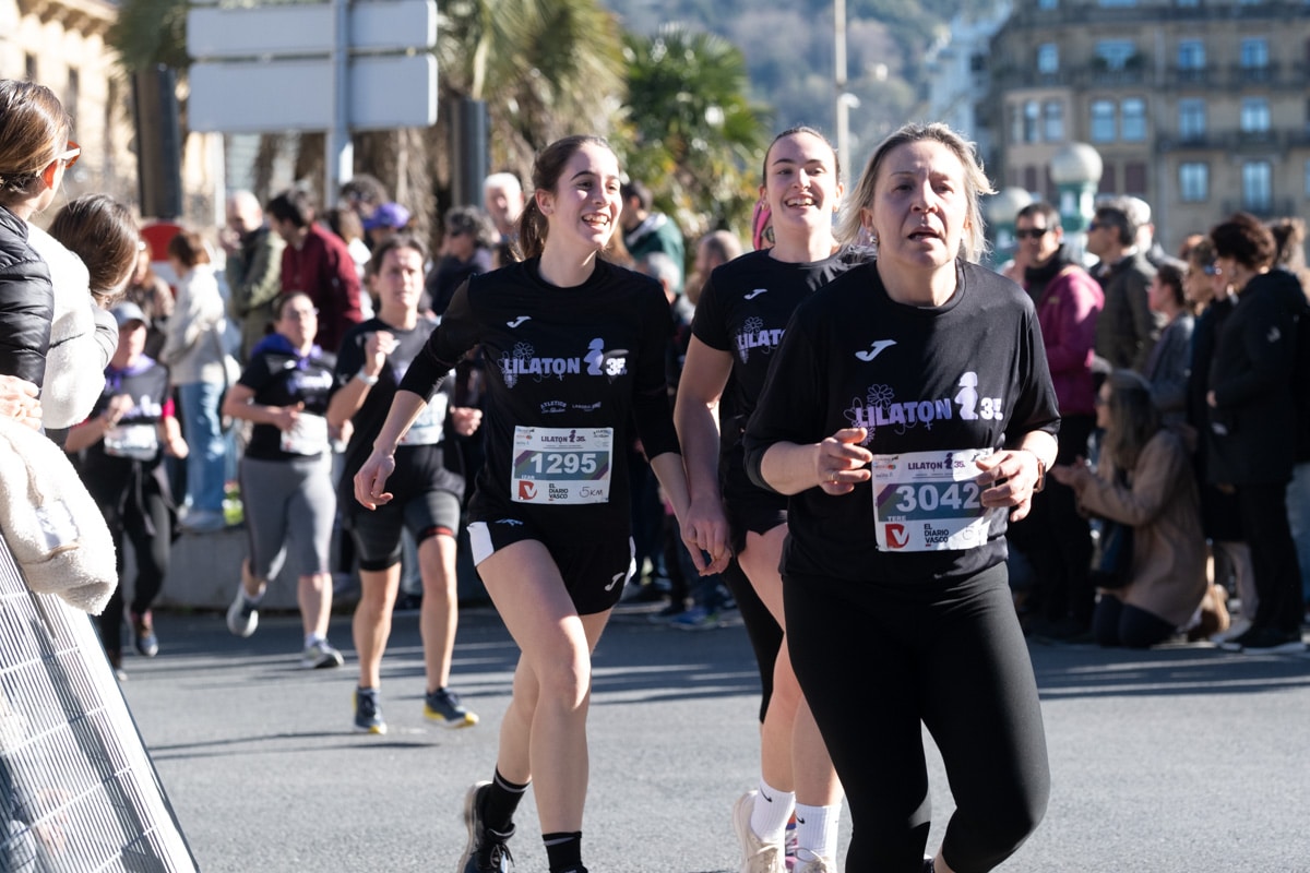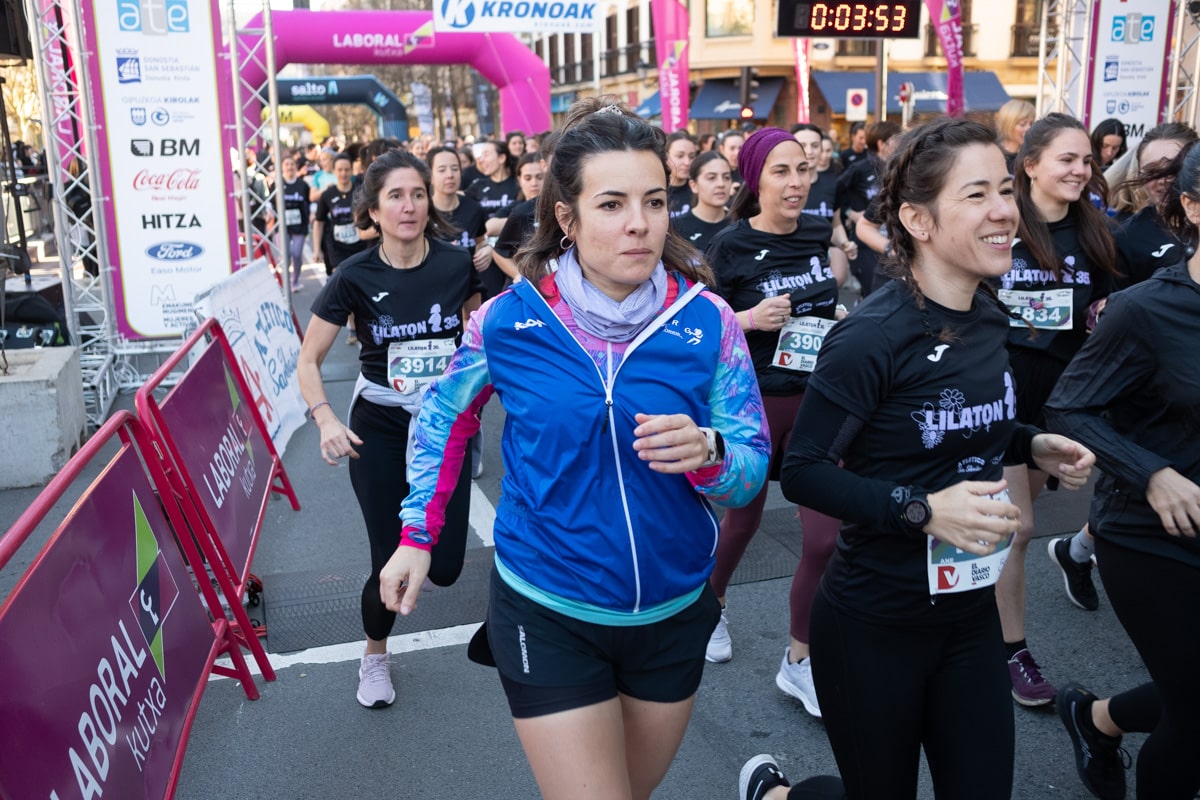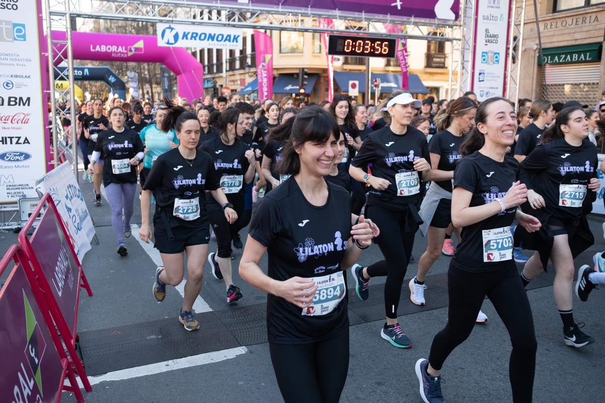 Ambientazo en una edición más, y van 35, de la Lilatón, la carrera femenina y feminista de 5 kilómetros del Club Deportivo Atlético de San Sebastian. Carrera solidaria, también, ya que un euro de cada inscripción será donado a la Asociación Contra el Cáncer de Gipuzkoa. La cita, en la que se habían inscrito 6.200 mujeres, ha comenzado con una sesión de zumba y terminará con el Lilapote.