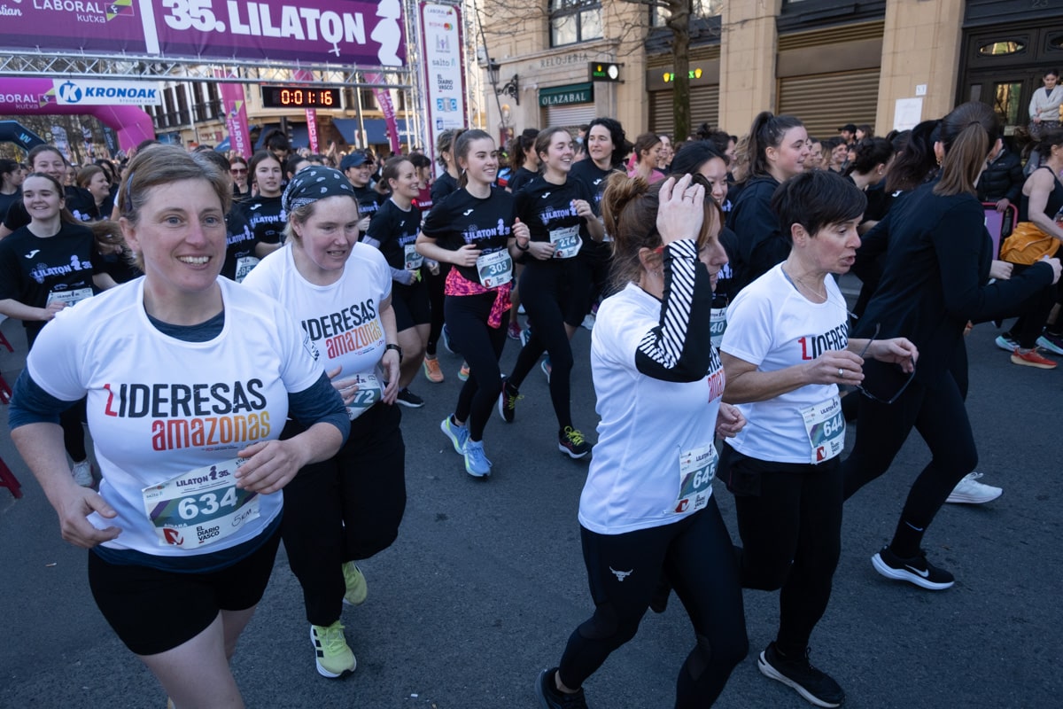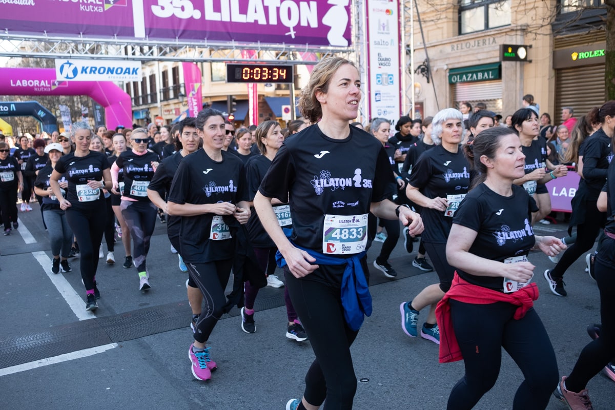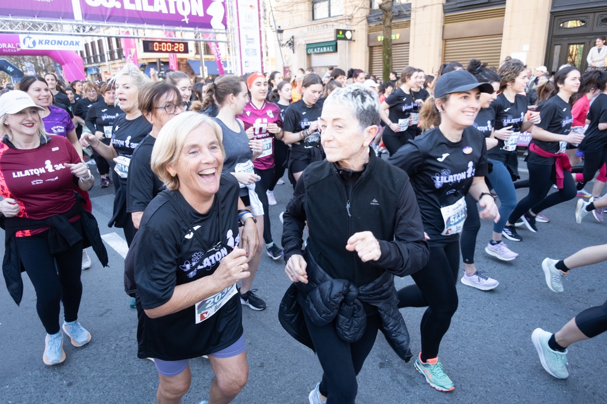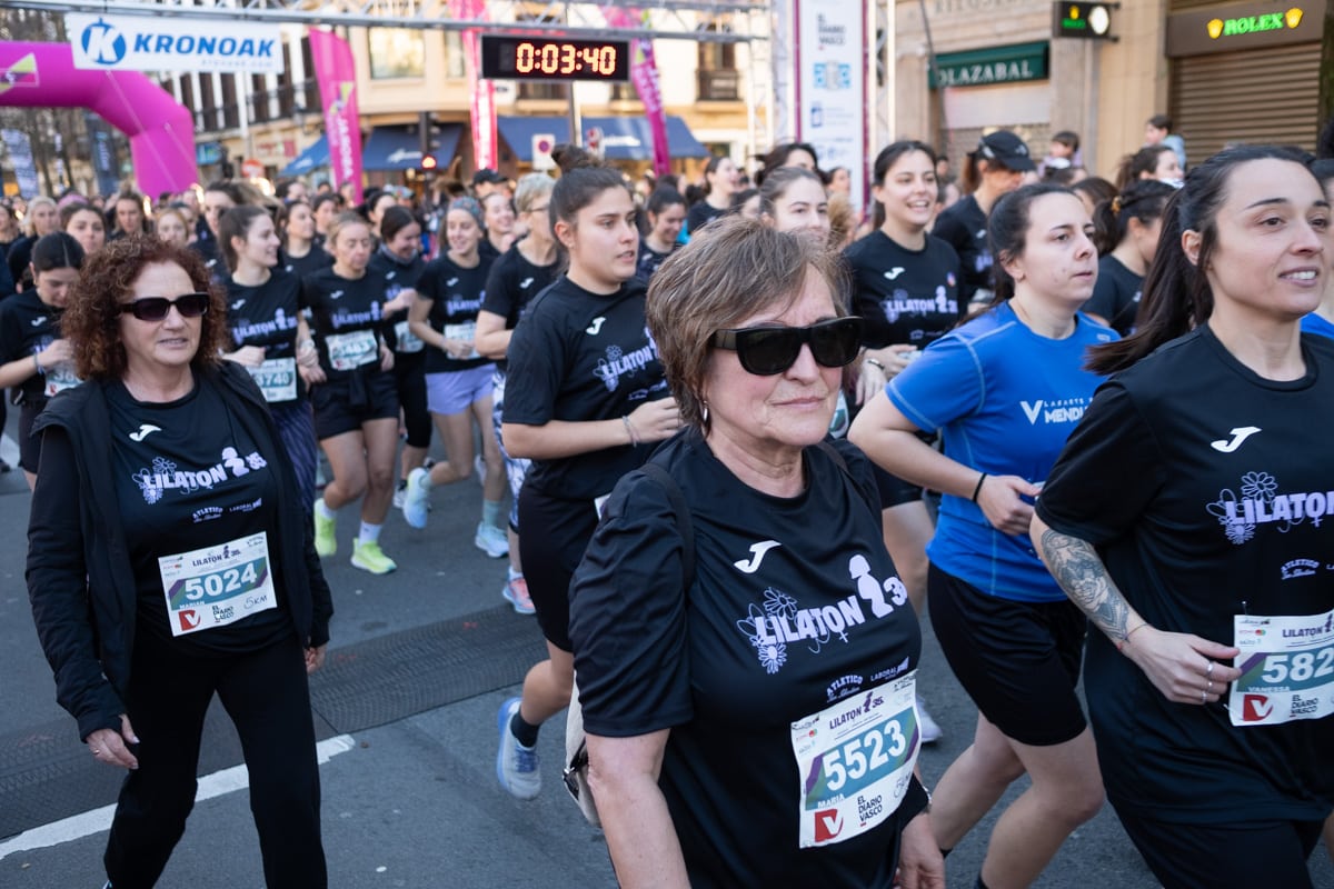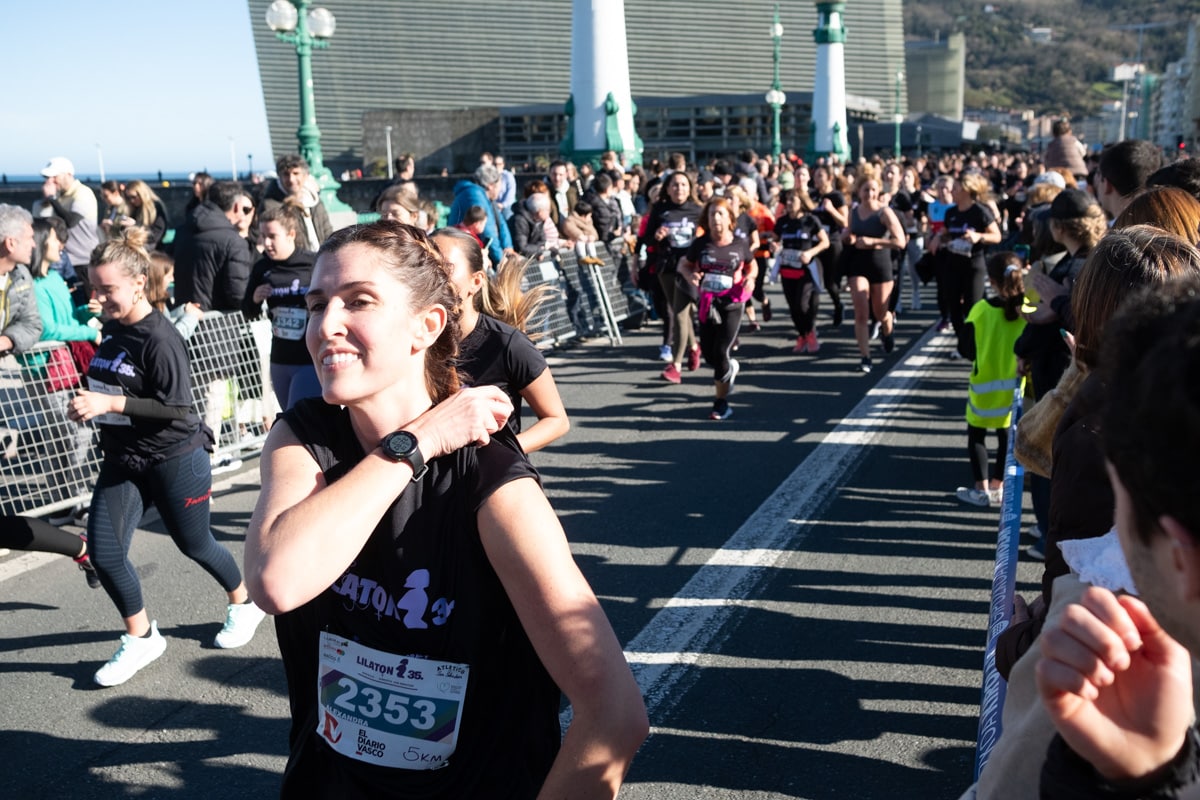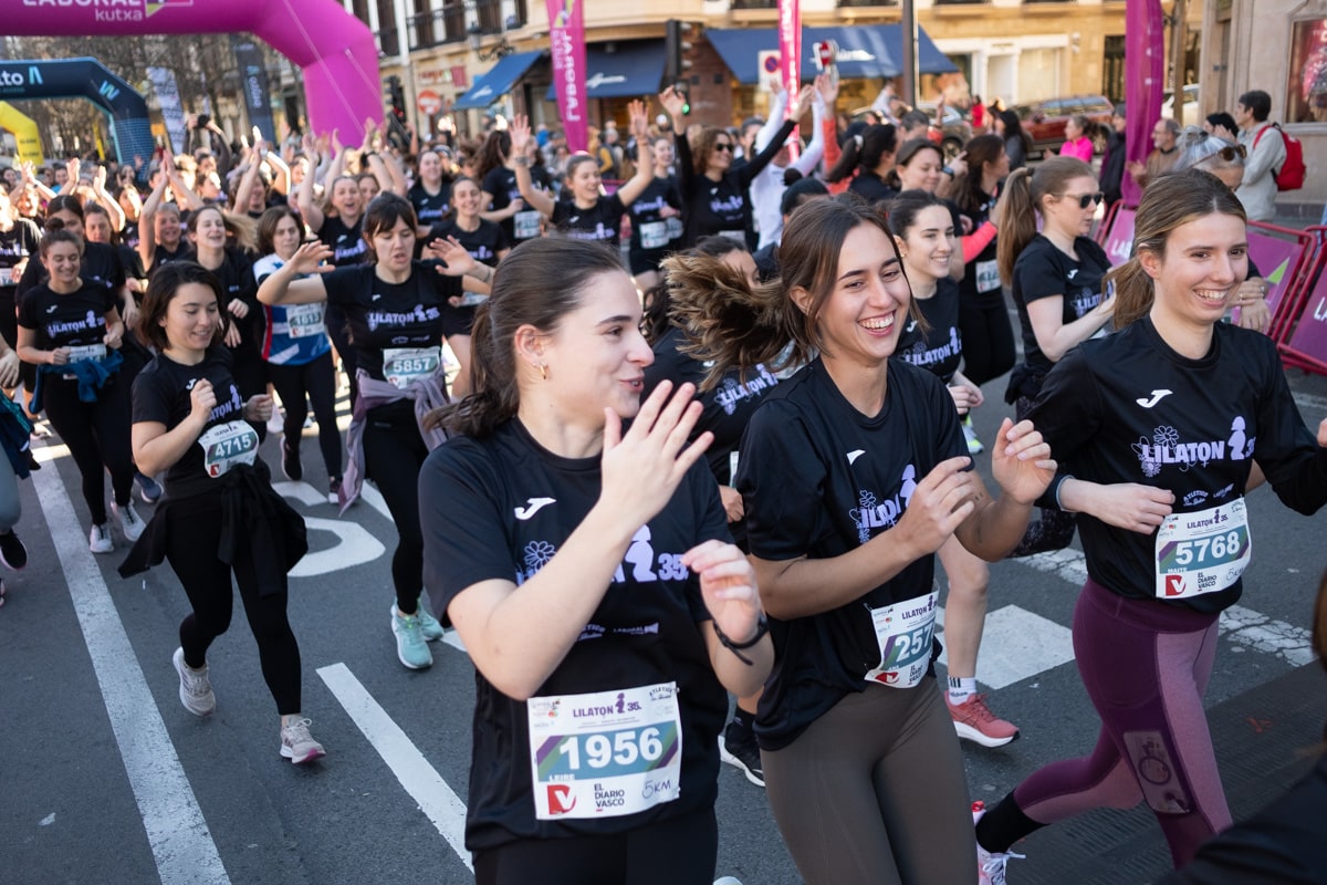 Ambientazo en una edición más, y van 35, de la Lilatón, la carrera femenina y feminista de 5 kilómetros del Club Deportivo Atlético de San Sebastian. Carrera solidaria, también, ya que un euro de cada inscripción será donado a la Asociación Contra el Cáncer de Gipuzkoa. La cita, en la que se habían inscrito 6.200 mujeres, ha comenzado con una sesión de zumba y terminará con el Lilapote.