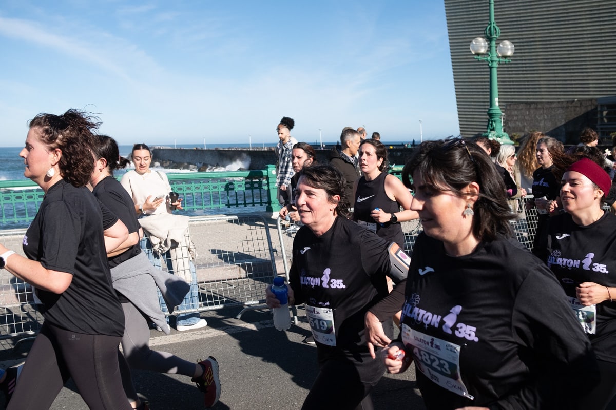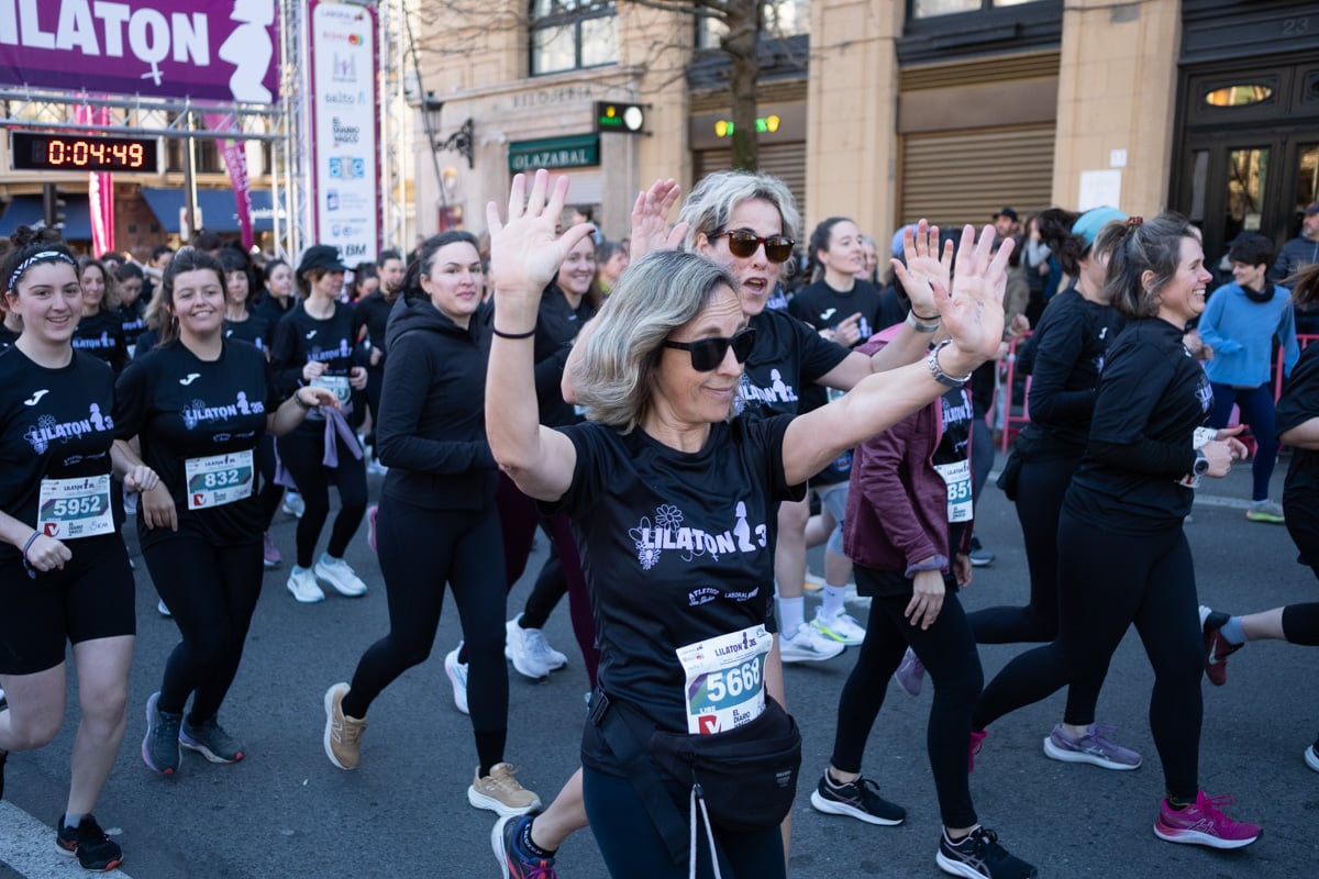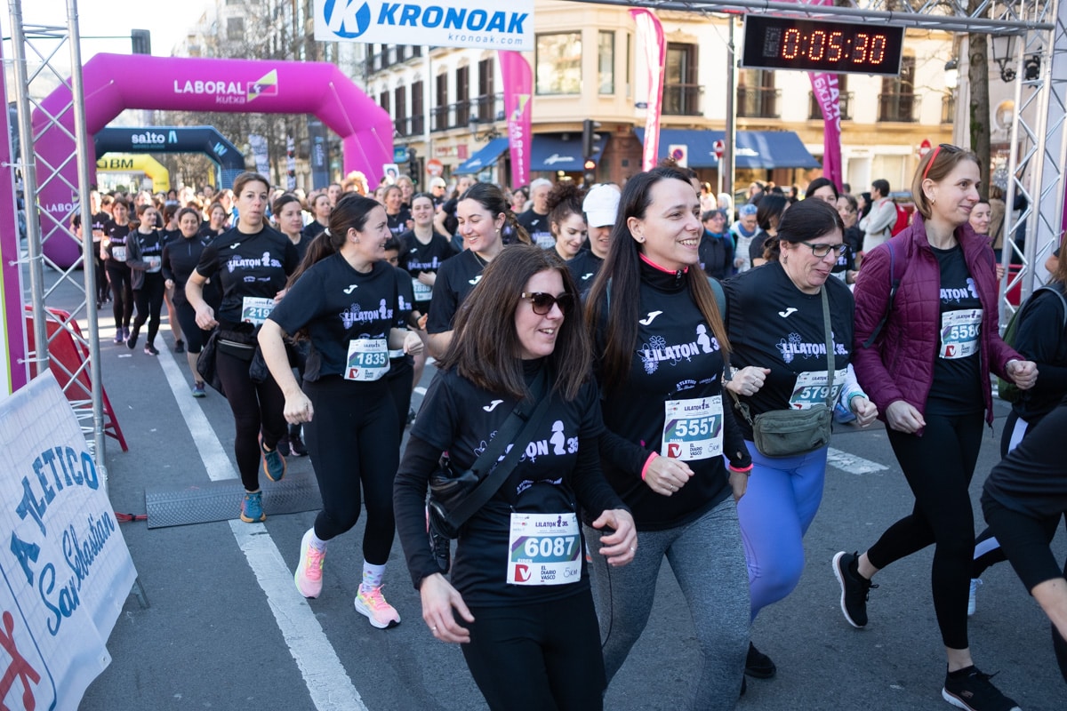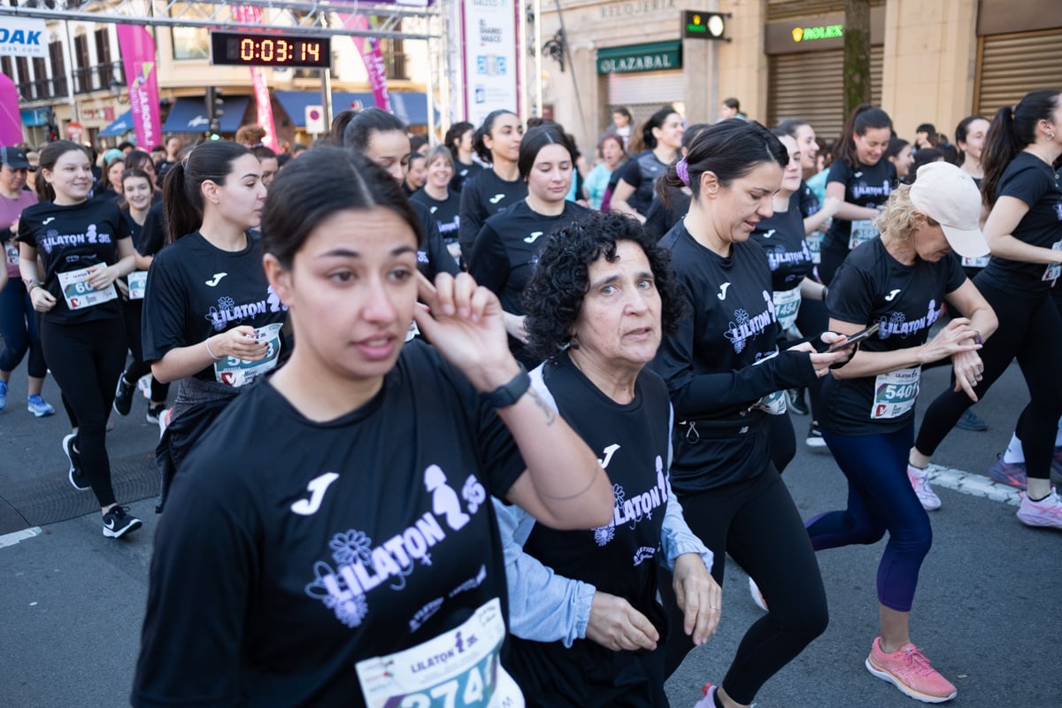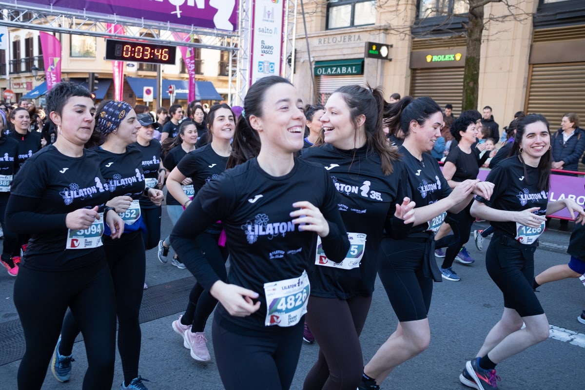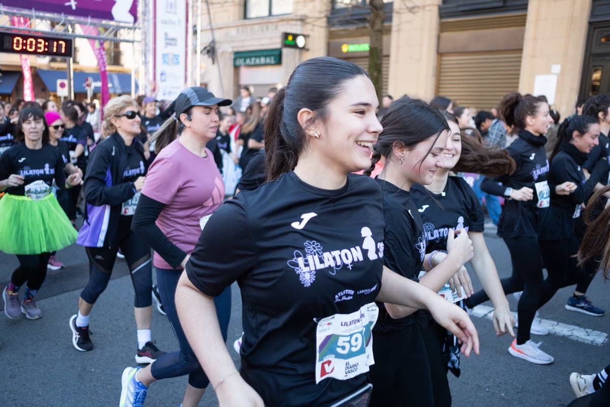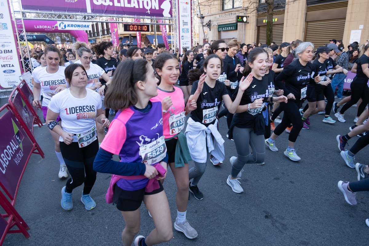 Ambientazo en una edición más, y van 35, de la Lilatón, la carrera femenina y feminista de 5 kilómetros del Club Deportivo Atlético de San Sebastian. Carrera solidaria, también, ya que un euro de cada inscripción será donado a la Asociación Contra el Cáncer de Gipuzkoa. La cita, en la que se habían inscrito 6.200 mujeres, ha comenzado con una sesión de zumba y terminará con el Lilapote.