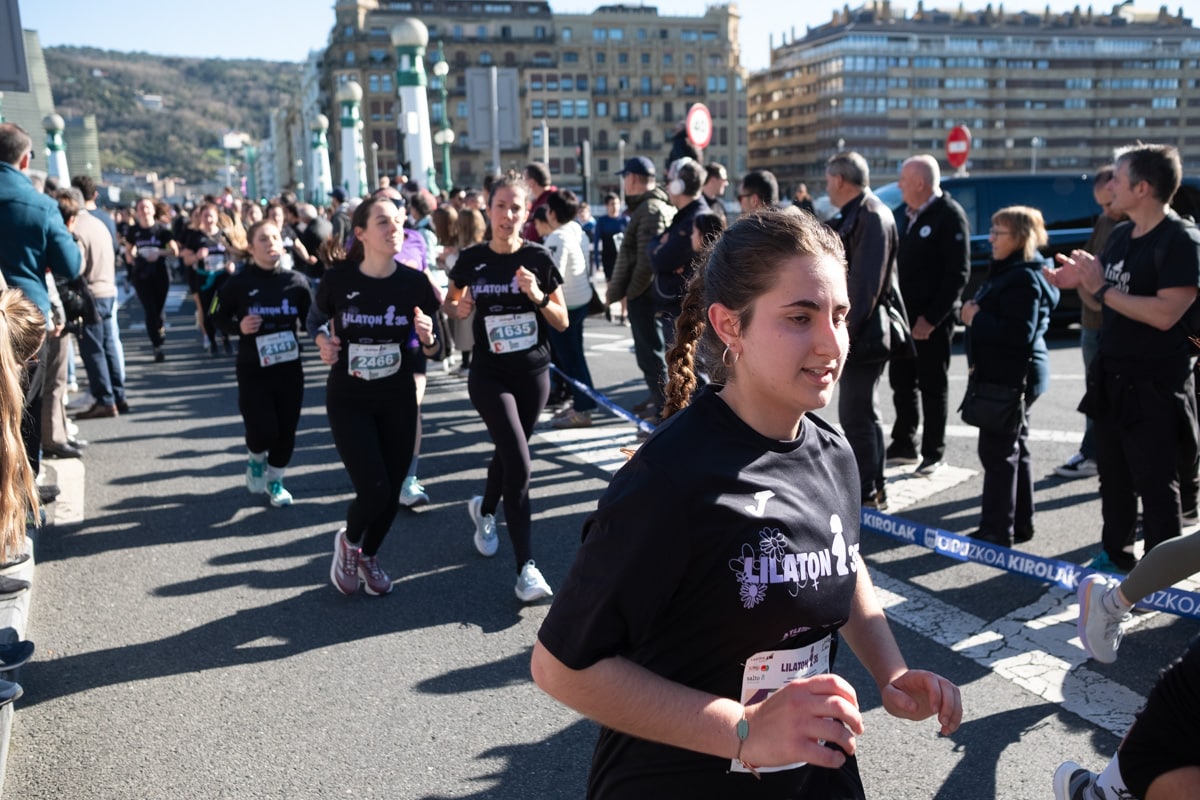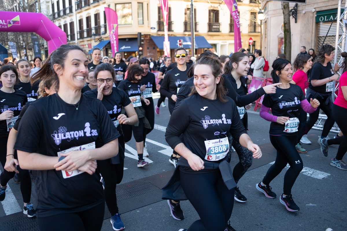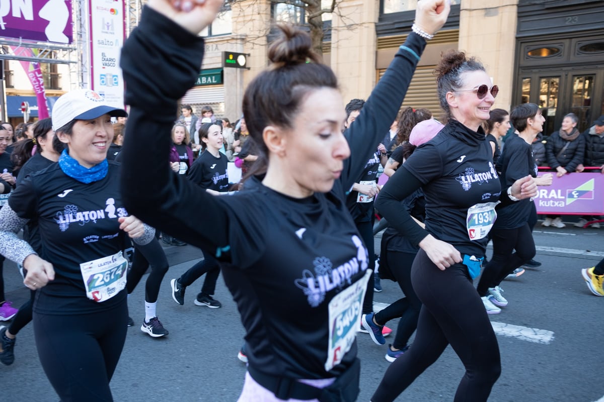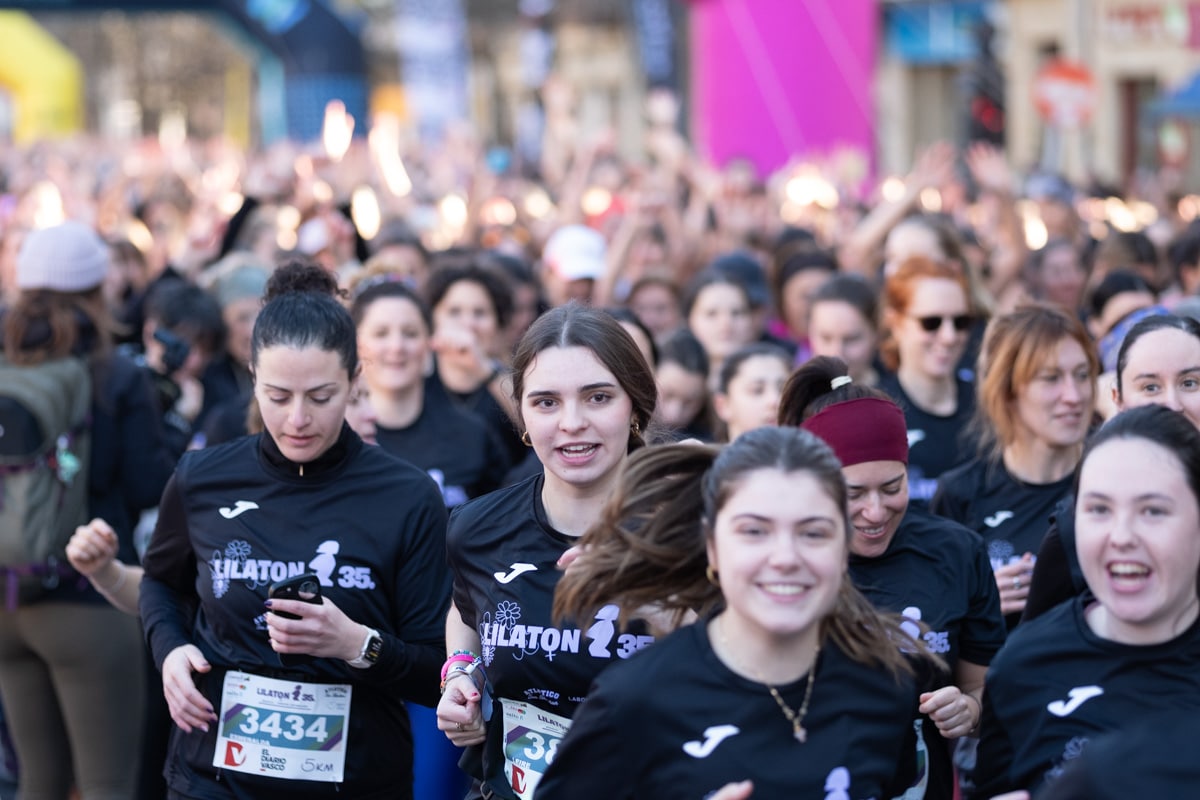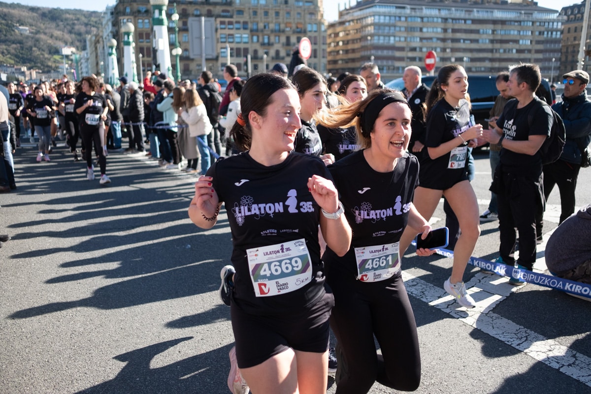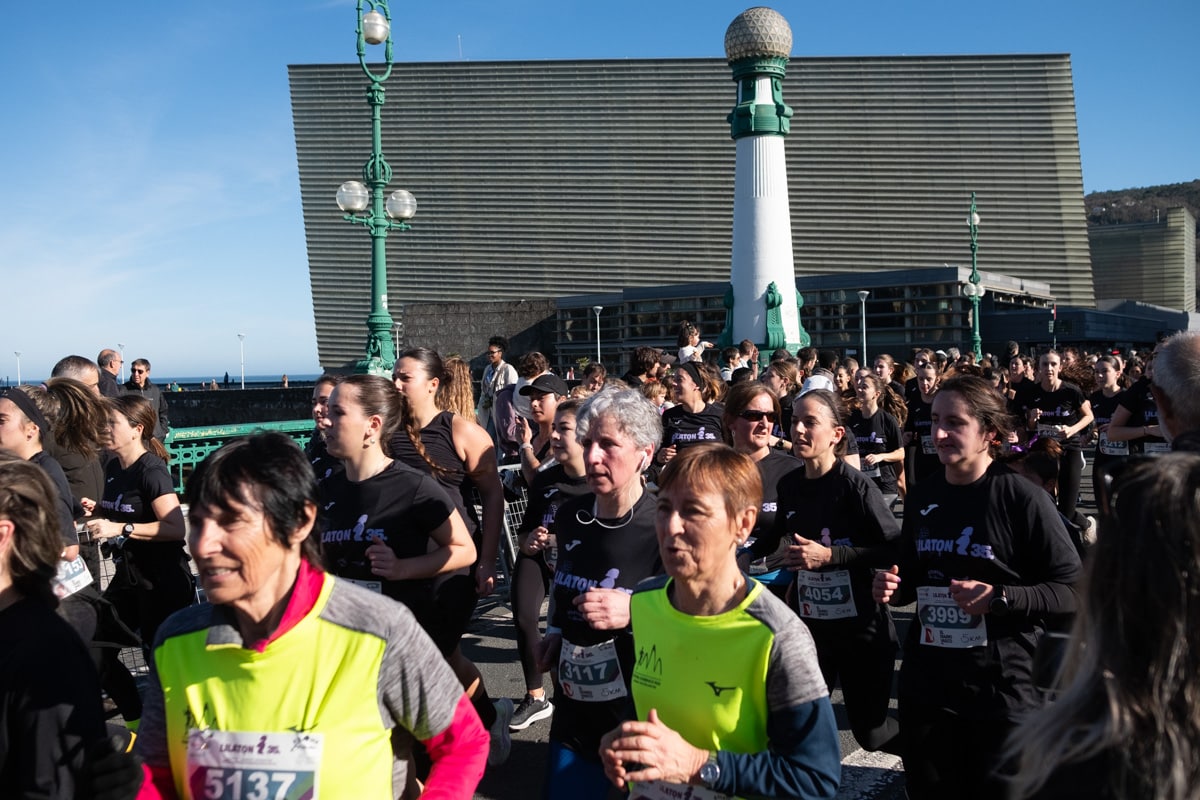 Ambientazo en una edición más, y van 35, de la Lilatón, la carrera femenina y feminista de 5 kilómetros del Club Deportivo Atlético de San Sebastian. Carrera solidaria, también, ya que un euro de cada inscripción será donado a la Asociación Contra el Cáncer de Gipuzkoa. La cita, en la que se habían inscrito 6.200 mujeres, ha comenzado con una sesión de zumba y terminará con el Lilapote.