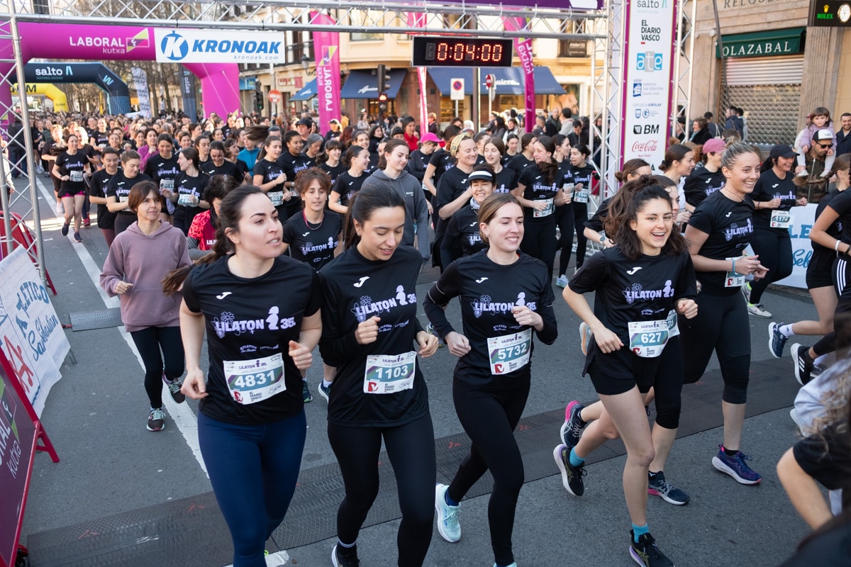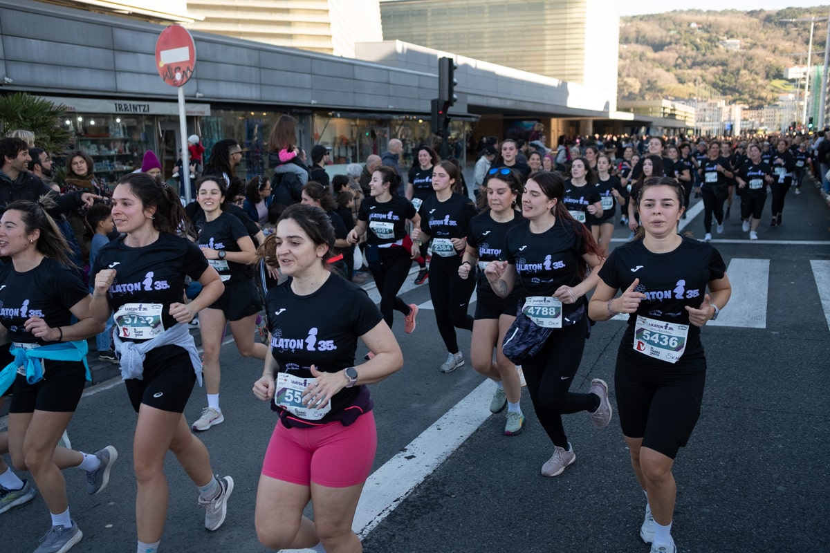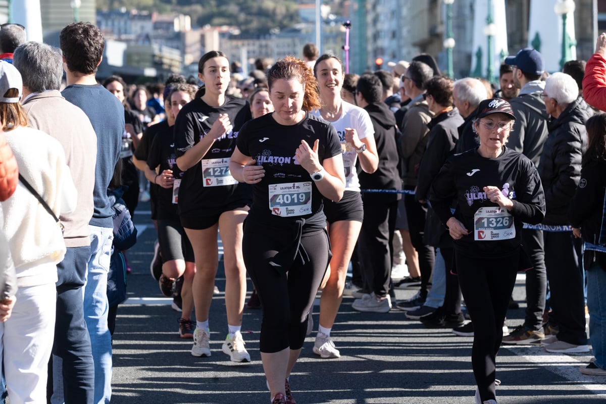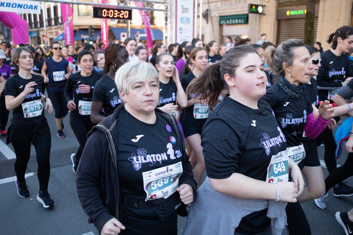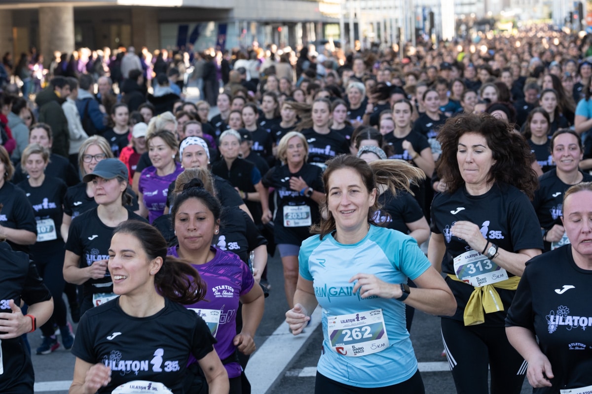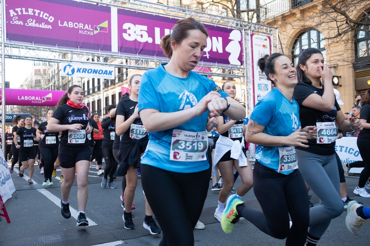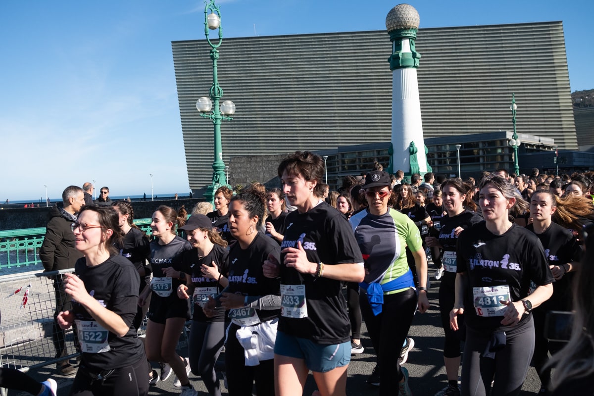 Ambientazo en una edición más, y van 35, de la Lilatón, la carrera femenina y feminista de 5 kilómetros del Club Deportivo Atlético de San Sebastian. Carrera solidaria, también, ya que un euro de cada inscripción será donado a la Asociación Contra el Cáncer de Gipuzkoa. La cita, en la que se habían inscrito 6.200 mujeres, ha comenzado con una sesión de zumba y terminará con el Lilapote.