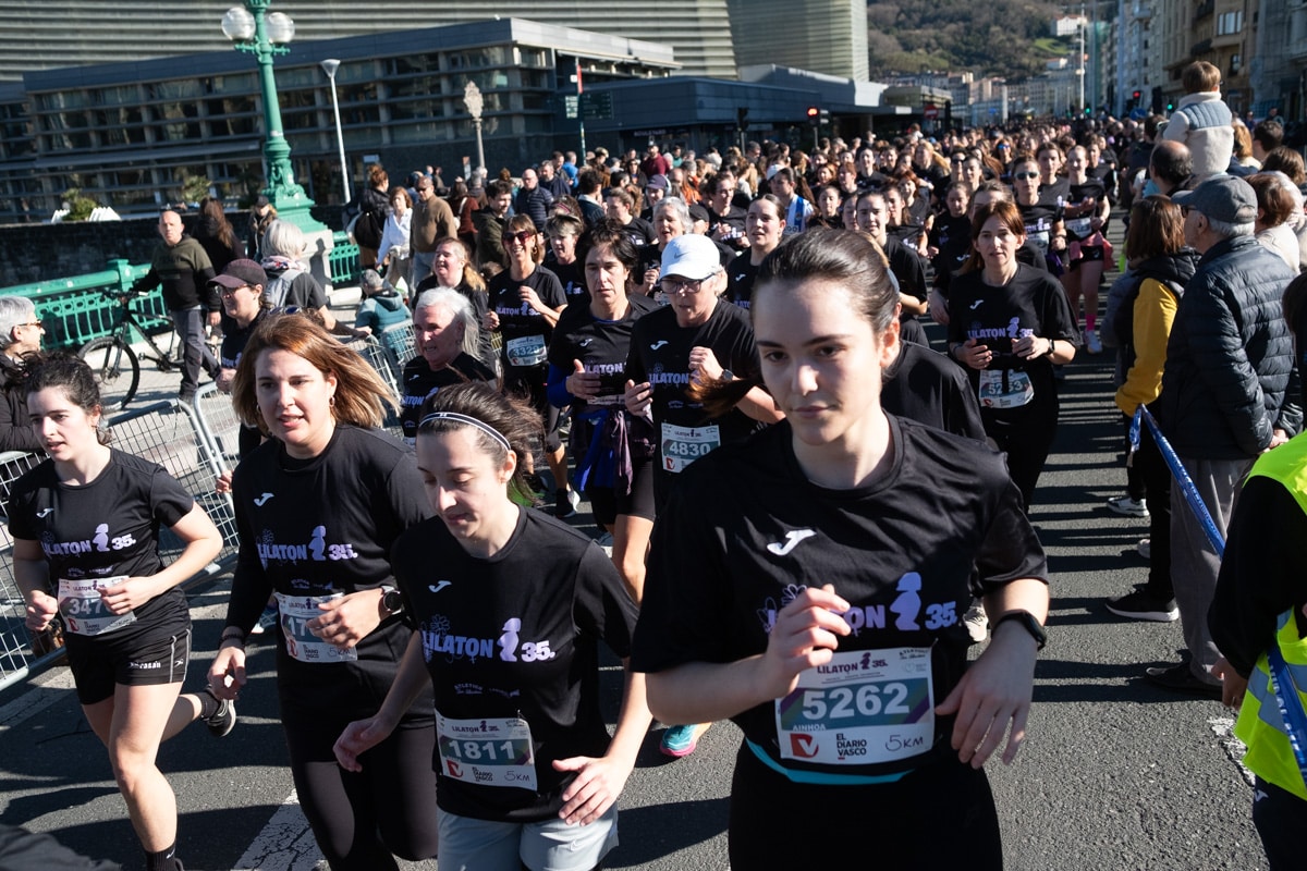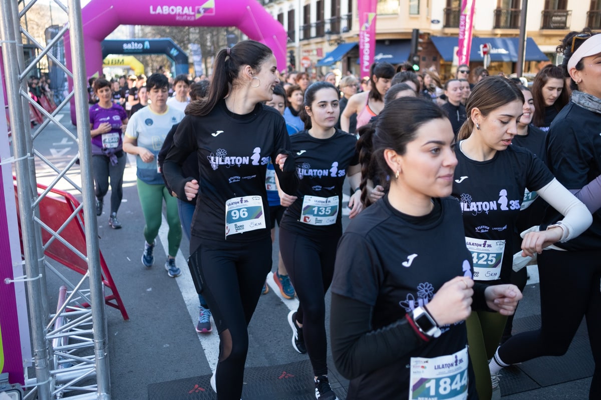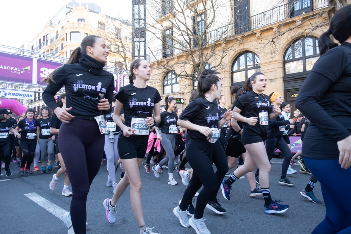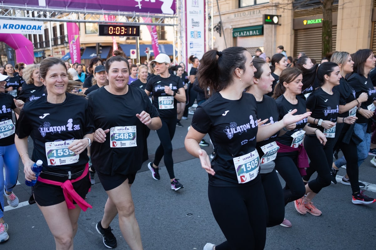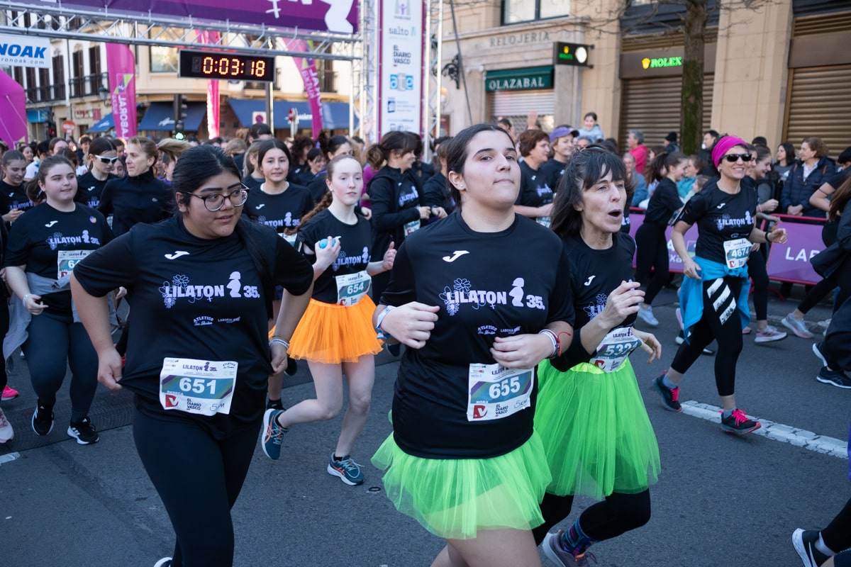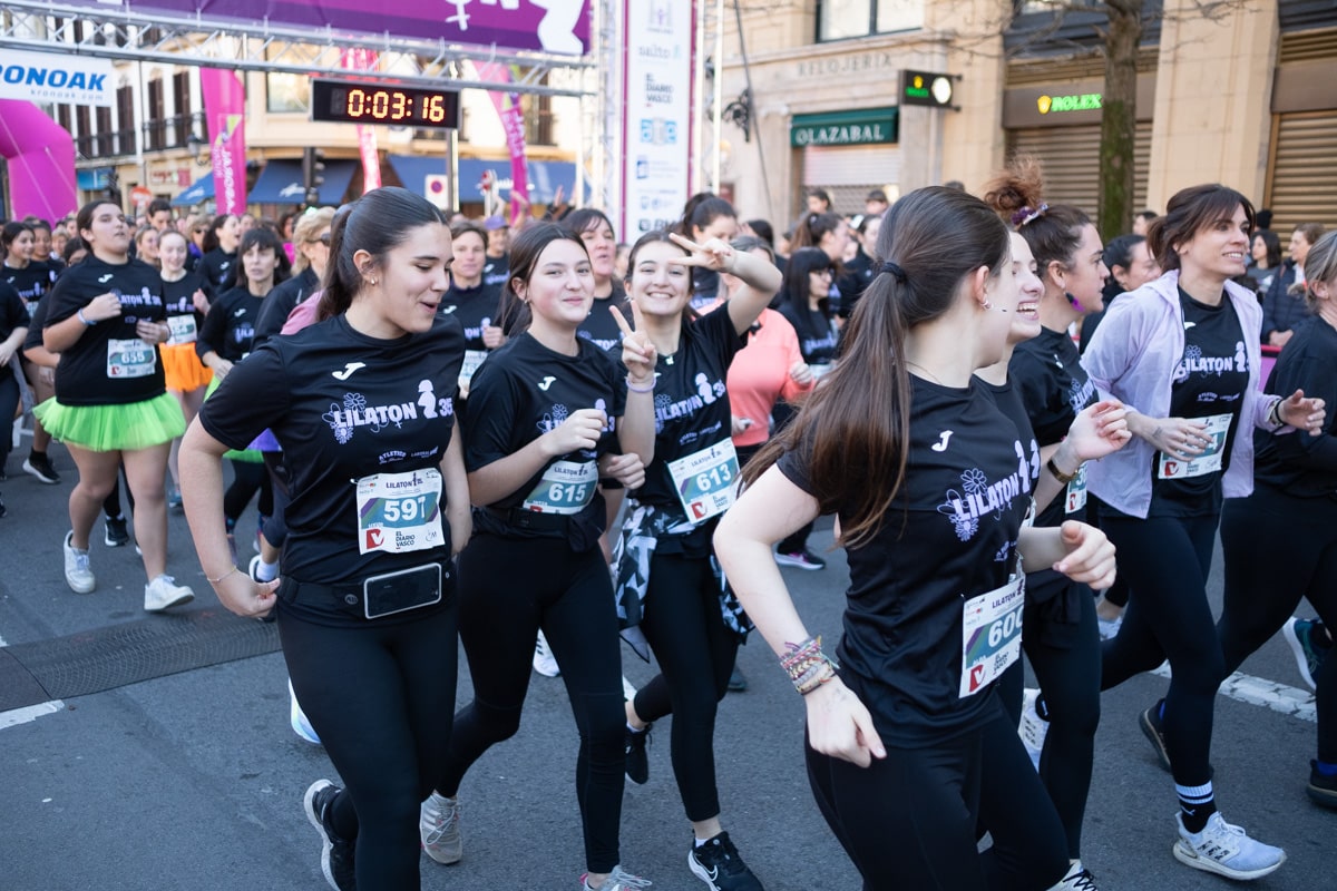 Ambientazo en una edición más, y van 35, de la Lilatón, la carrera femenina y feminista de 5 kilómetros del Club Deportivo Atlético de San Sebastian. Carrera solidaria, también, ya que un euro de cada inscripción será donado a la Asociación Contra el Cáncer de Gipuzkoa. La cita, en la que se habían inscrito 6.200 mujeres, ha comenzado con una sesión de zumba y terminará con el Lilapote.